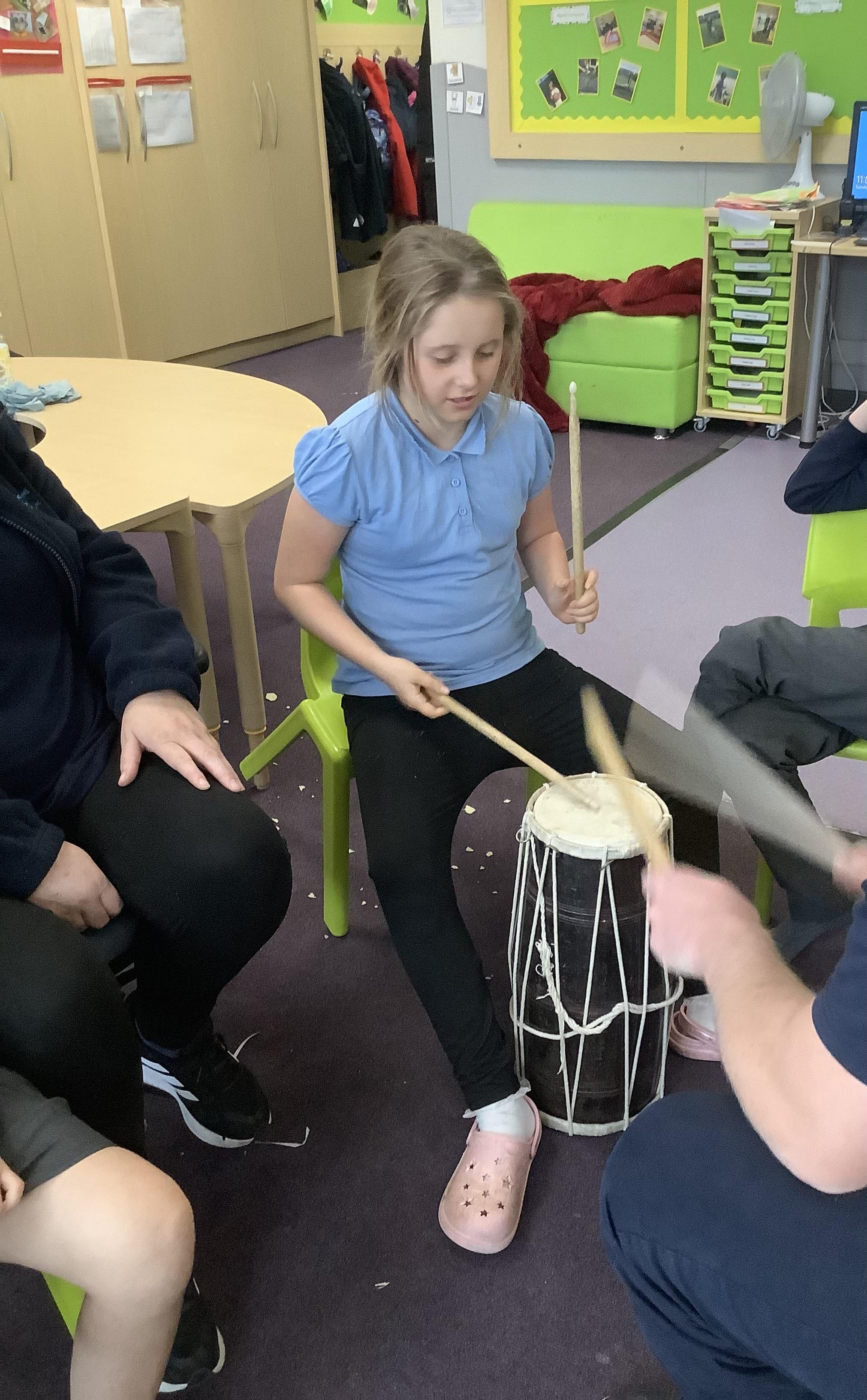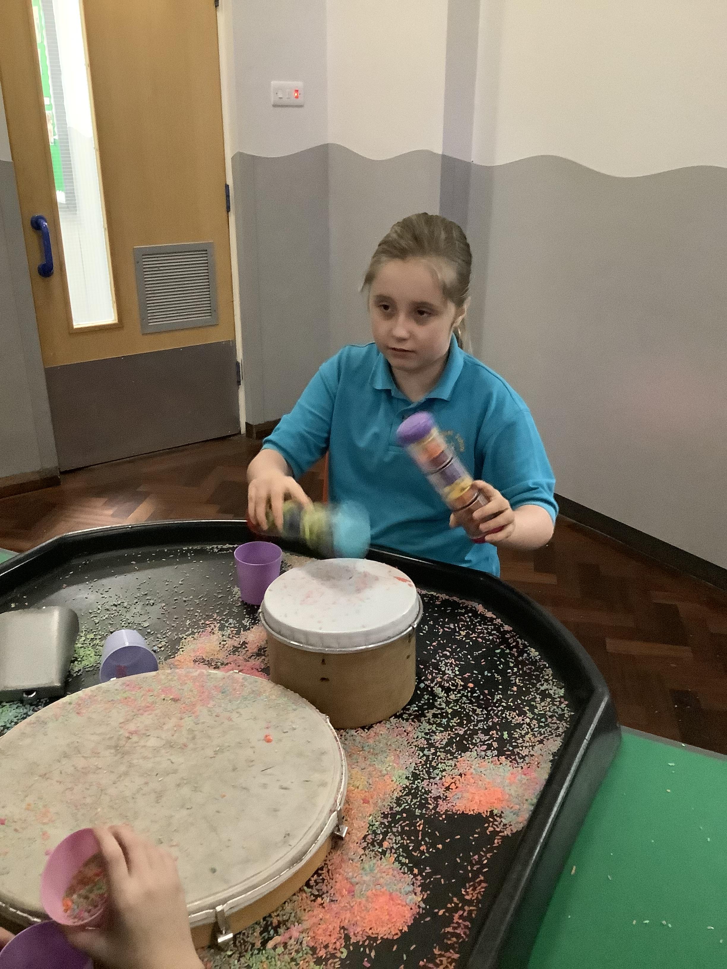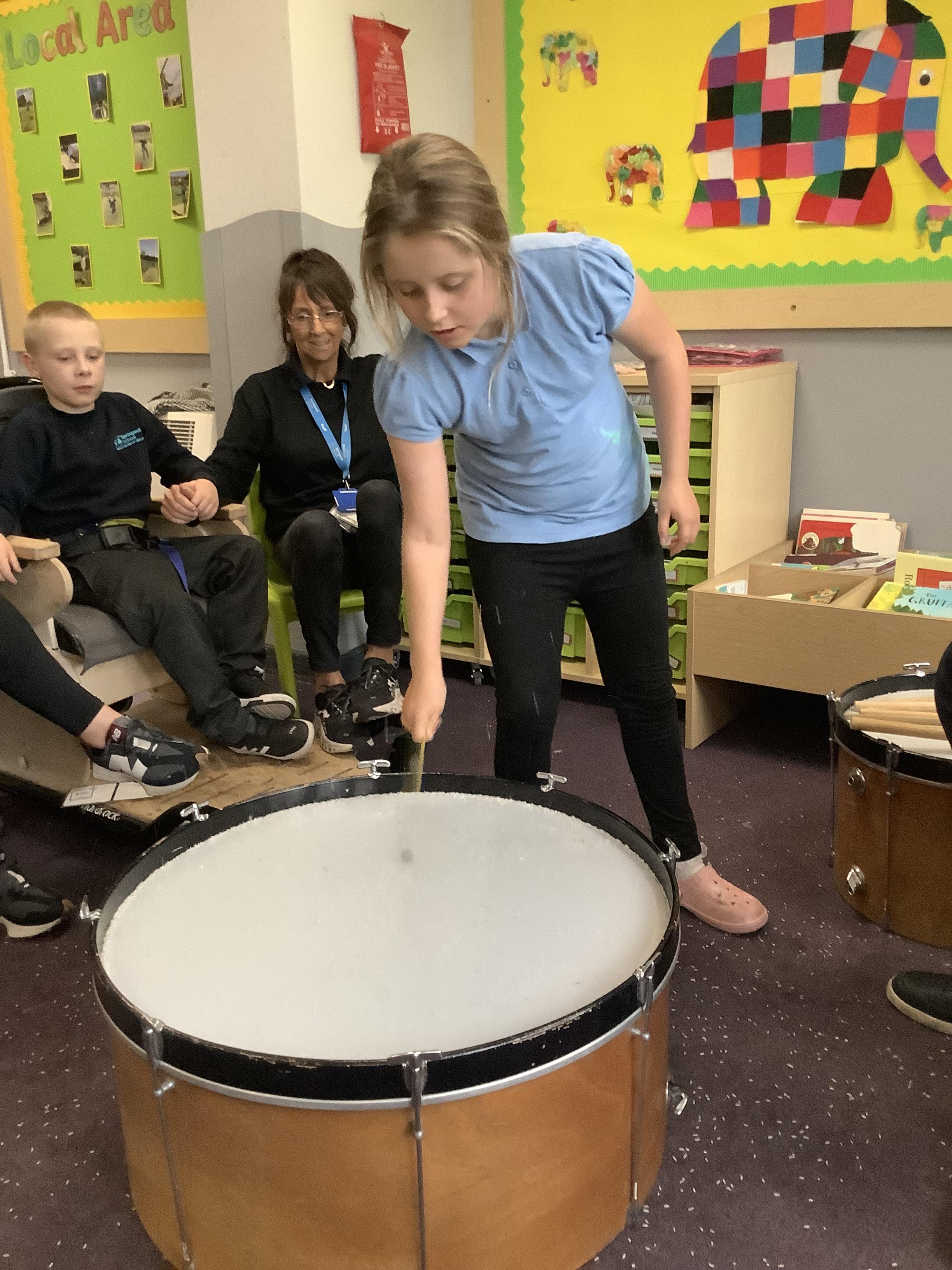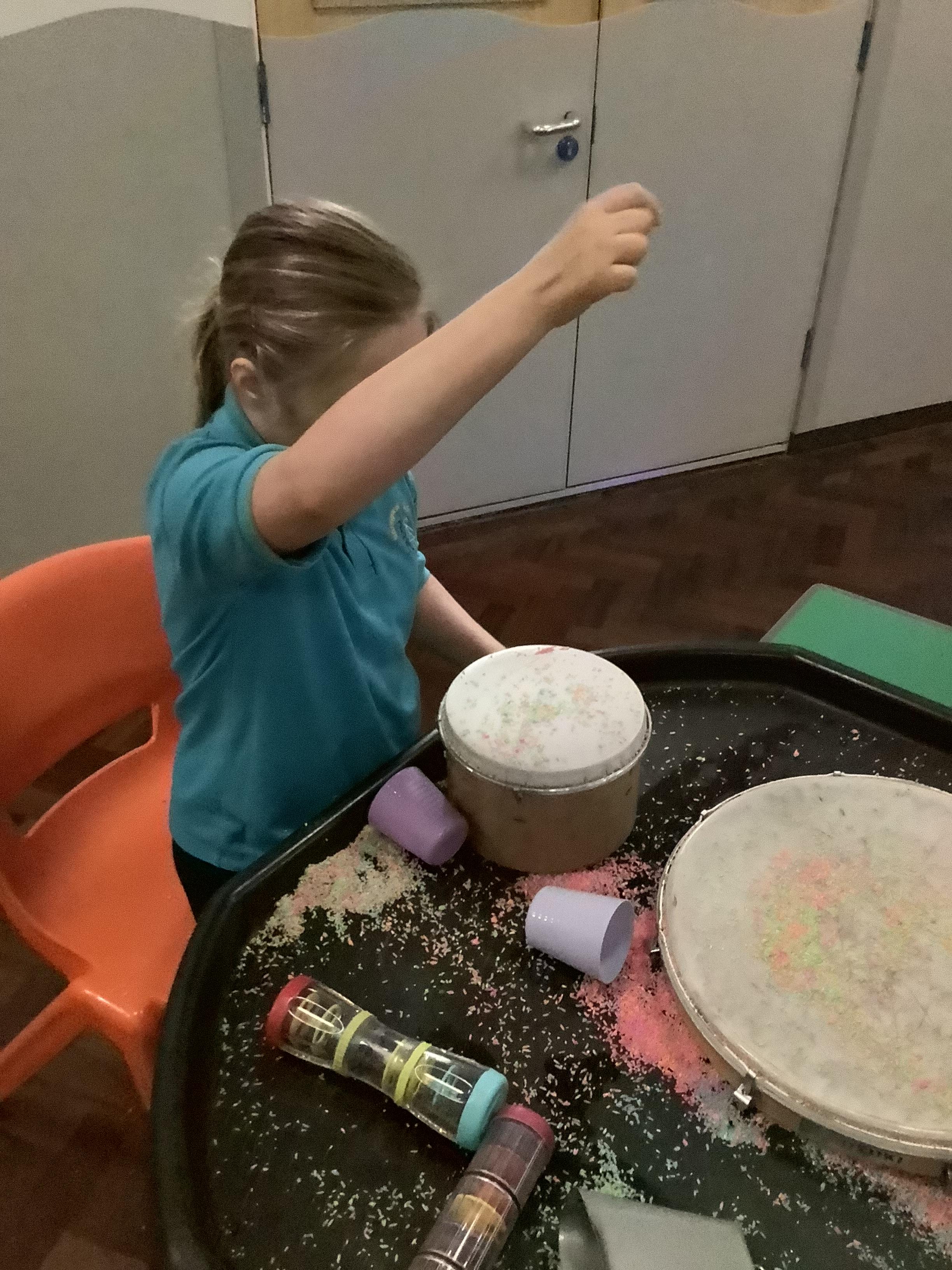 Pangolin class enjoyed music today, exploring different types of drums. Learning the difference between ‘loud’ and ‘quiet’.