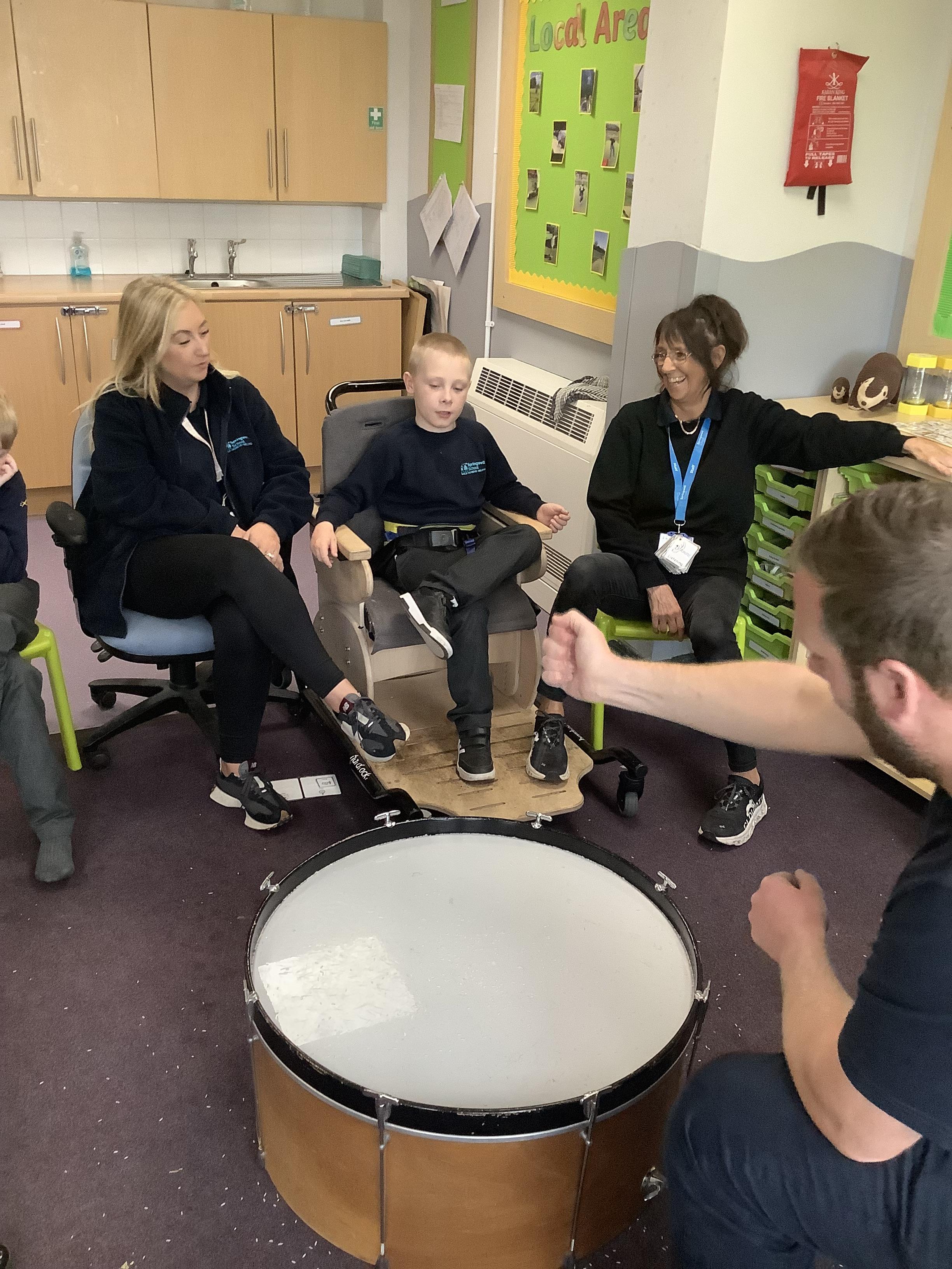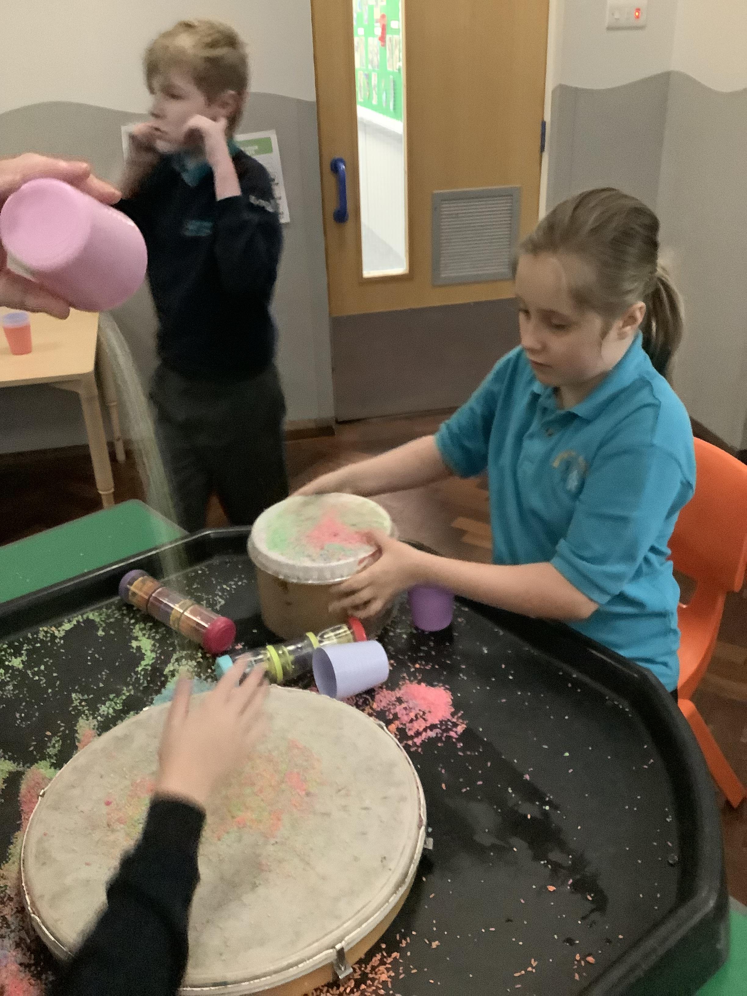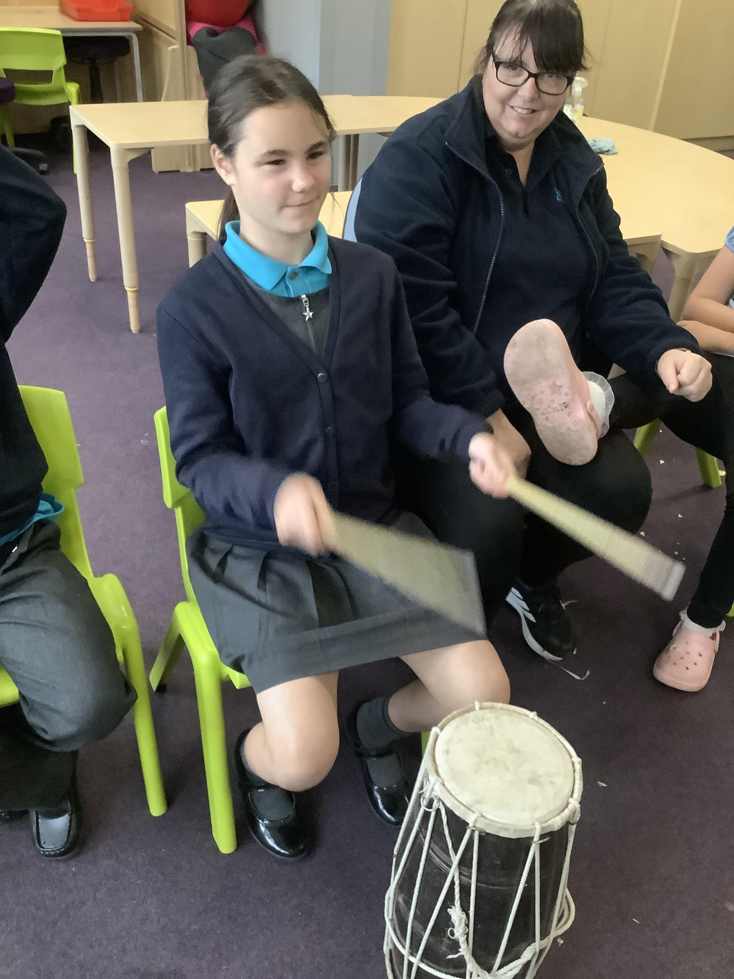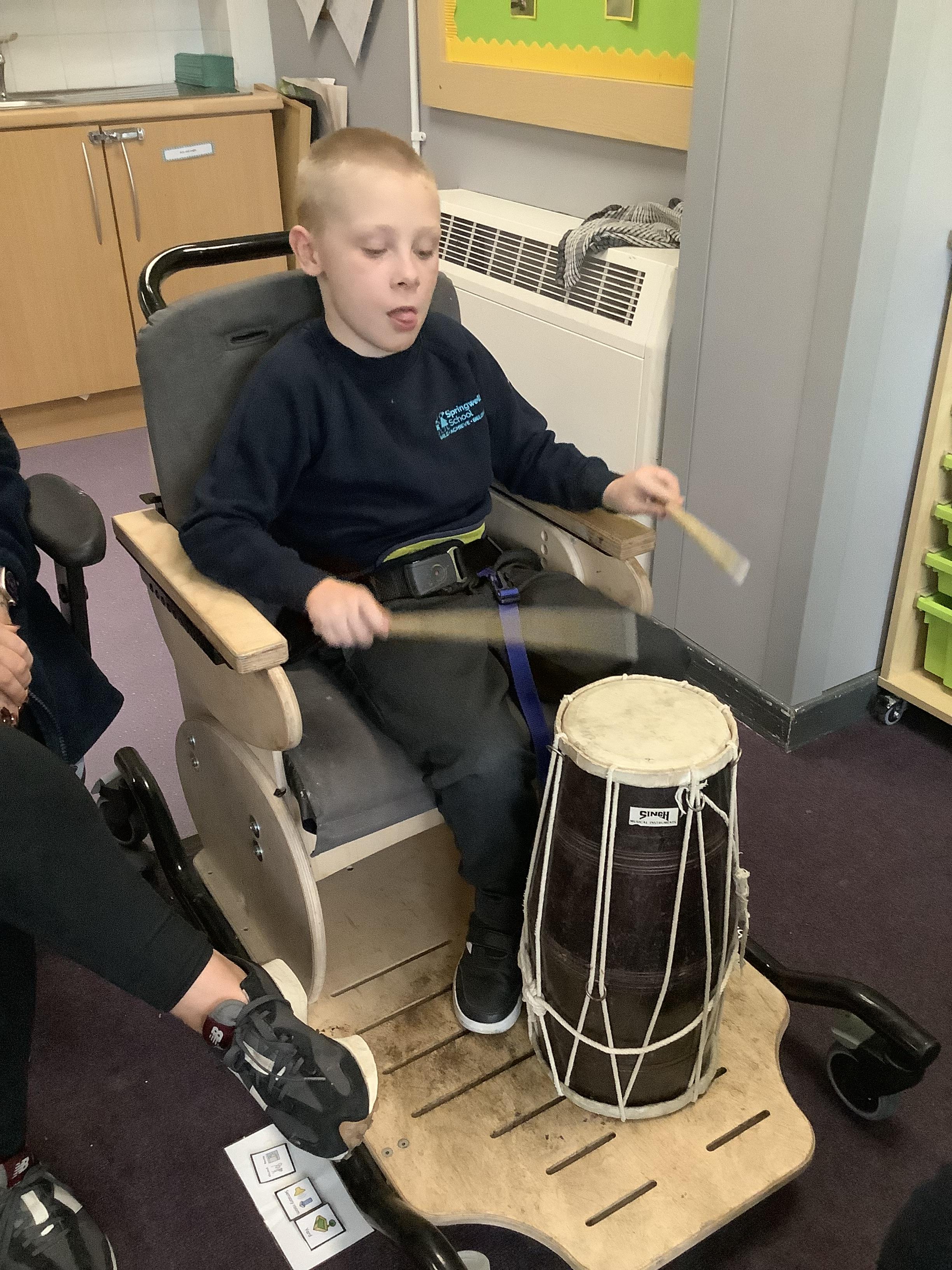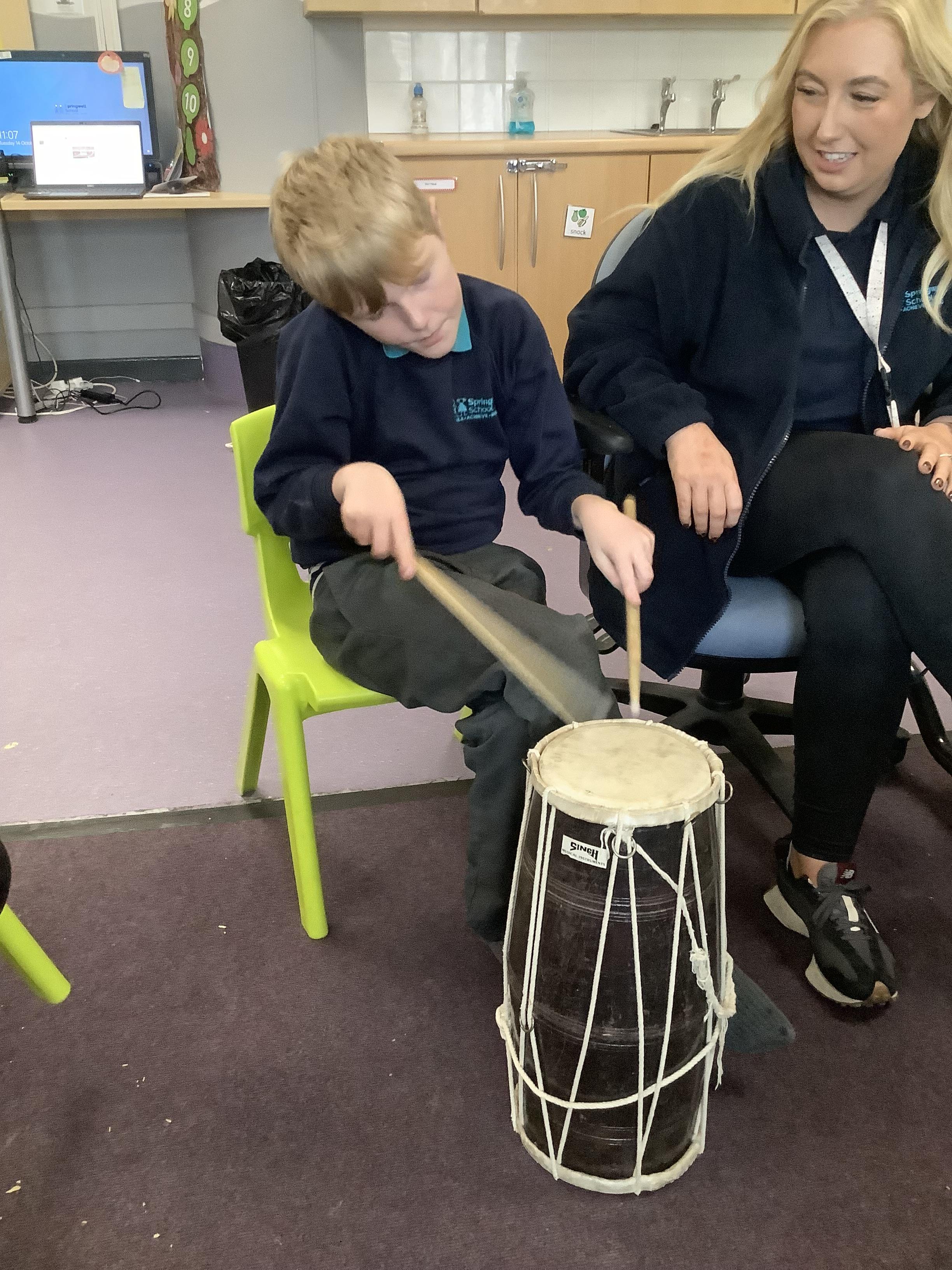 Pangolin class enjoyed music today, exploring different types of drums. Learning the difference between ‘loud’ and ‘quiet’.