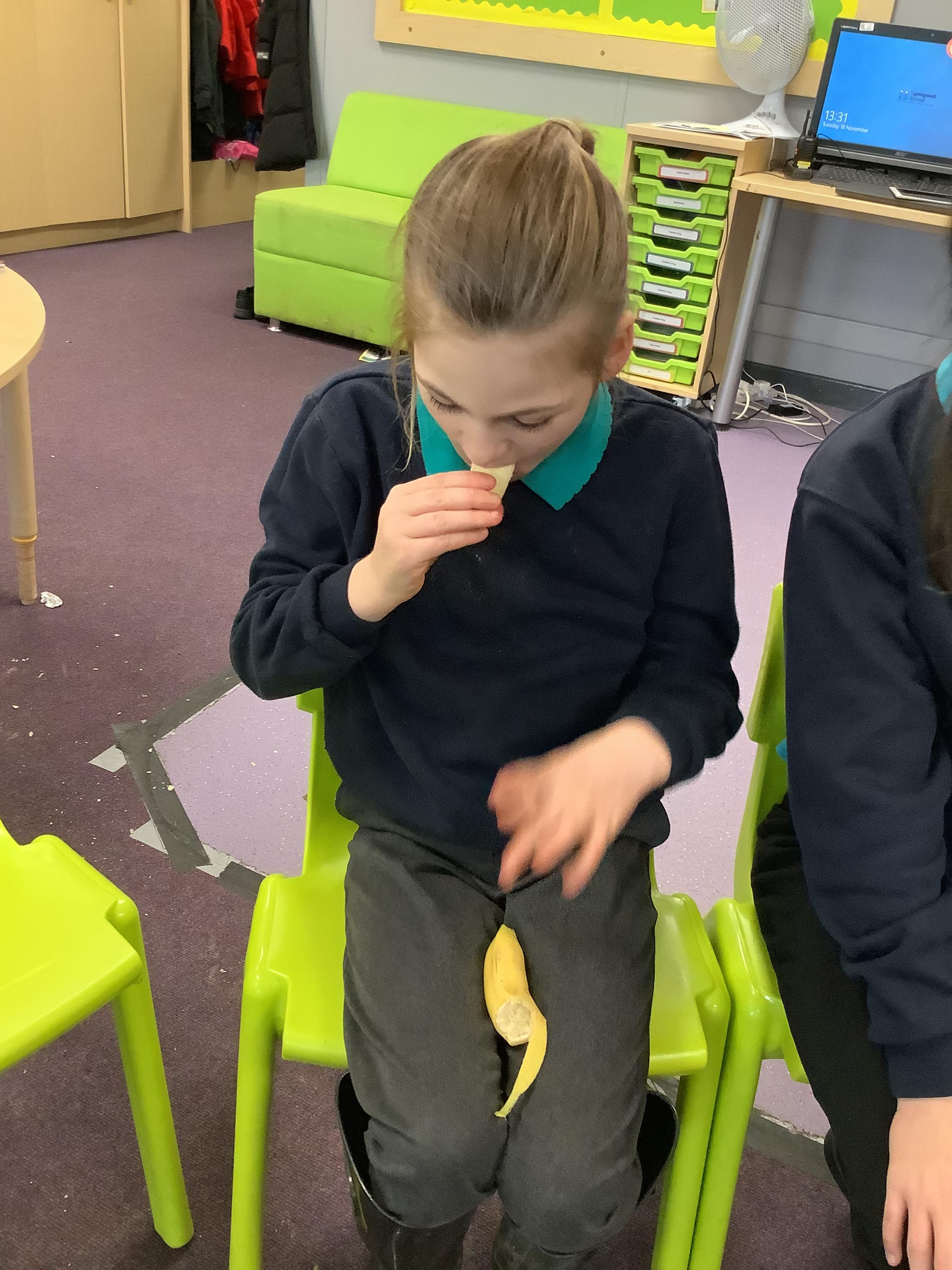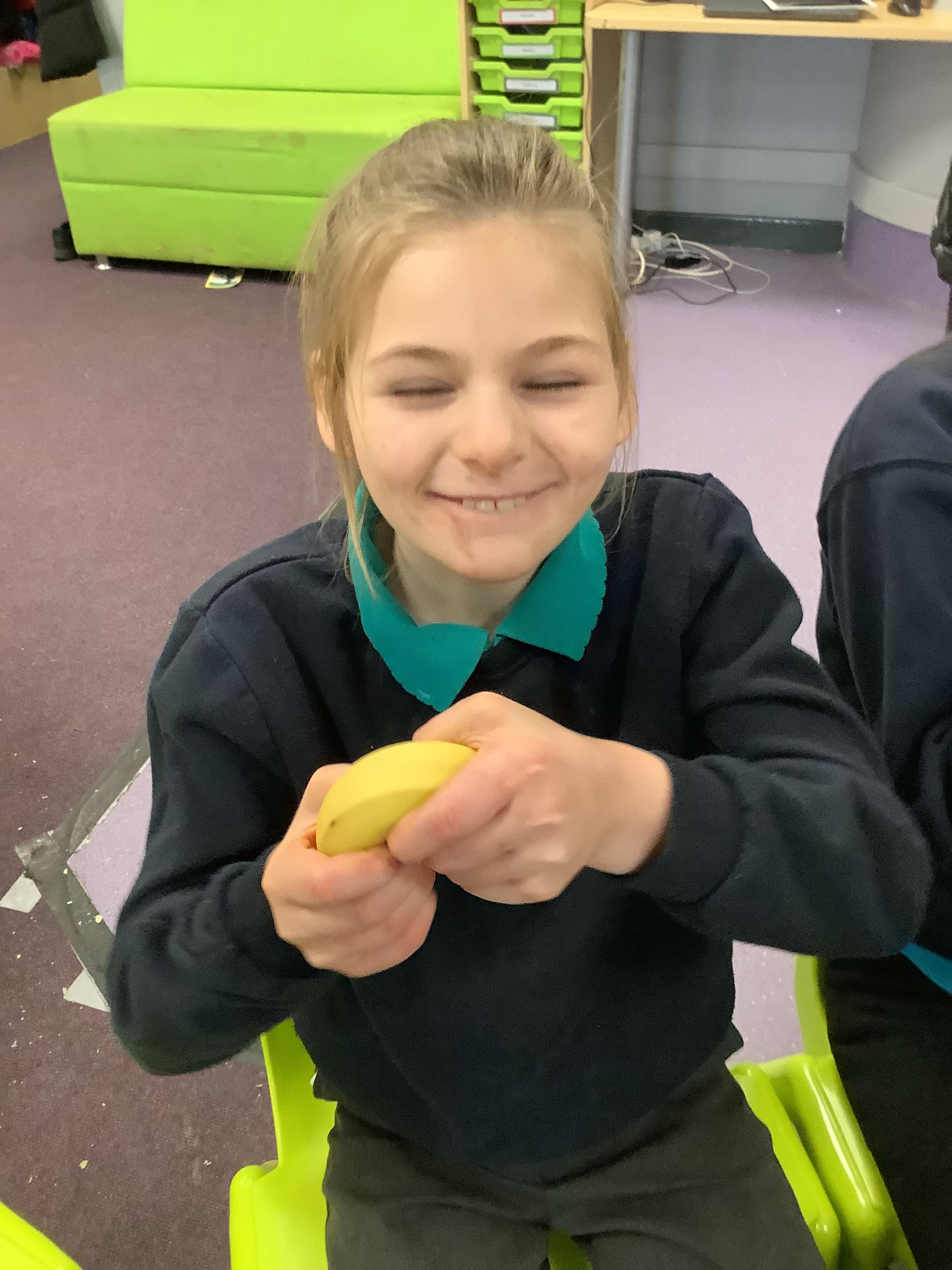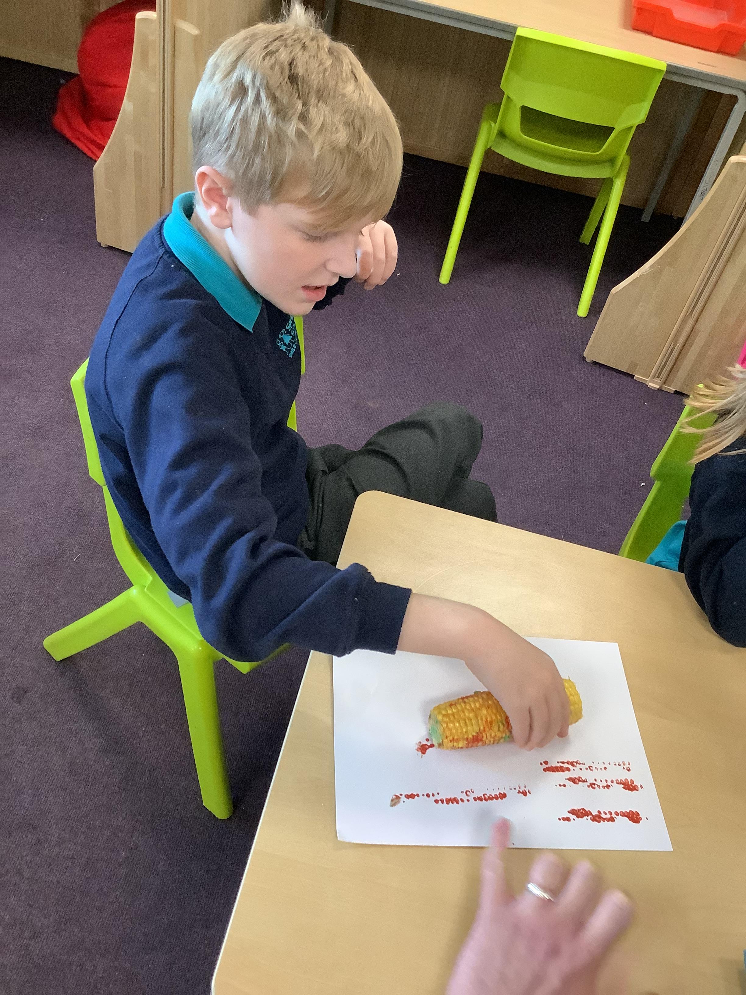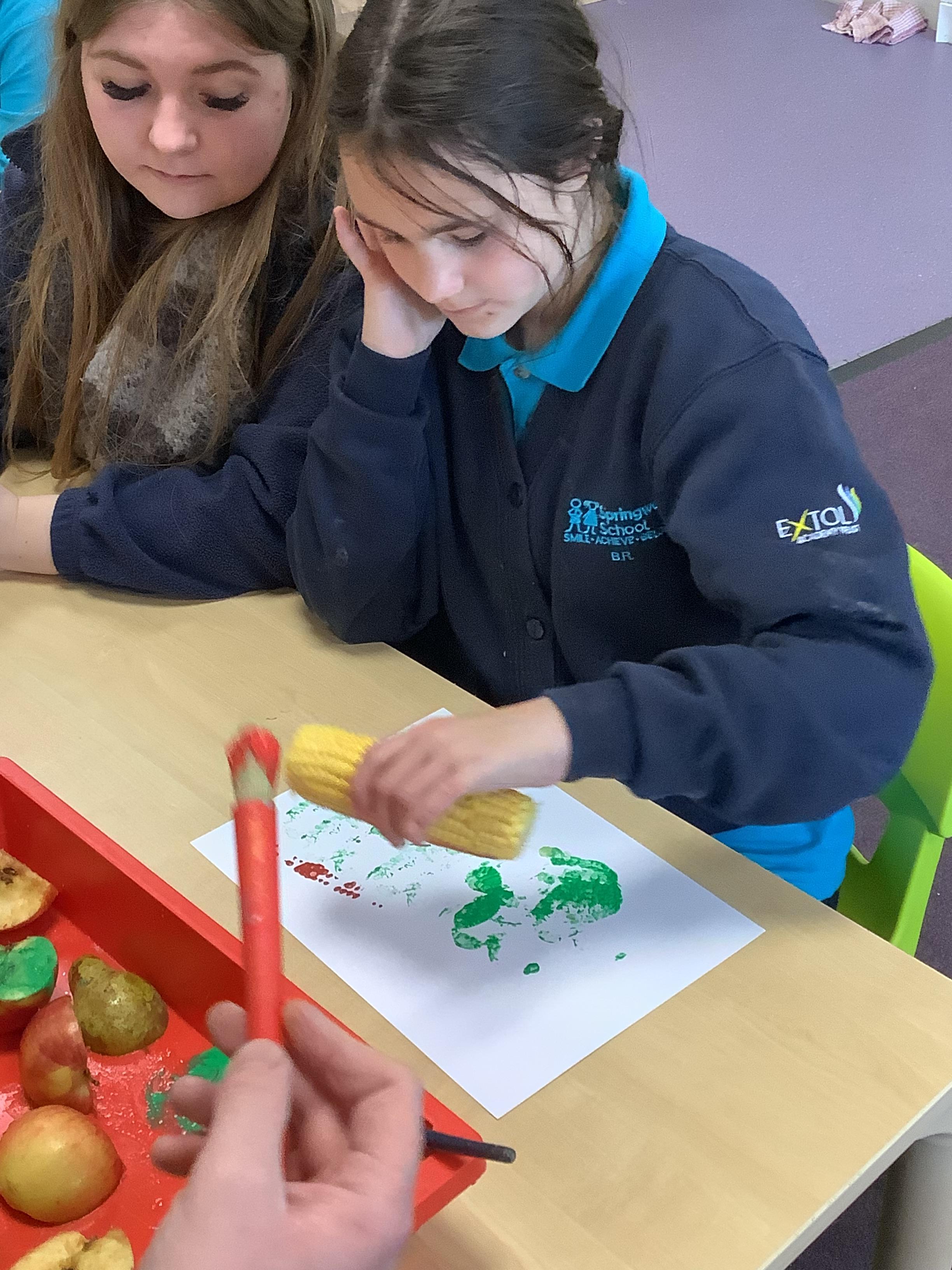 Pangolin class enjoyed a trip to Aldi to buy some fruits and vegetables, when we arrived back at school the children sat together and explored the foods by smelling, touching and tasting each one. Following this each child chose a paint colour and piece of fruit to print with. All the children enjoyed this activity.