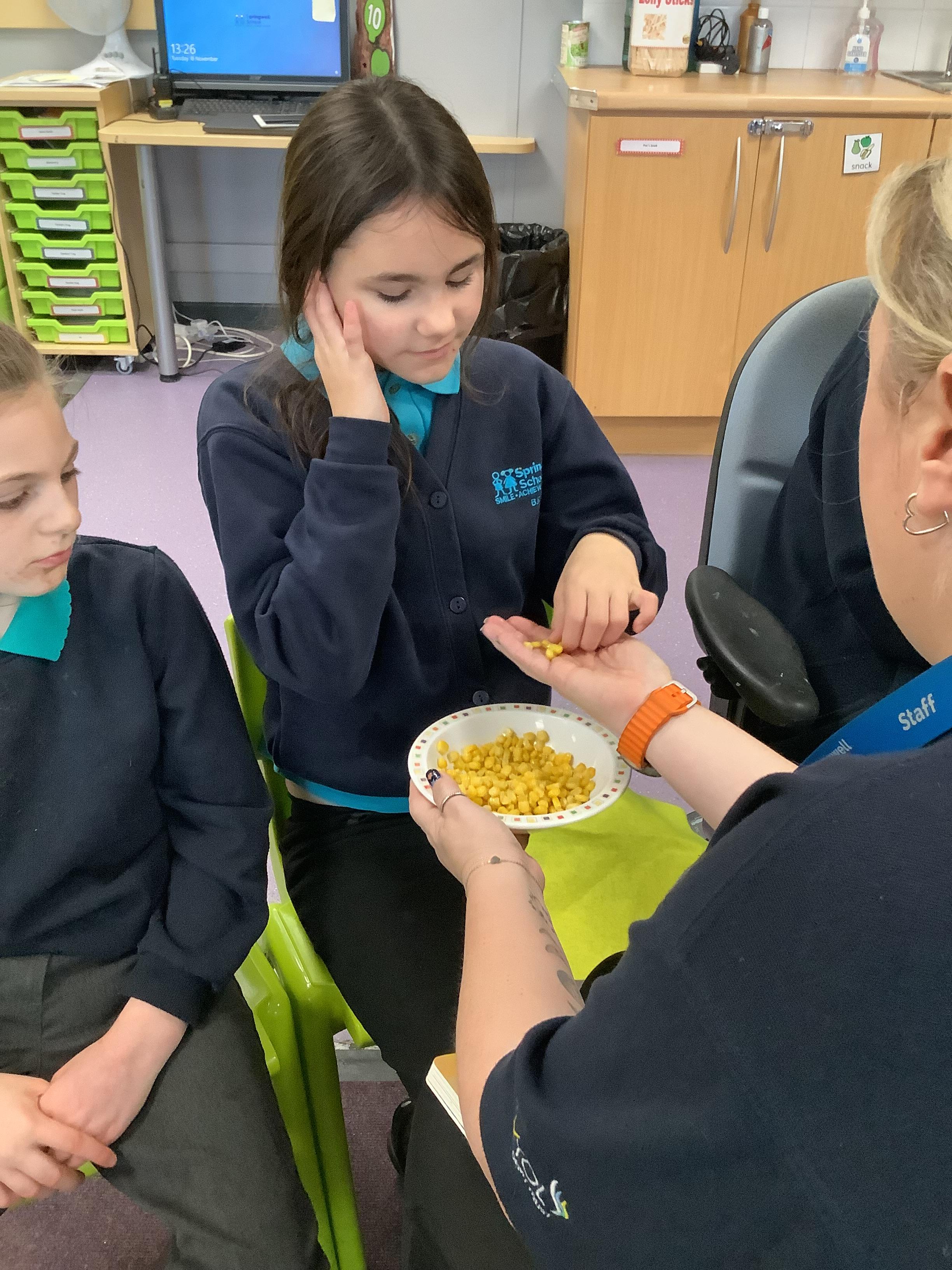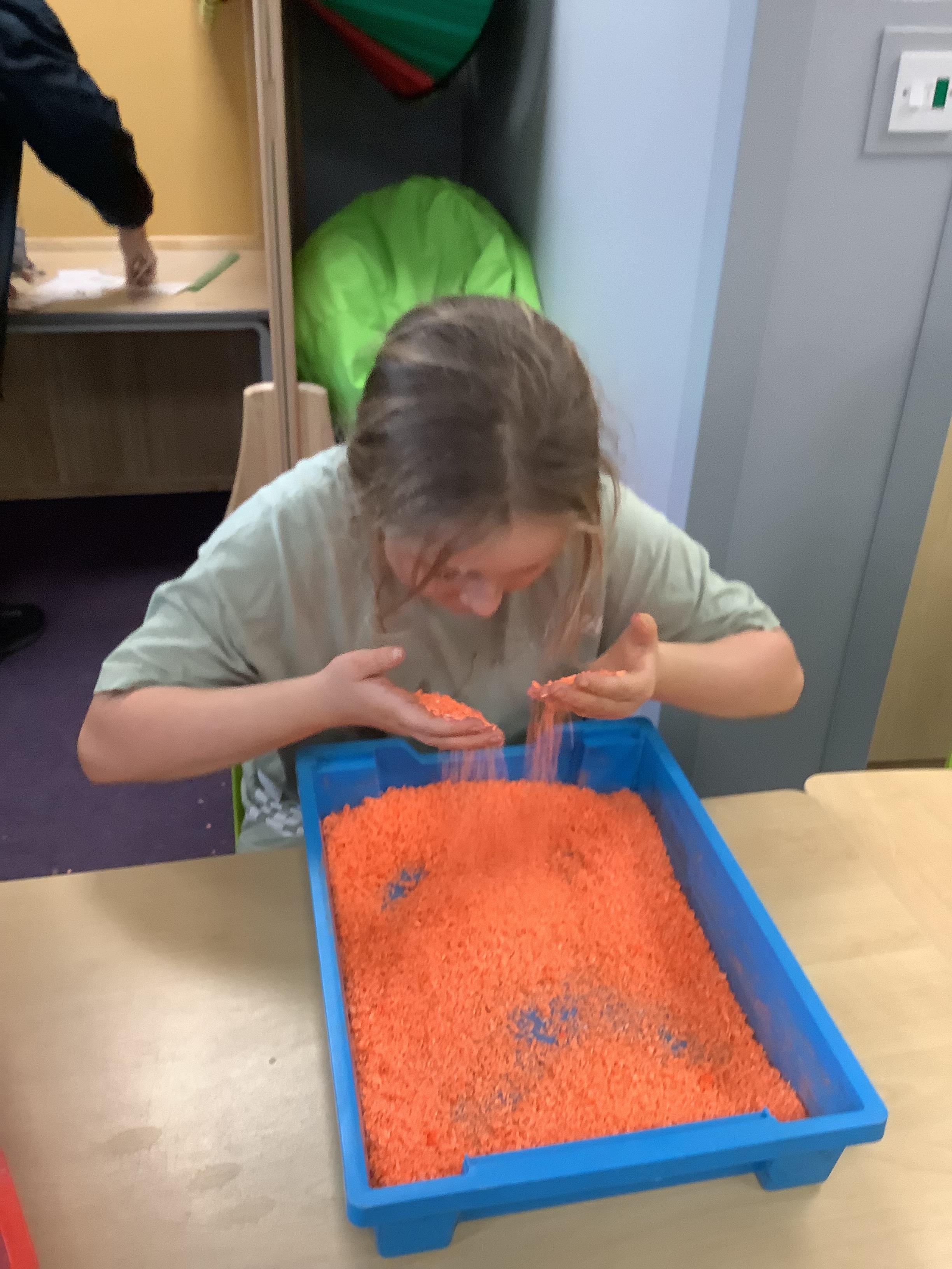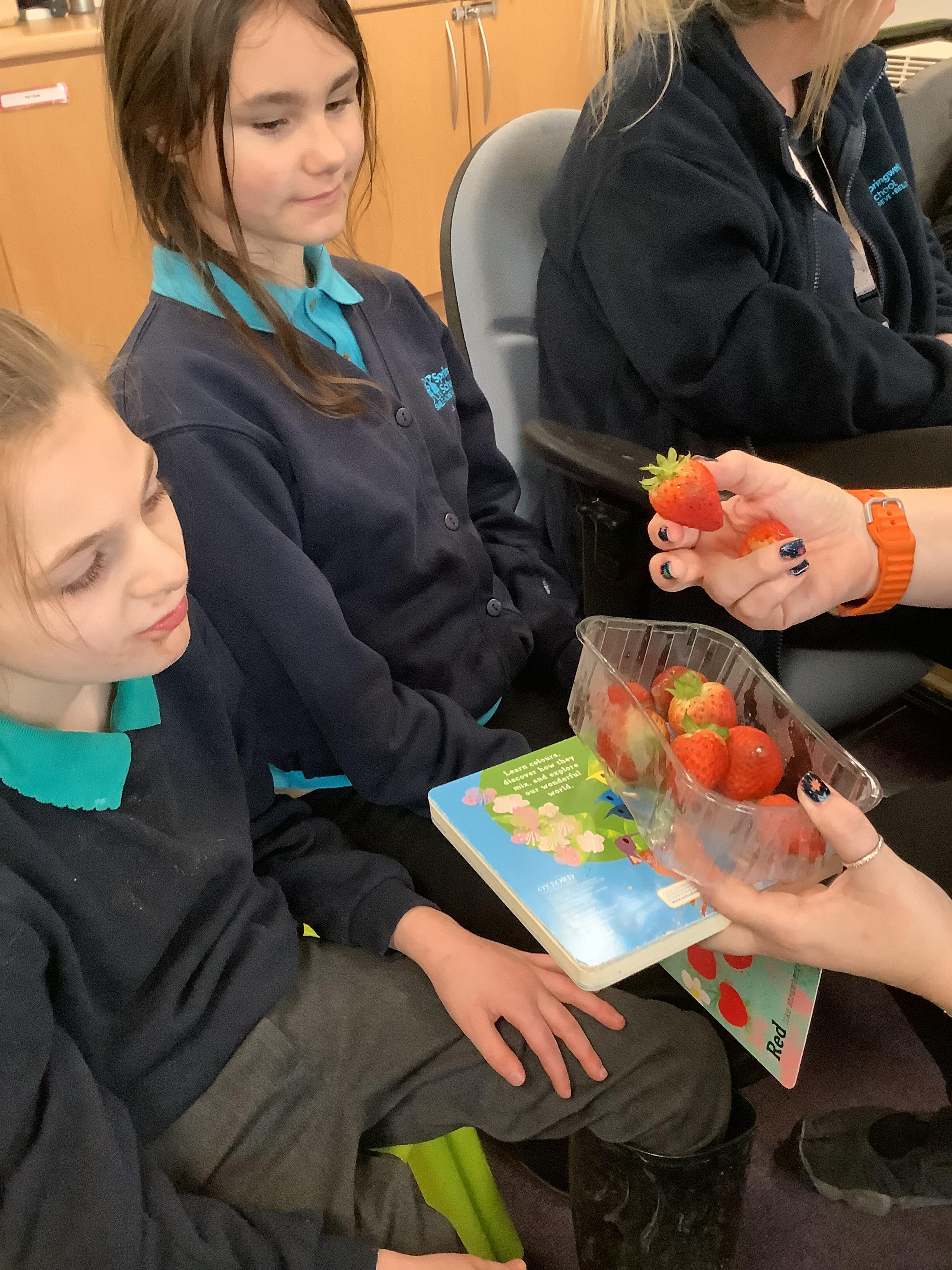 Today Pangolin class enjoyed exploring our sensory story “The Wonderful World of Colours” We explored different coloured foods, materials and different coloured rice. Pangolin class enjoyed our story and trying new foods.
