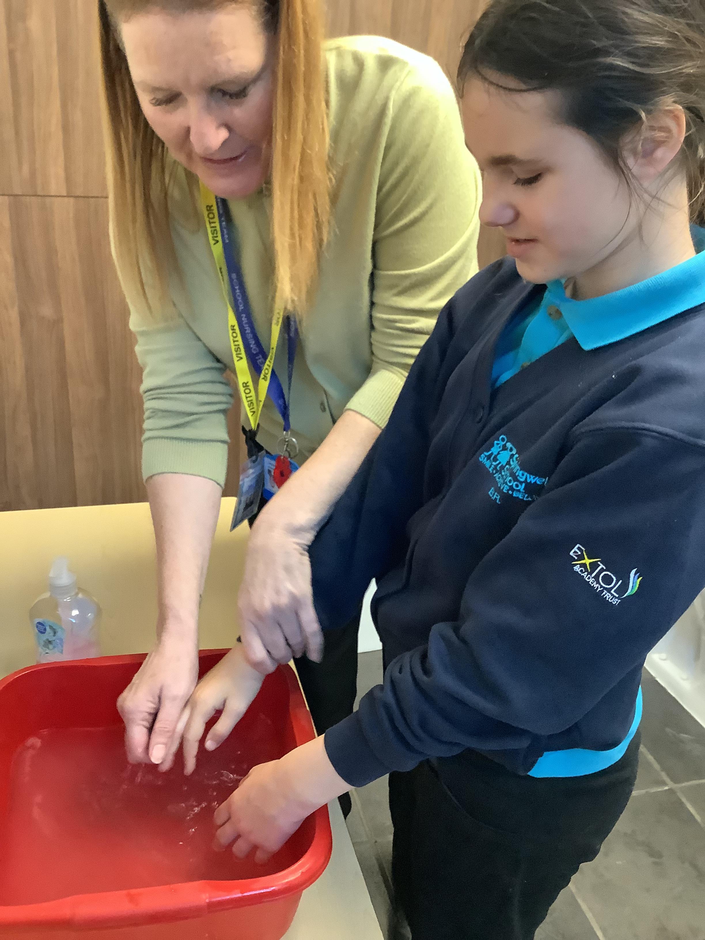 Pangolin class participated in a ‘Hand hygiene’ session today. They enjoyed washing their hands then checking for germs under the lamp.