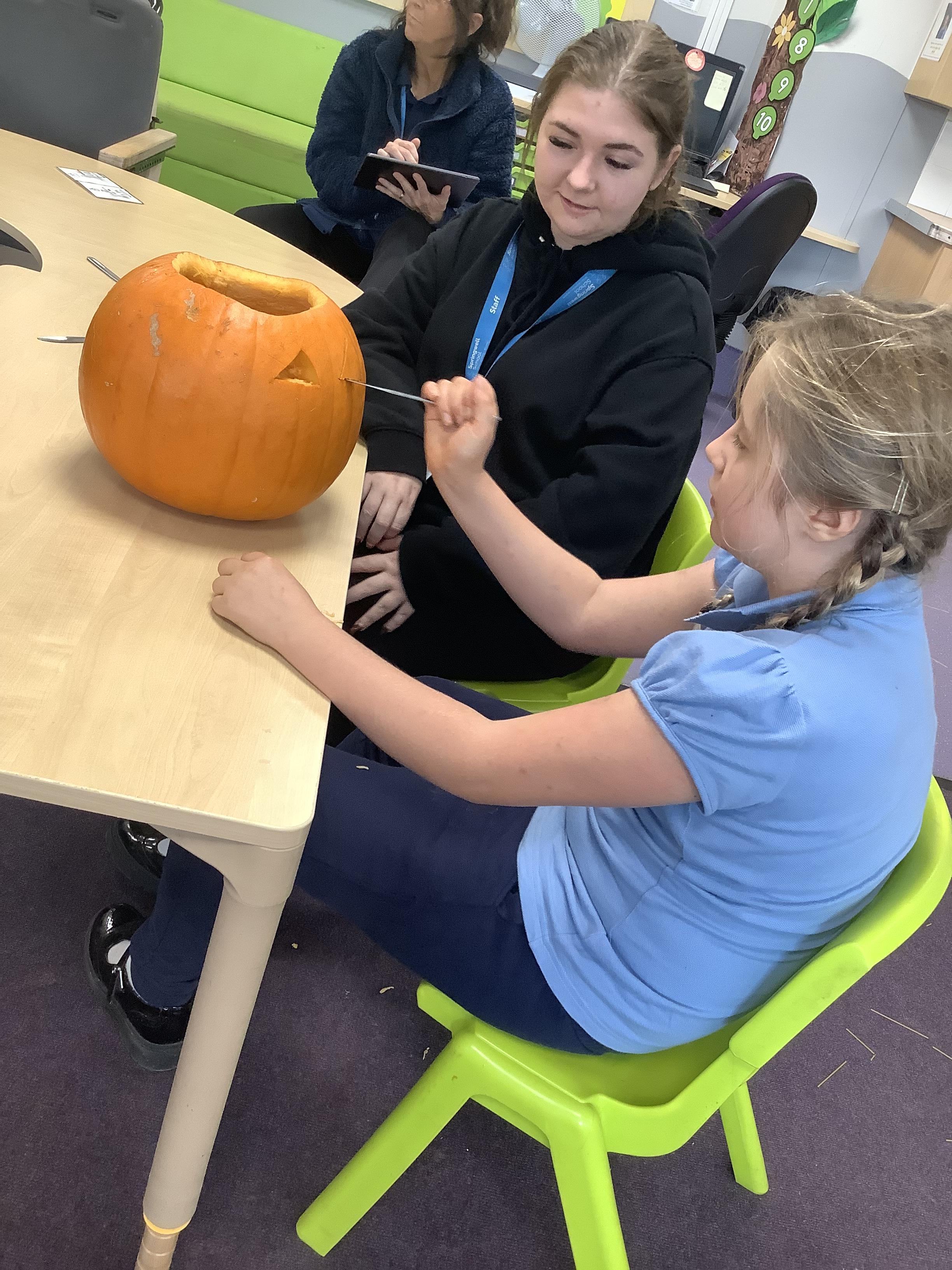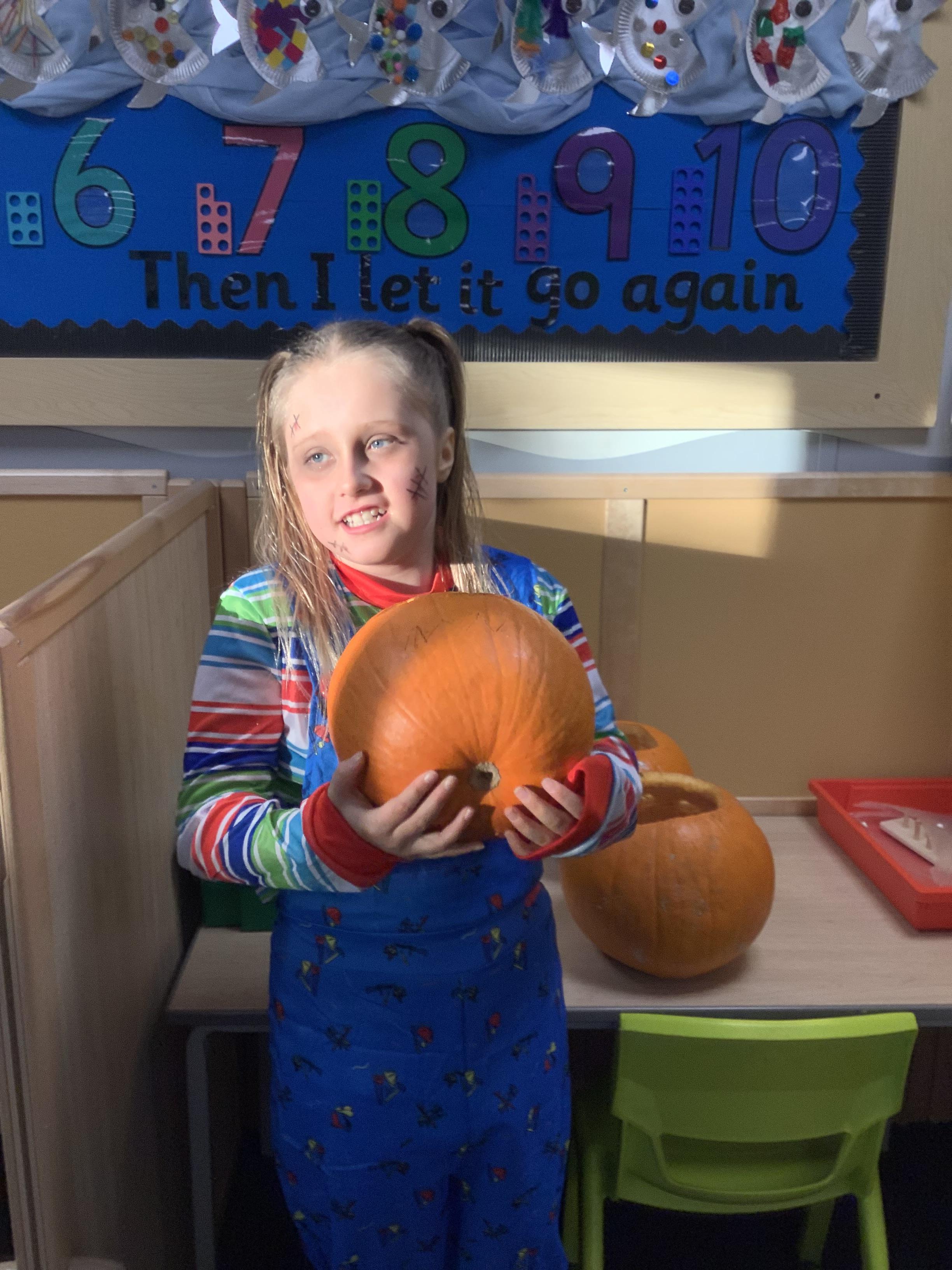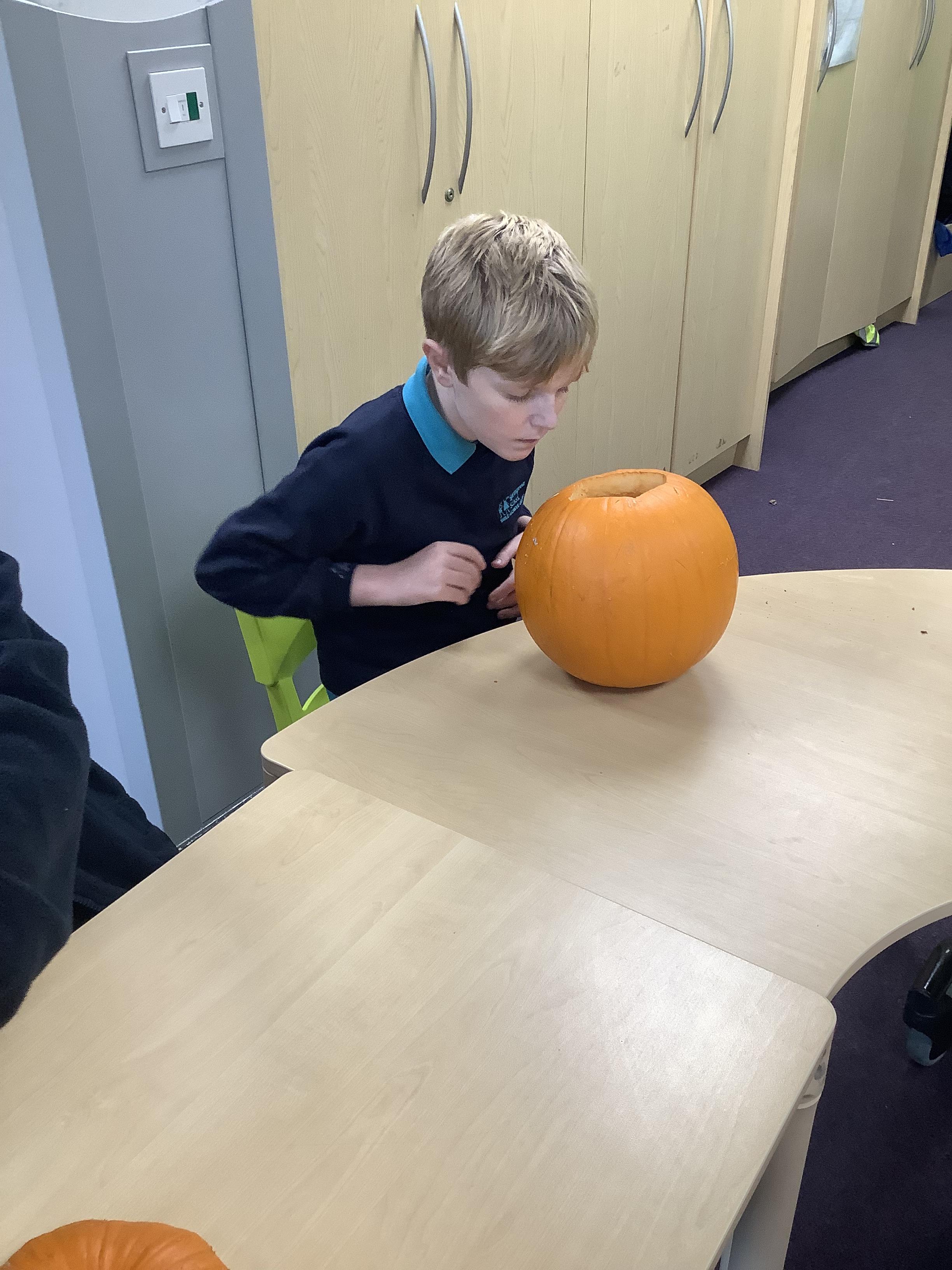 Today Pangolin class visited the shops and picked pumpkins ready for the afternoon activities. All the children loved getting messy and carving the pumpkins.