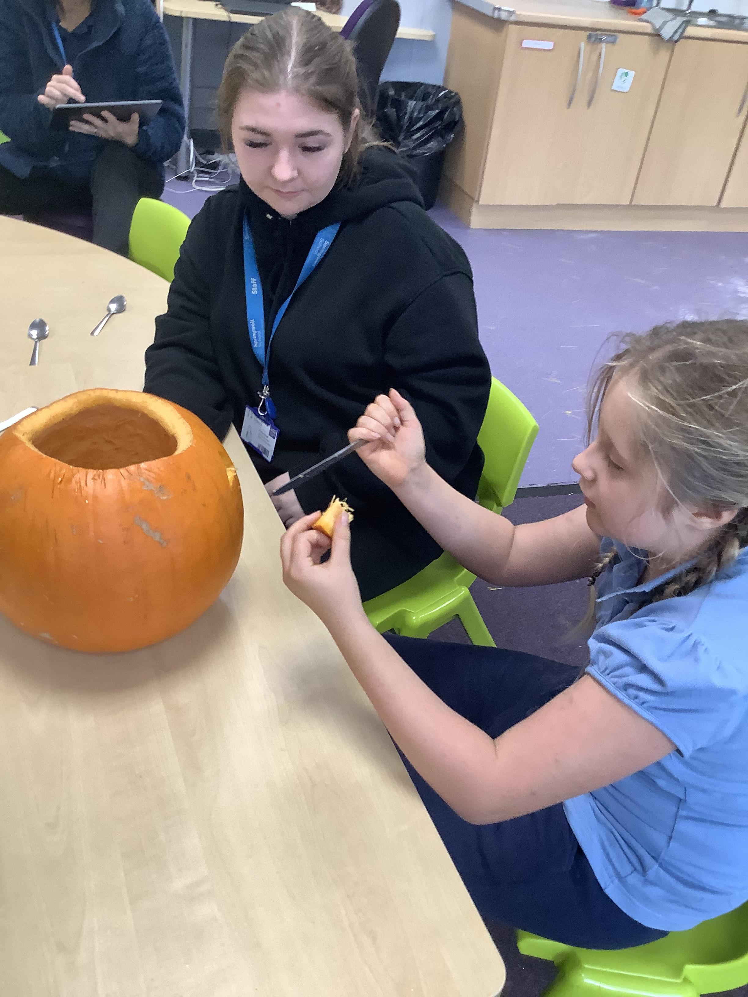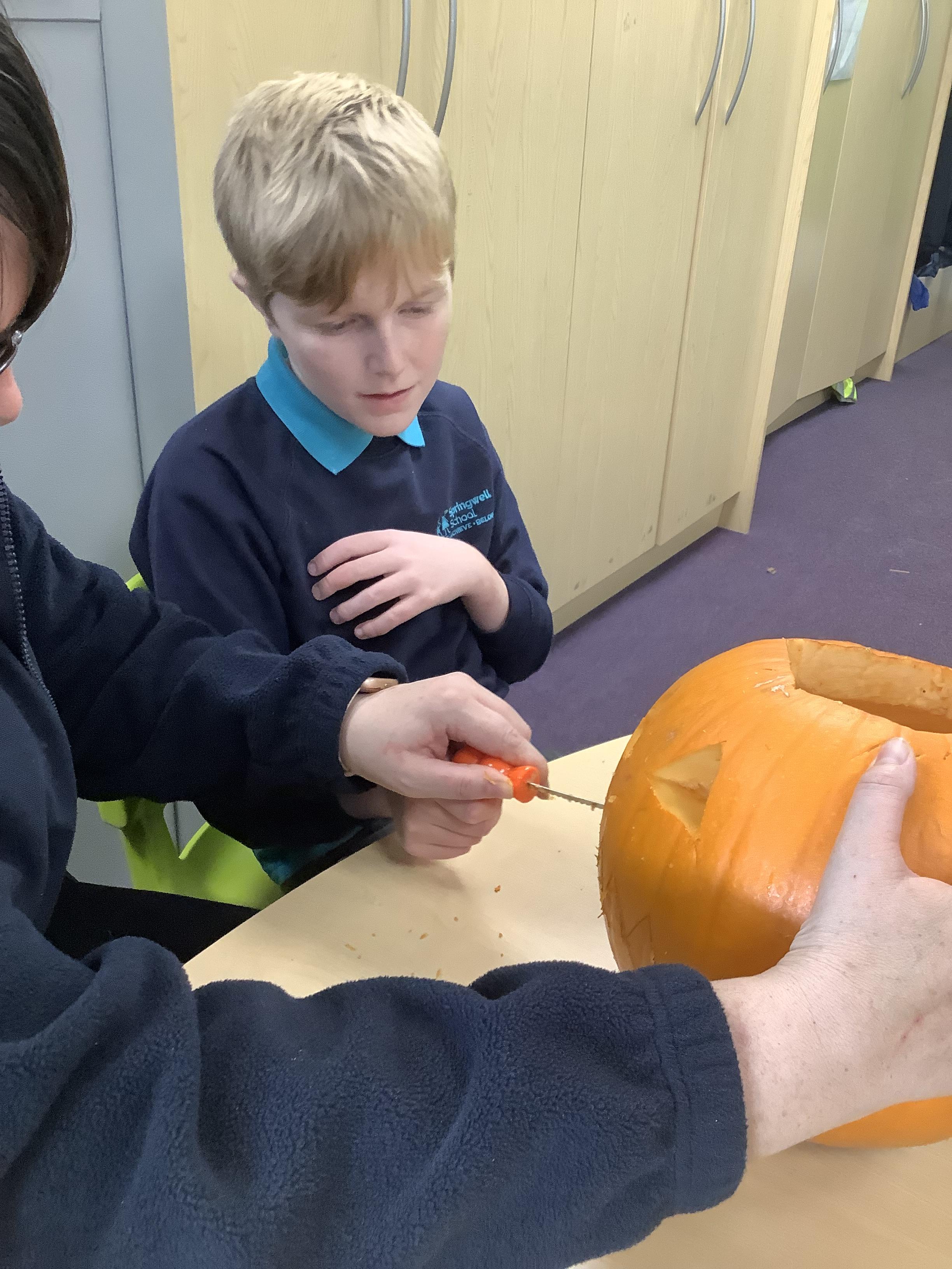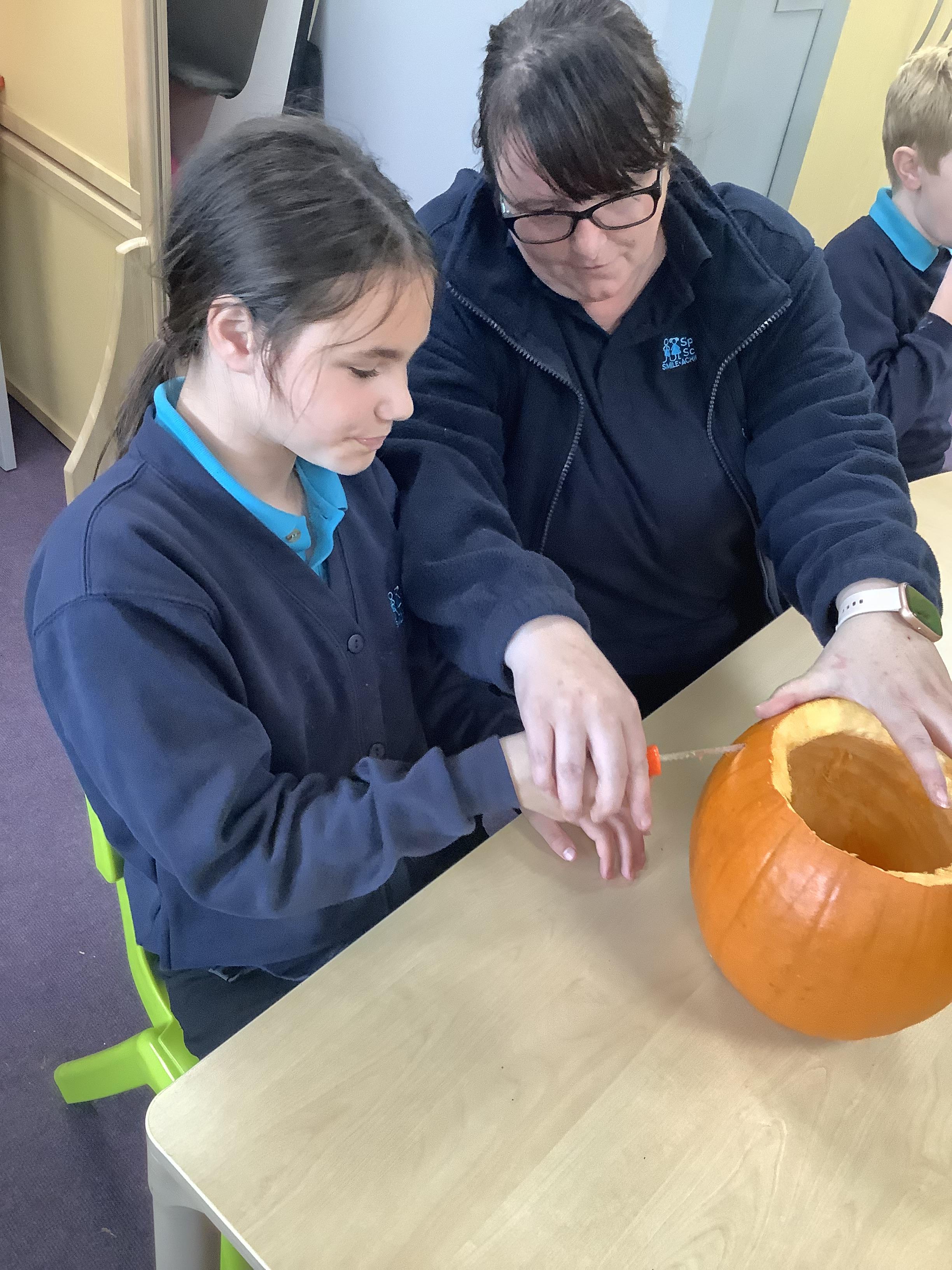 Today Pangolin class visited the shops and picked pumpkins ready for the afternoon activities. All the children loved getting messy and carving the pumpkins.