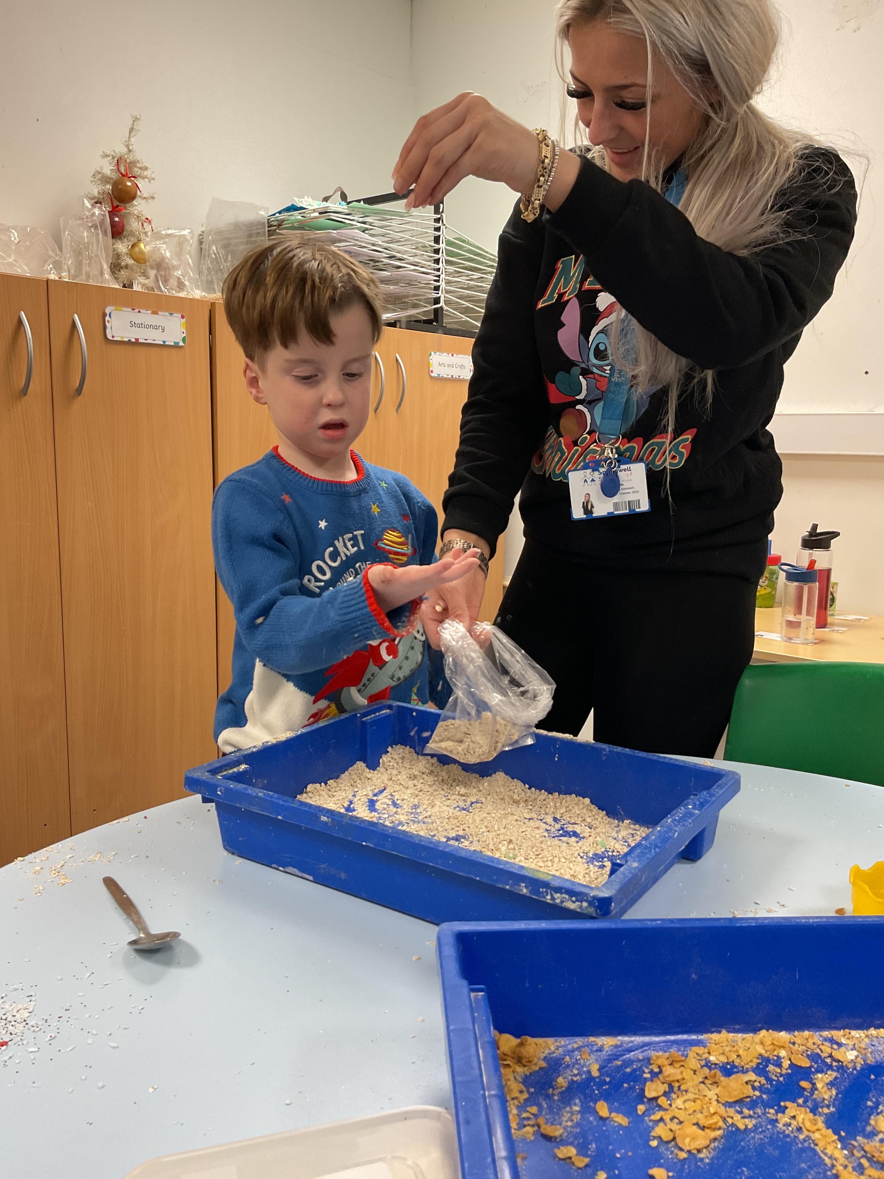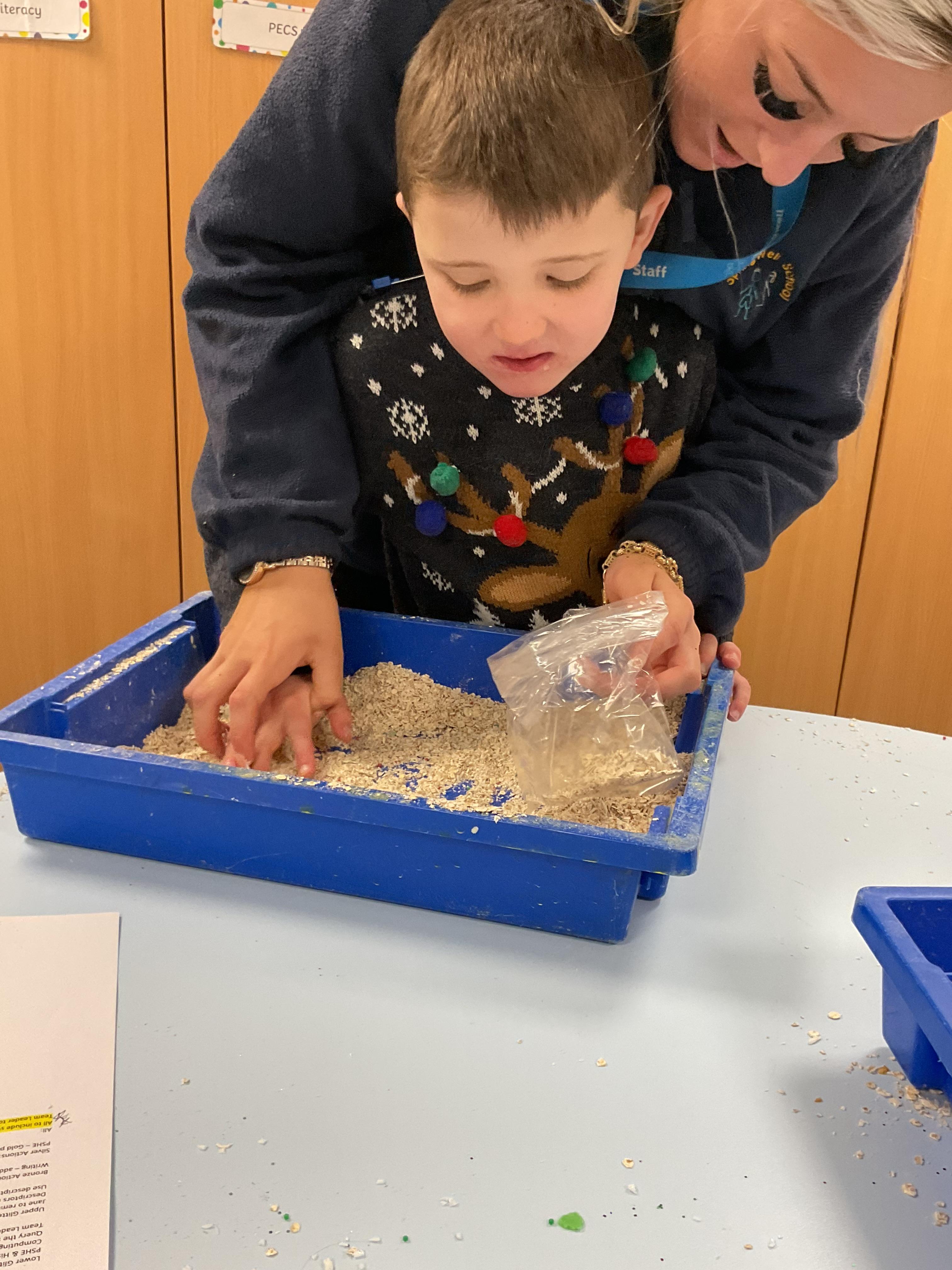 06.12.24 - Today we all enjoyed some sensory Christmas activities. We had so much fun getting very messy.