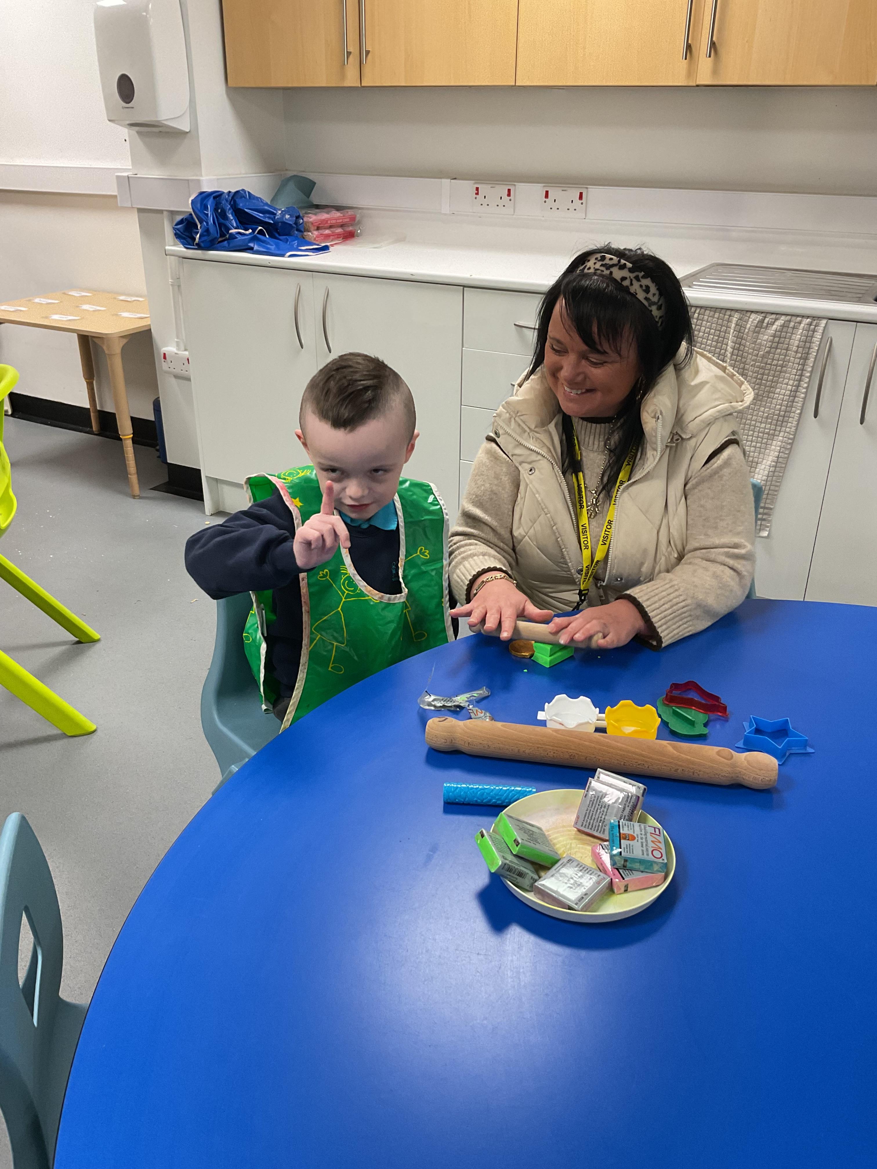4.11.24 - Today we had a share a story afternoon with parents. We all listened to 'The story of Christmas'. Afterwards we made Christmas shapes with playdough.