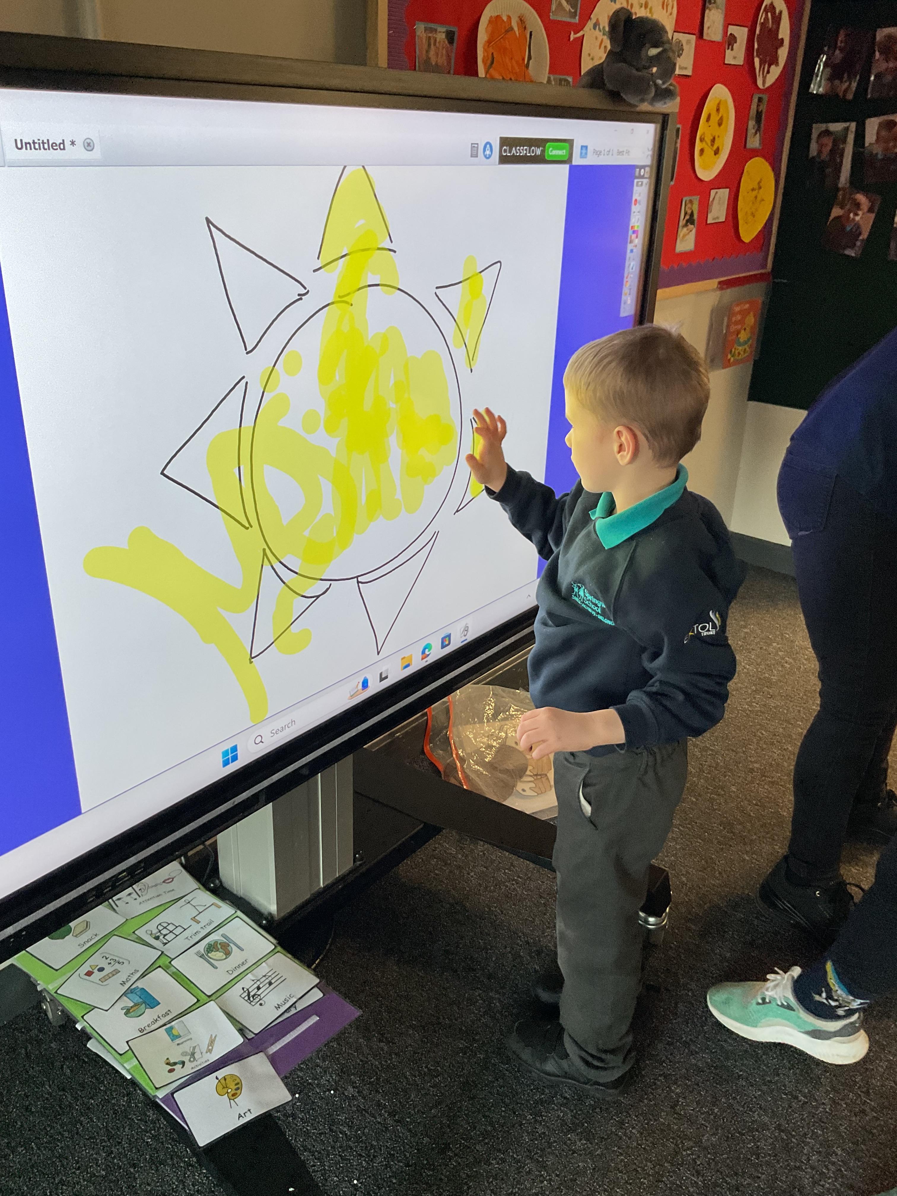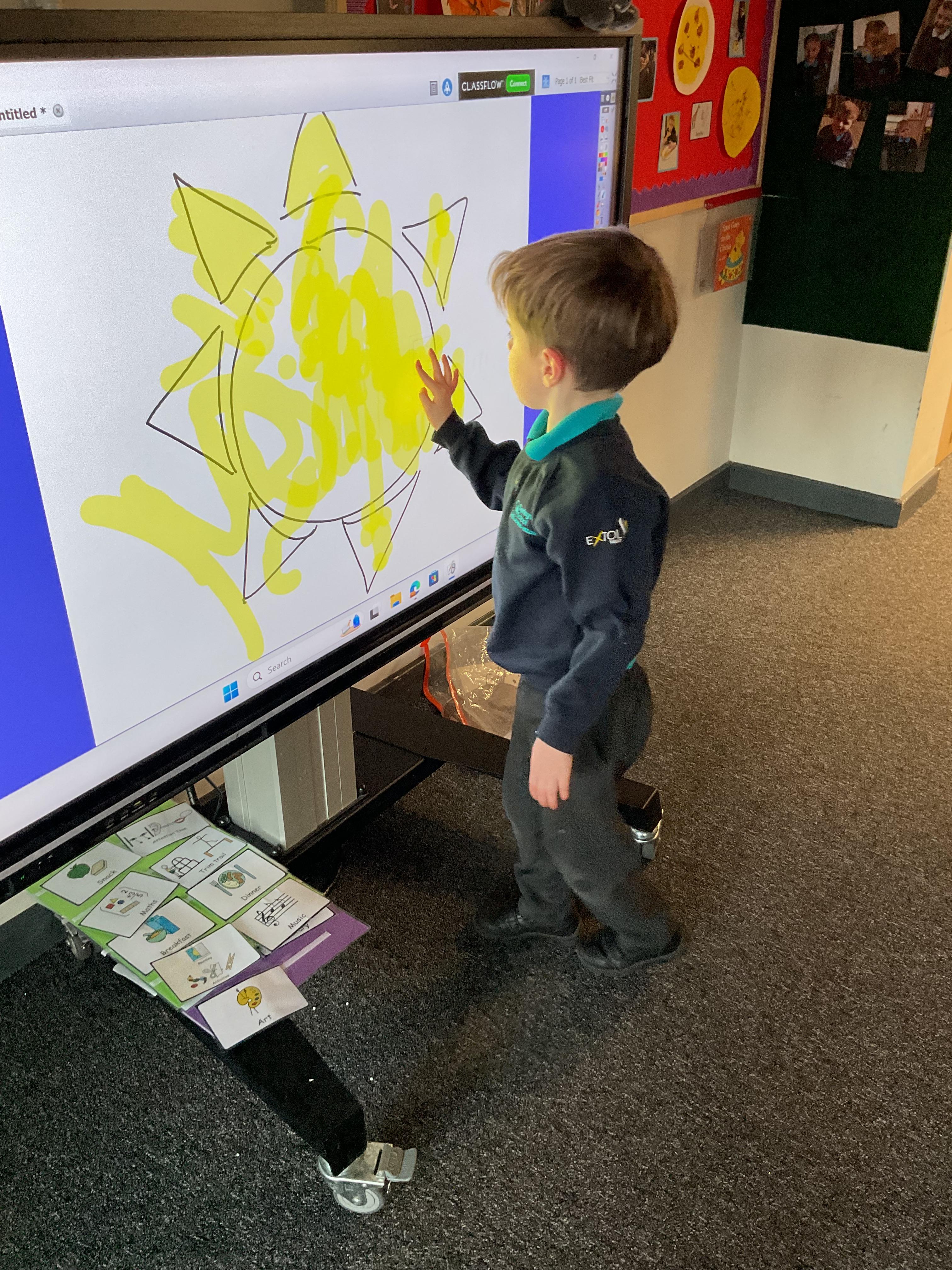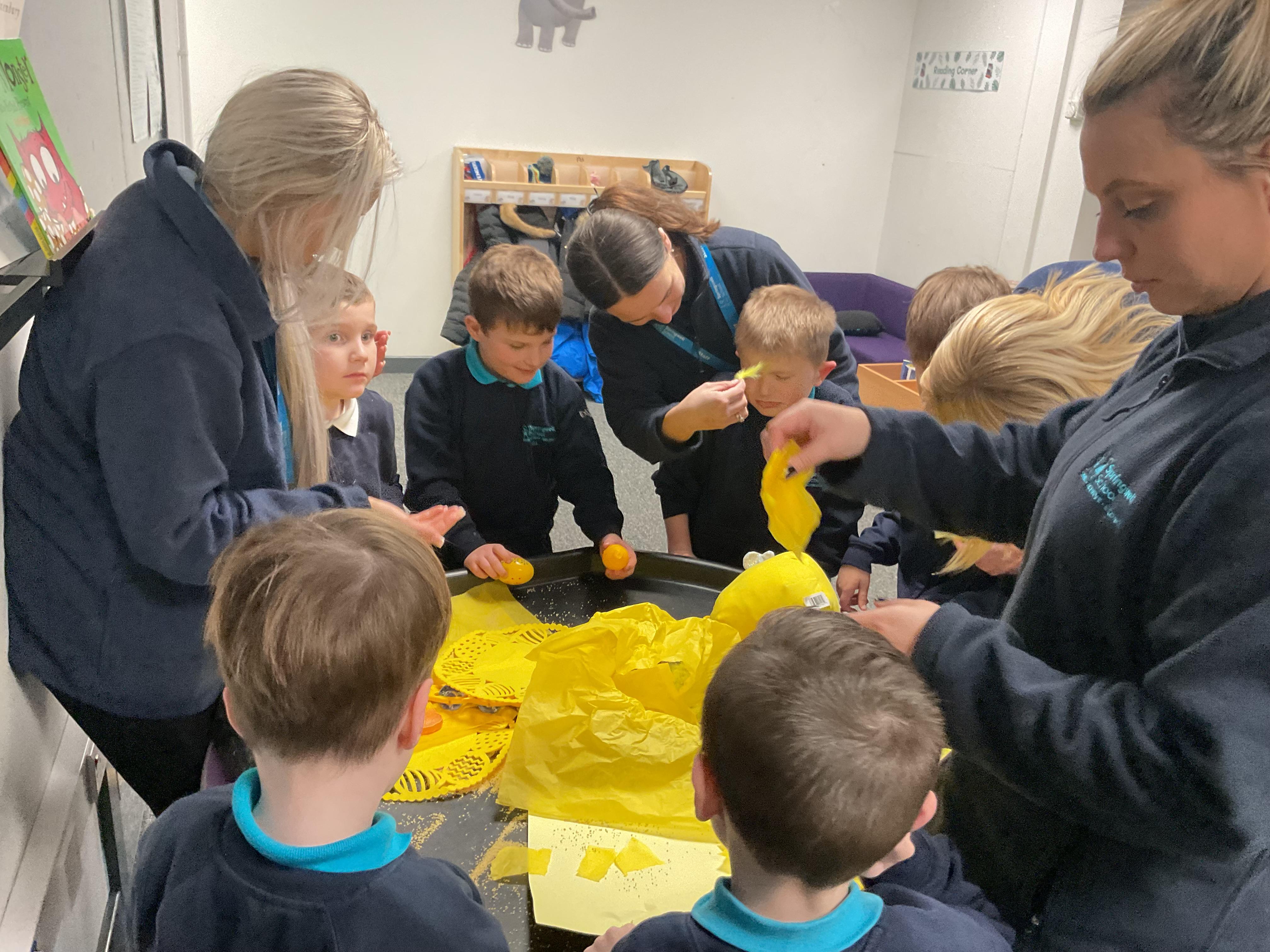 20.11.24 - Our colour of the week is yellow and today in Elephant class, we explored lots of different objects and materials which were yellow. We also enjoyed colouring in a picture of a yellow sun on the interactive whiteboard.