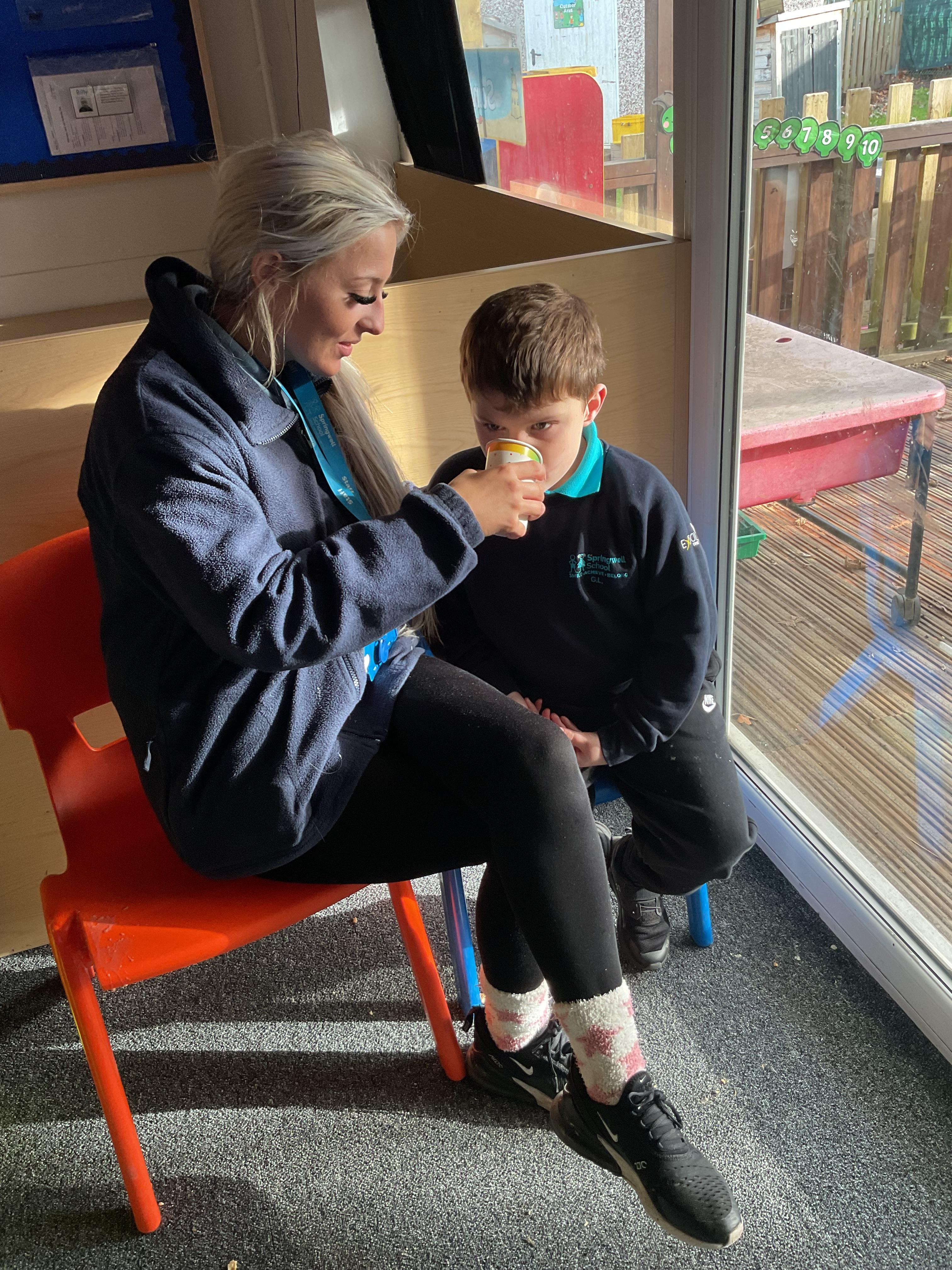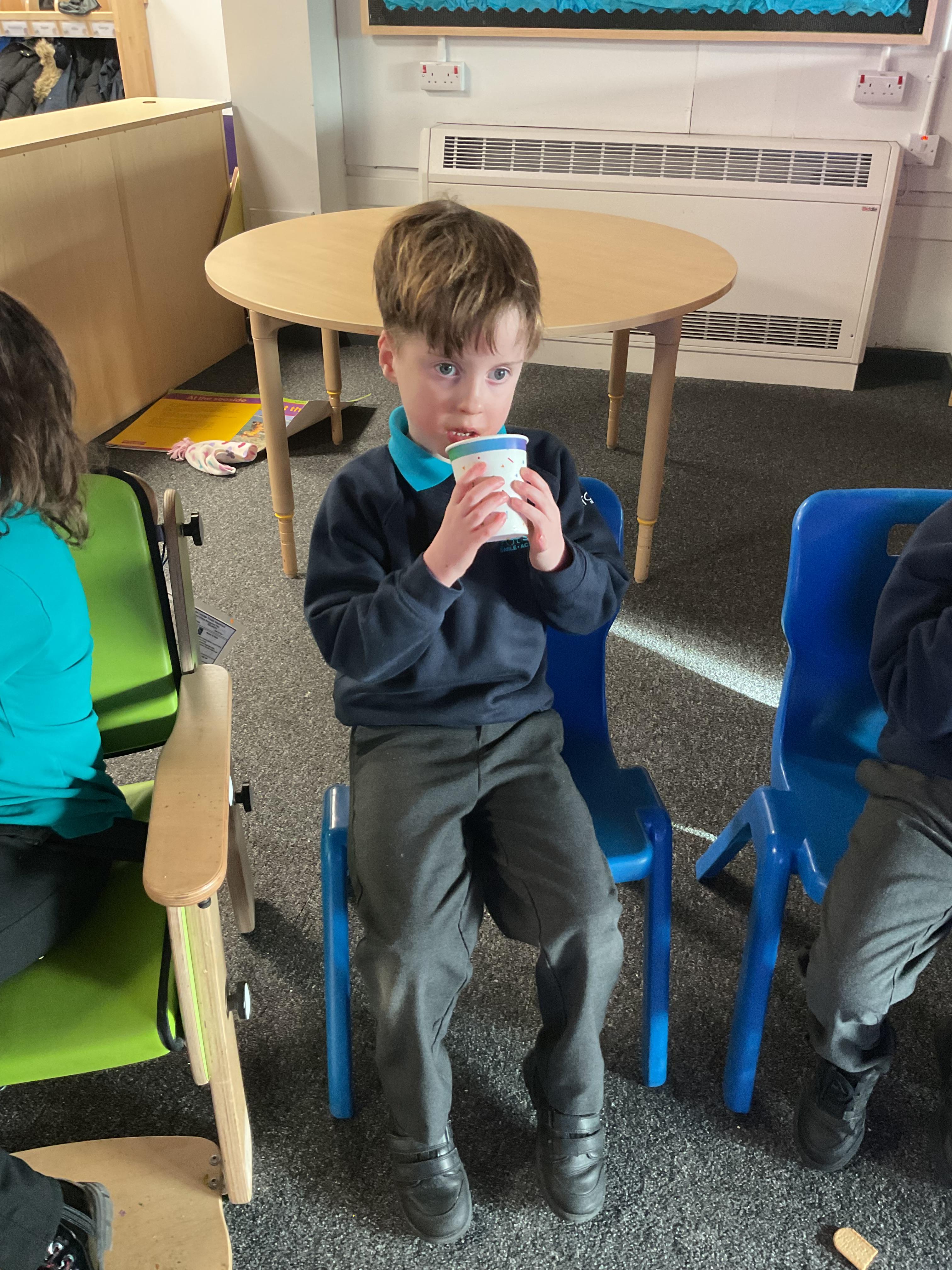 23.09.24 - We had a great time today exploring the café and enjoying a drink of juice and a piece of cake.