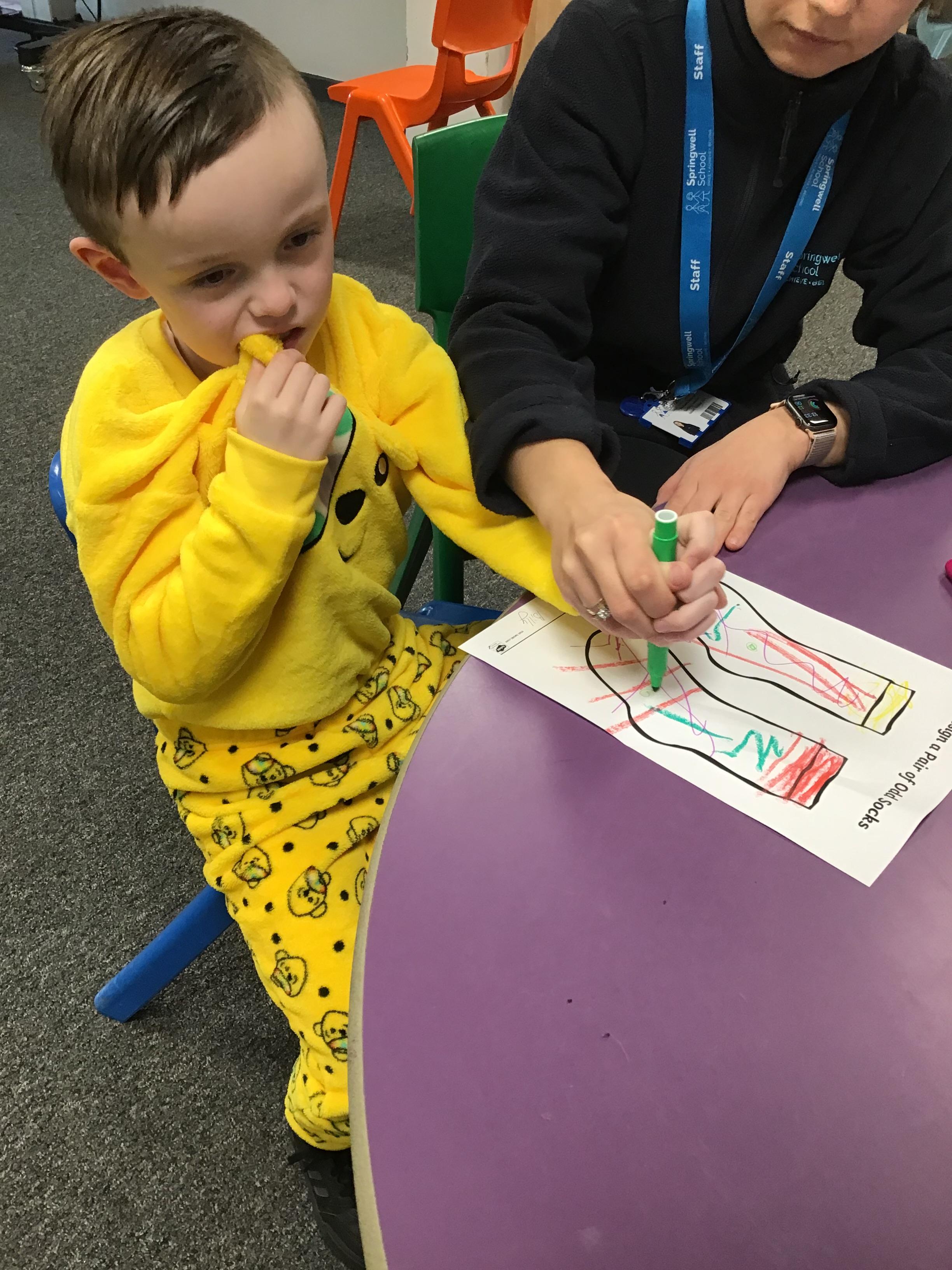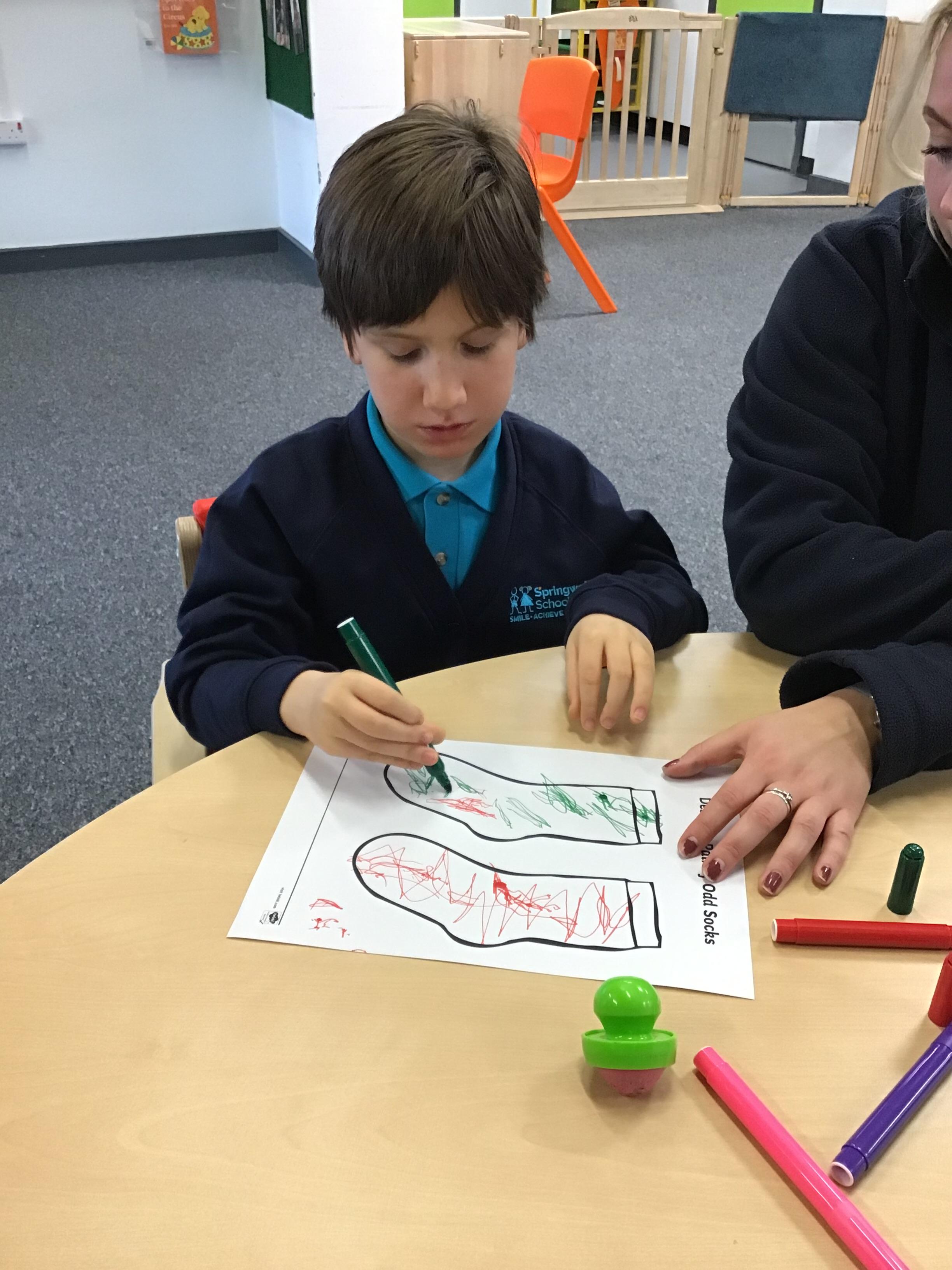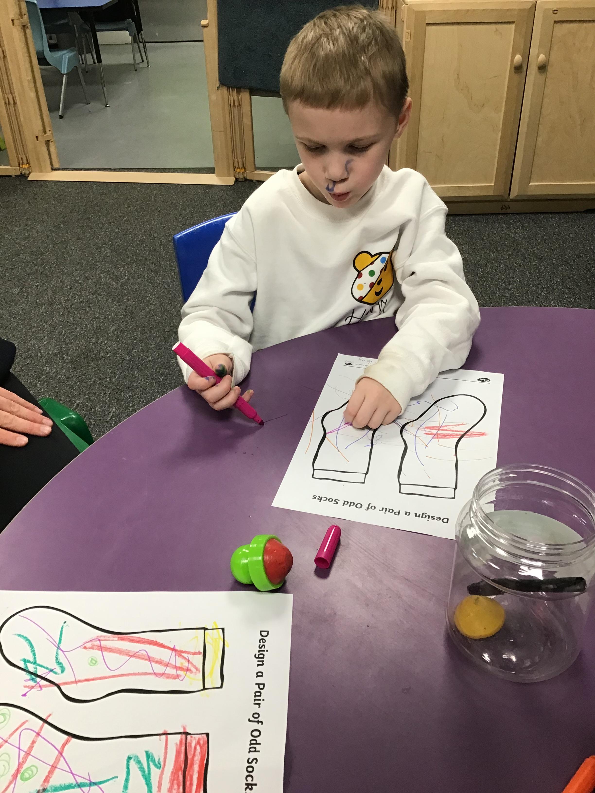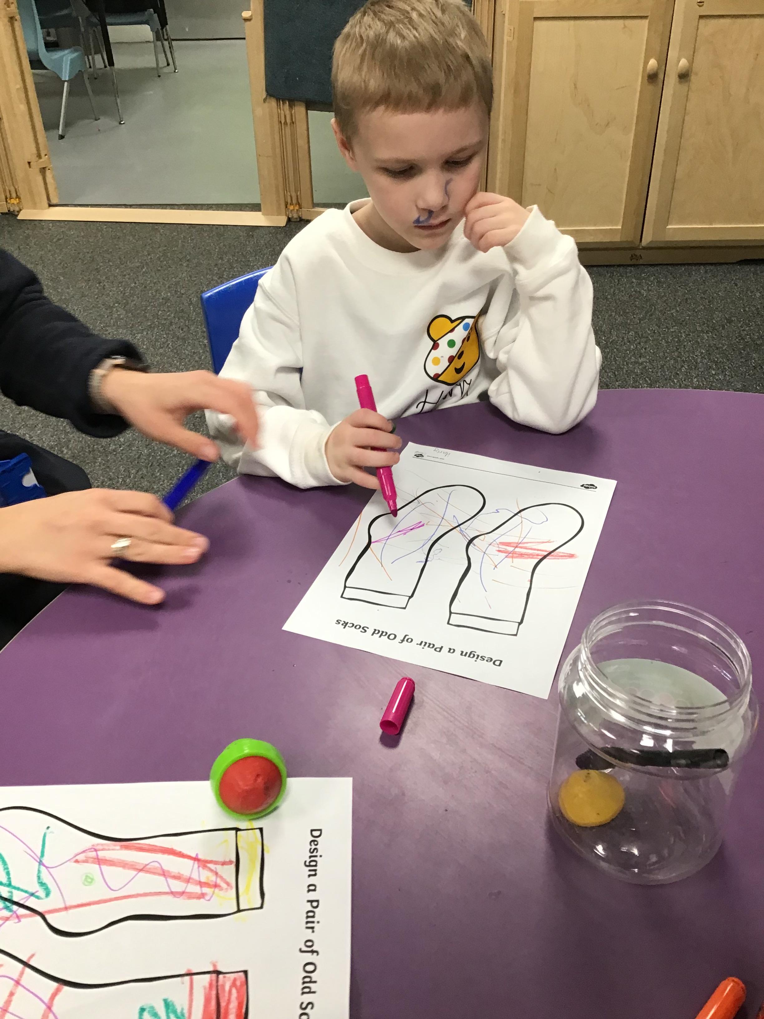 15.11.24 - This week was anti-bullying week at school. Today Elephant class enjoyed colouring in our own odd socks.