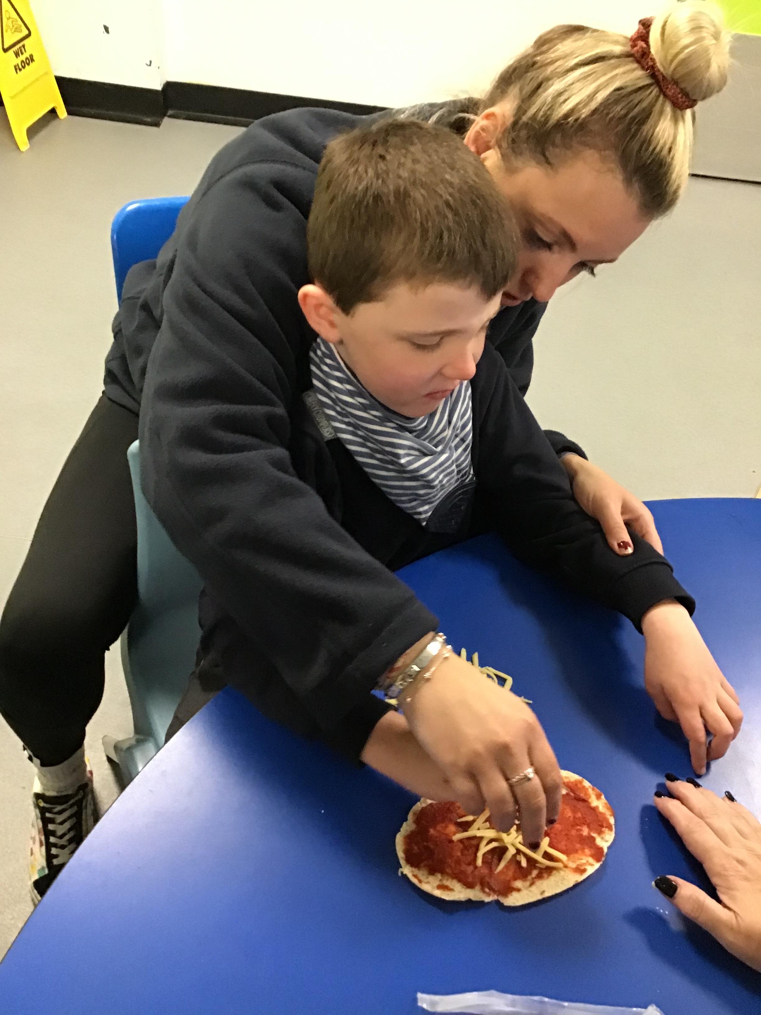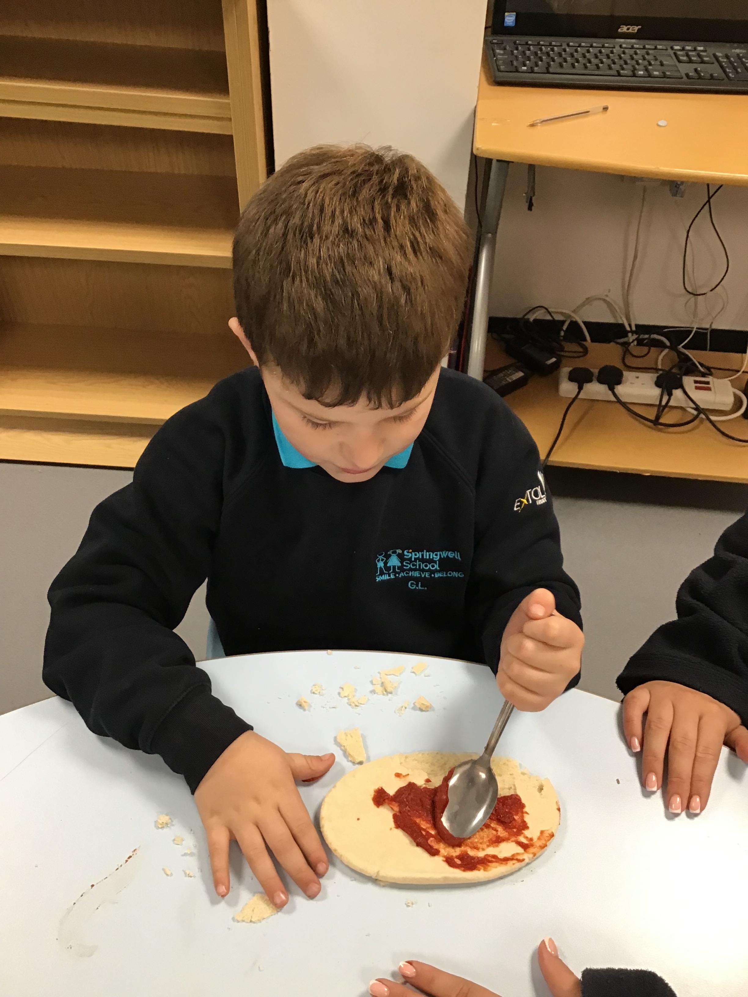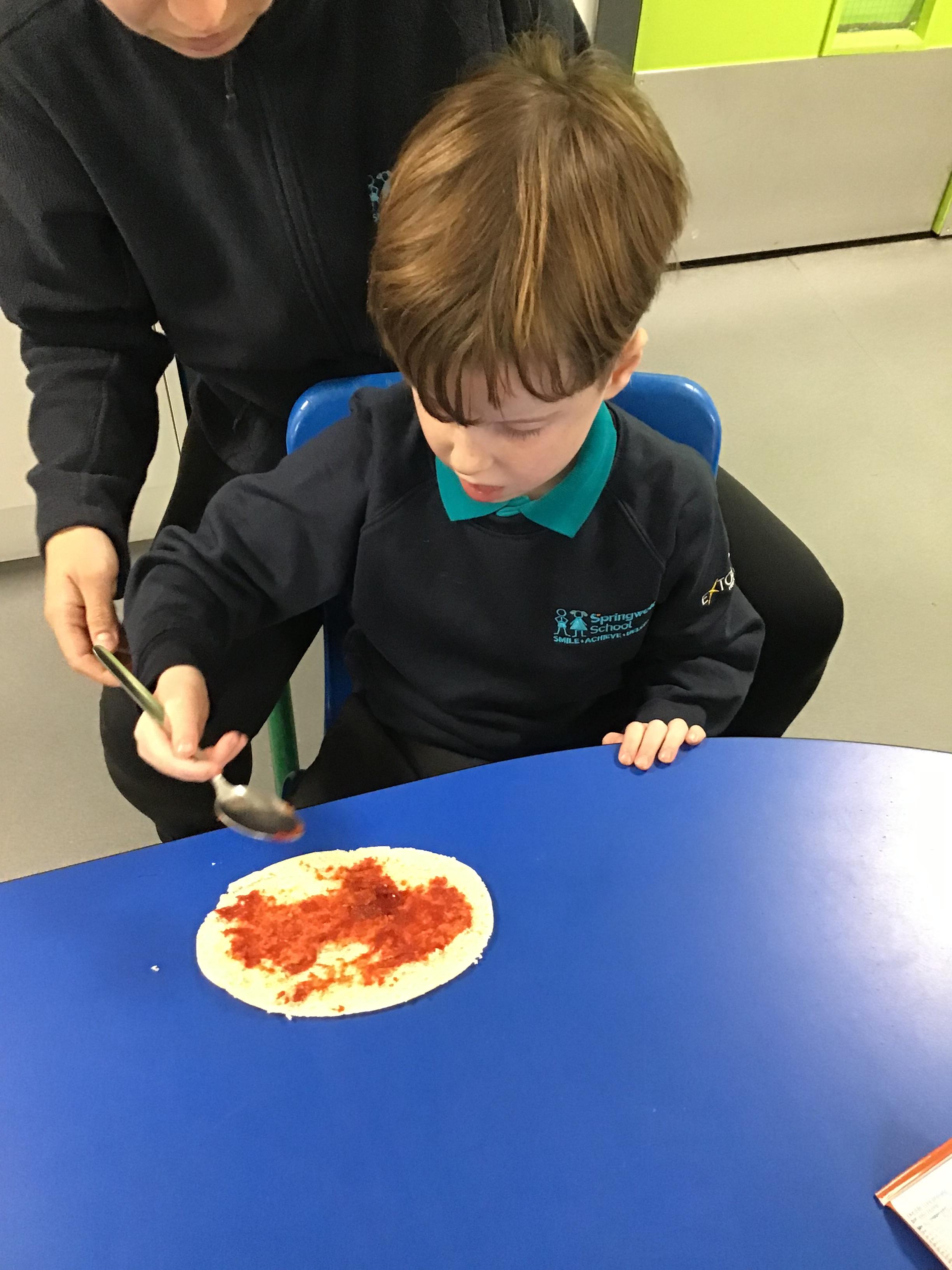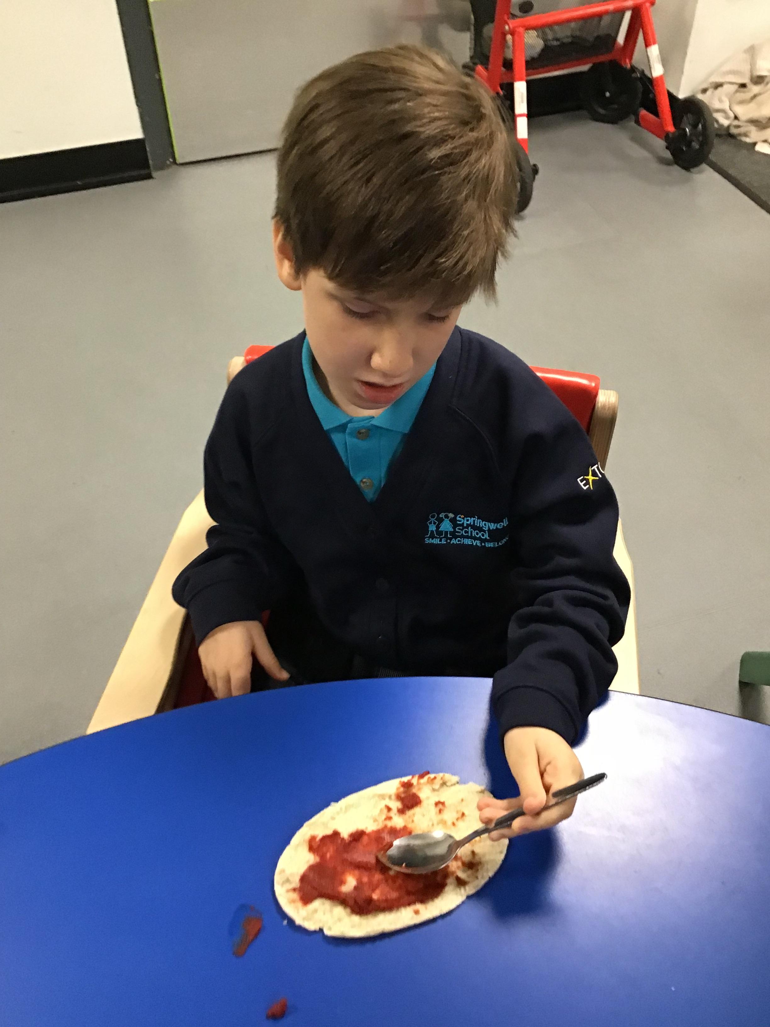 Today we made pizza. The children enjoyed exploring the different food we used to make their pizza.