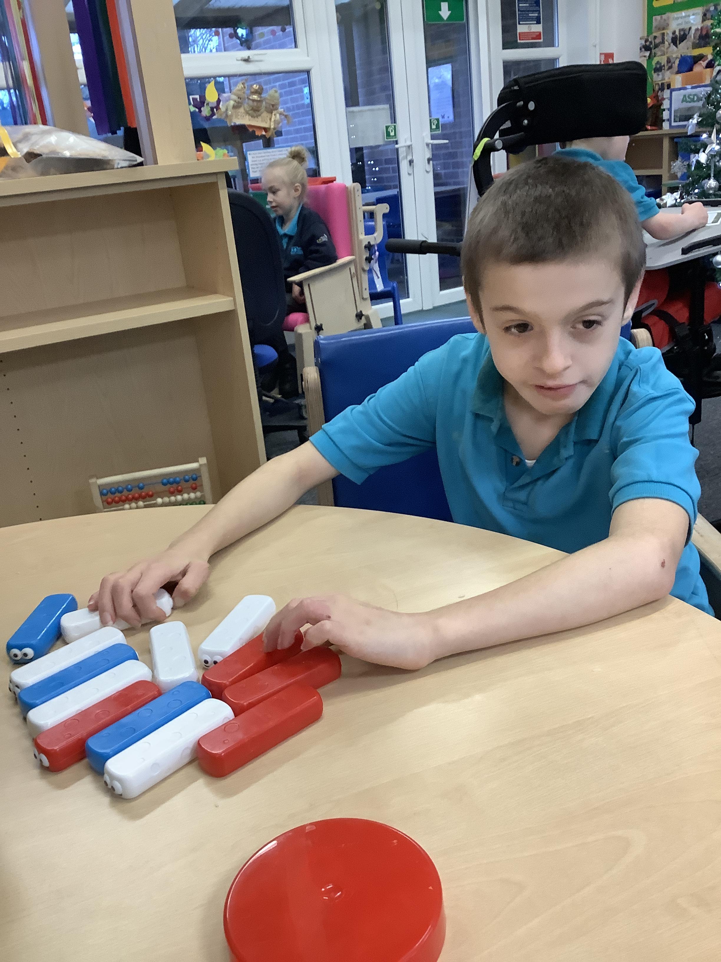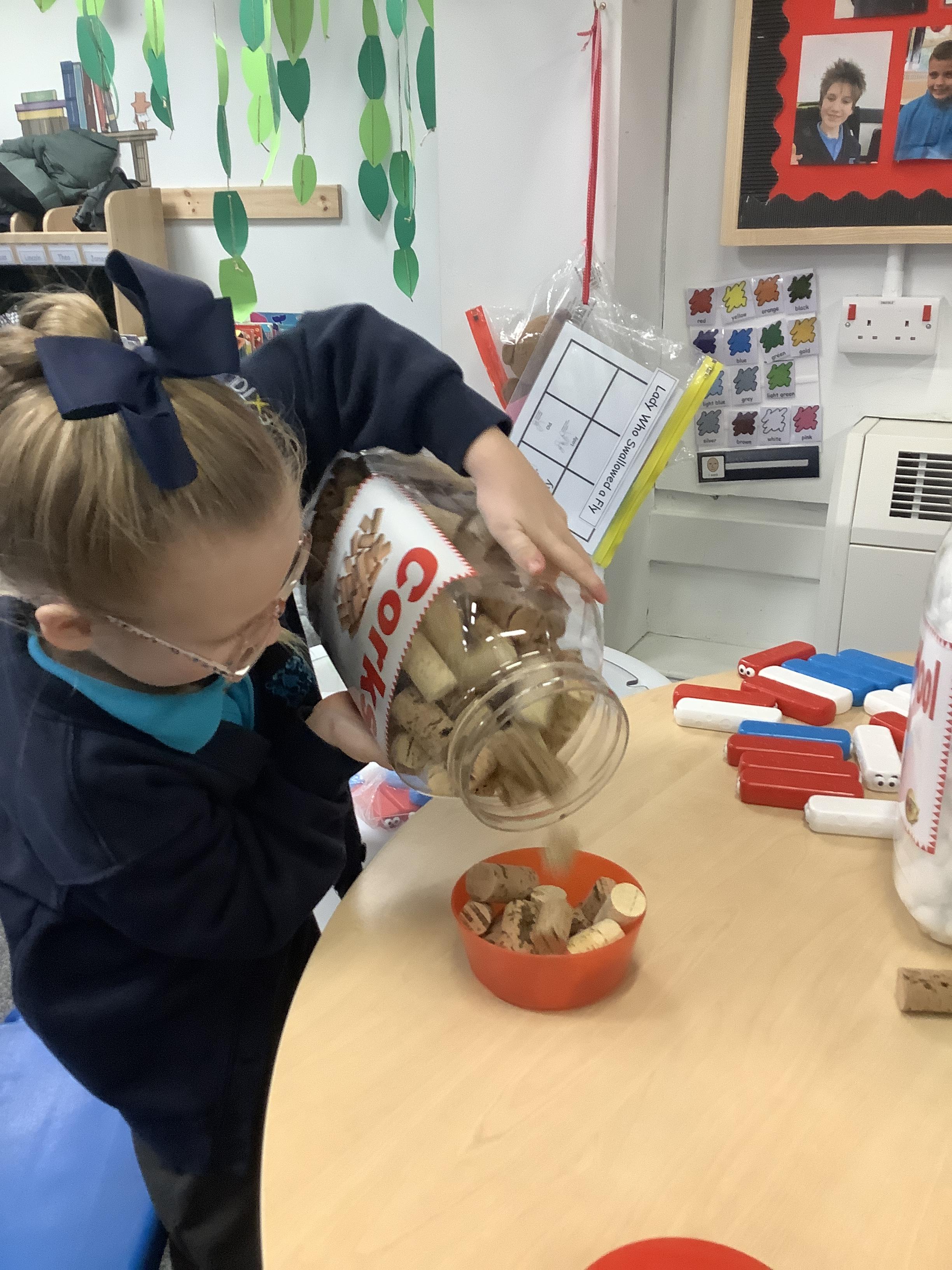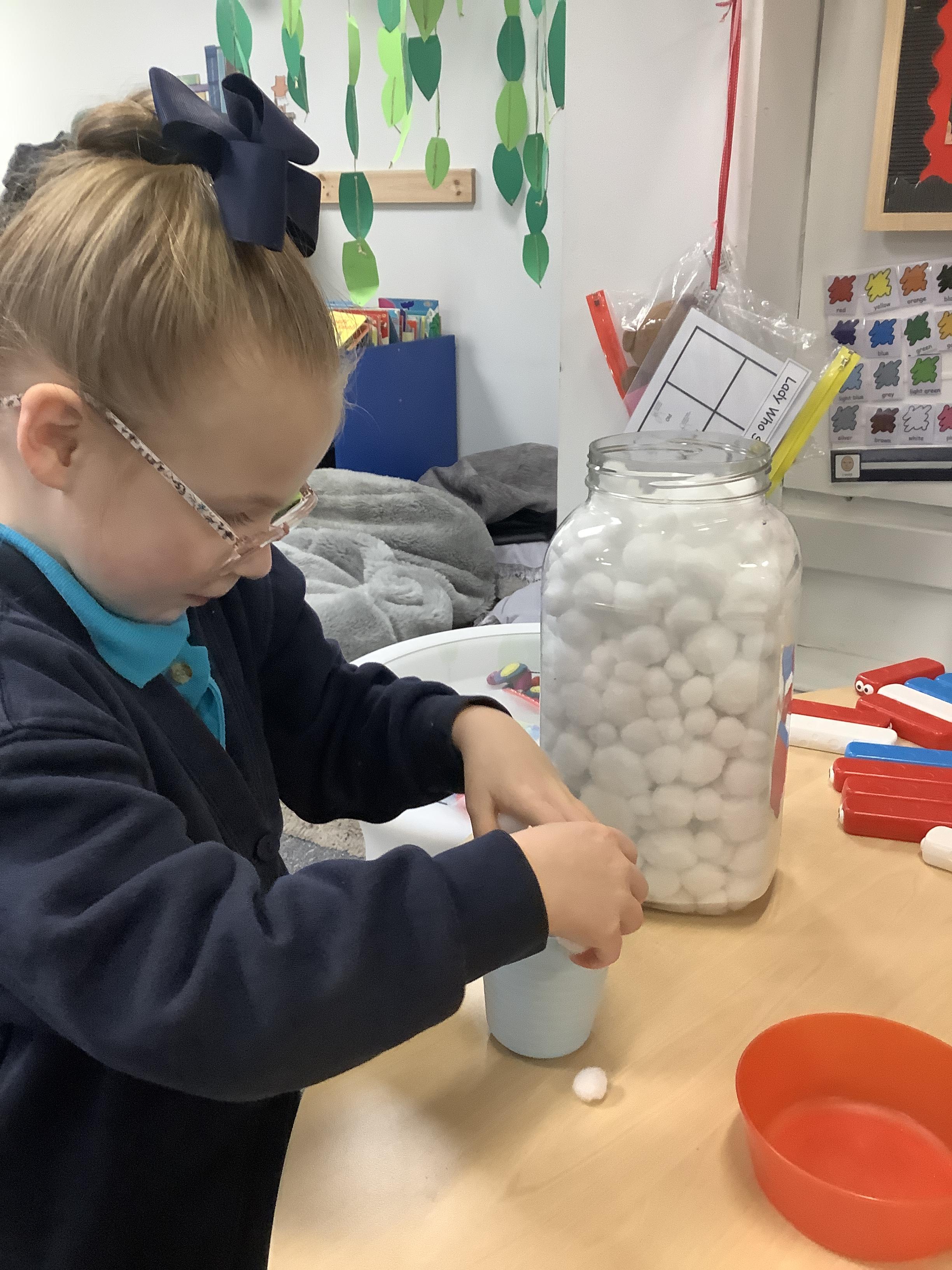 05.12.25 MATHS: We have bee sorting and filling/putting things into containers on command. We have also been positioning objects/blocks in a line.