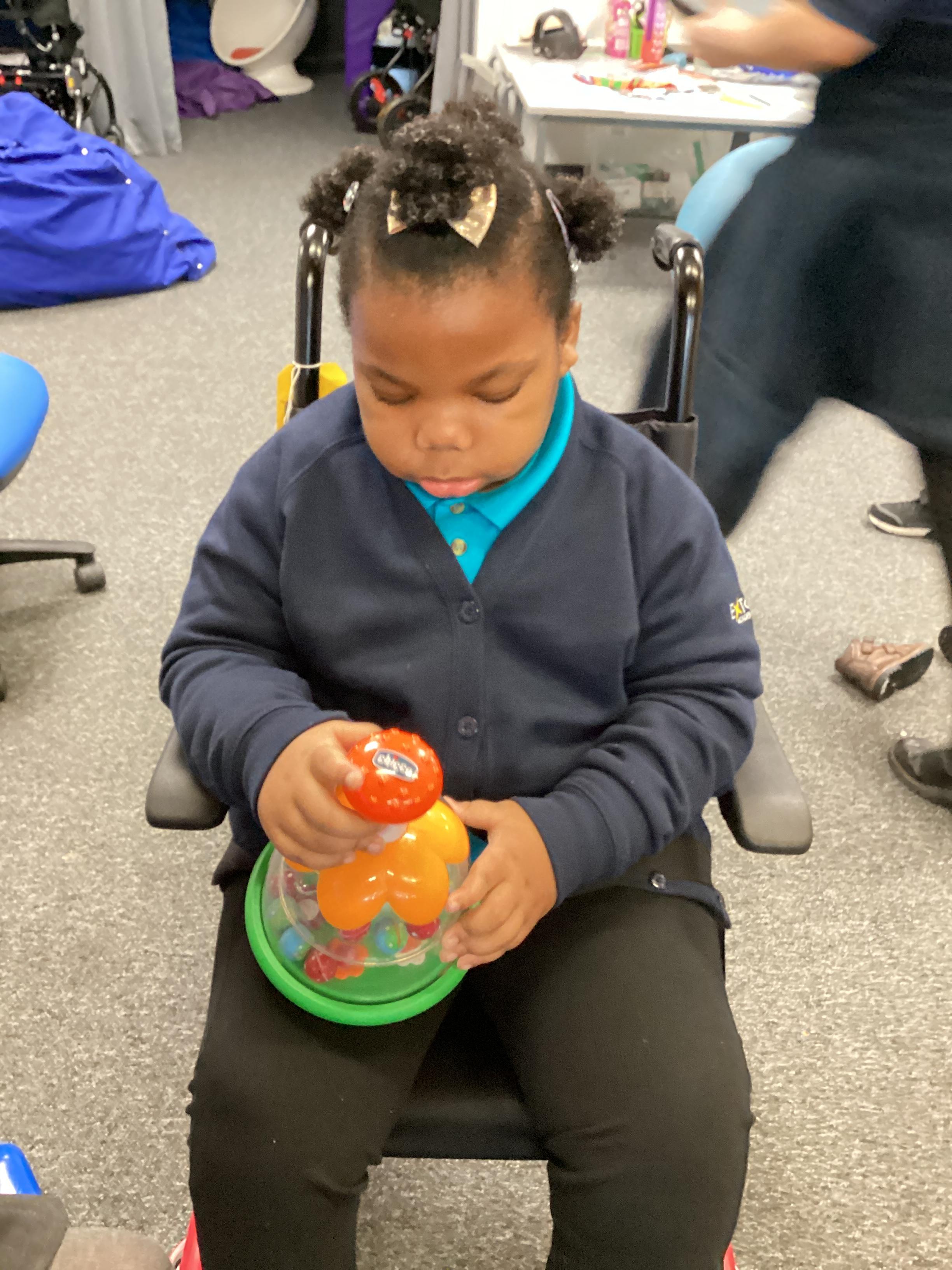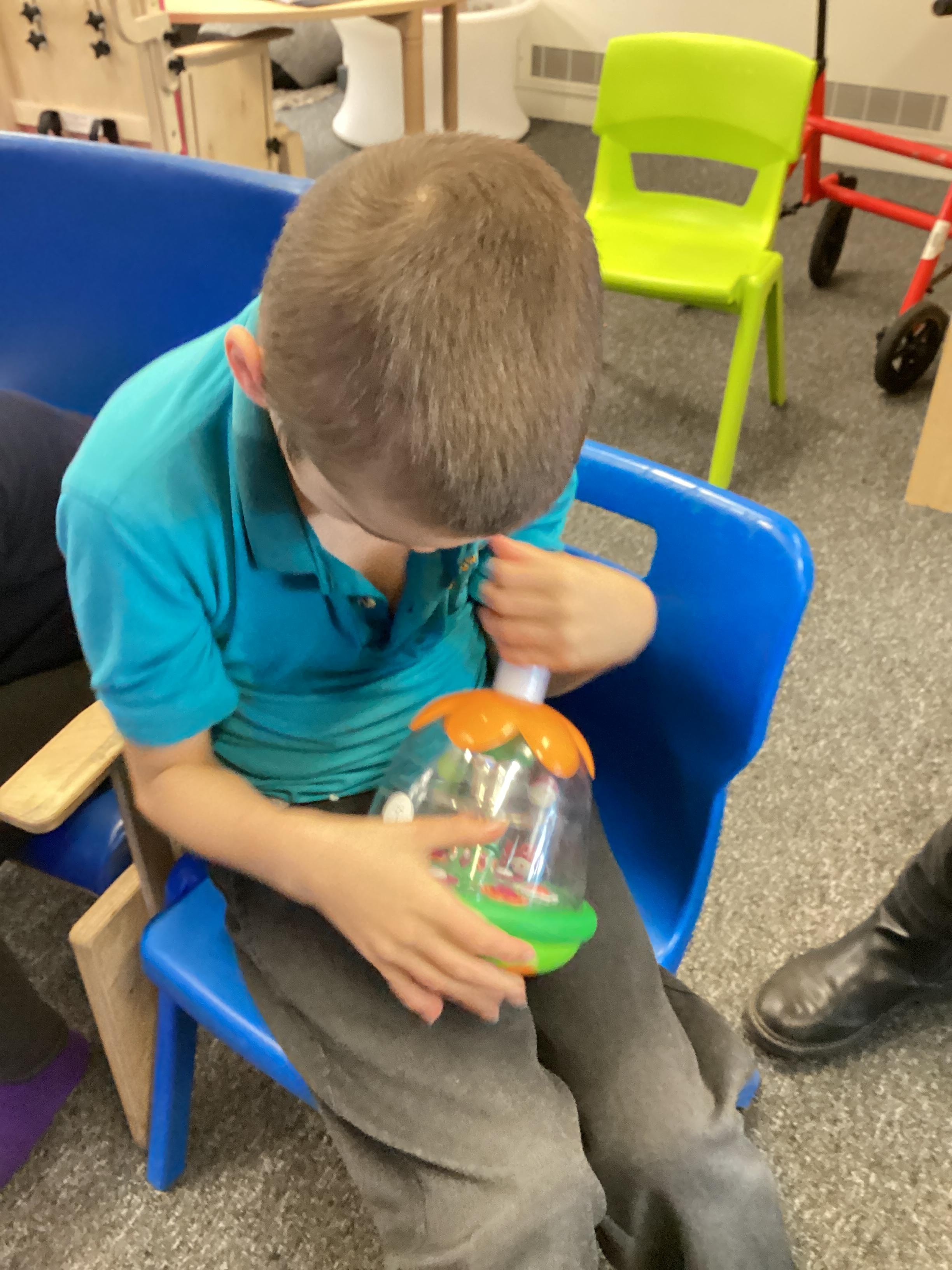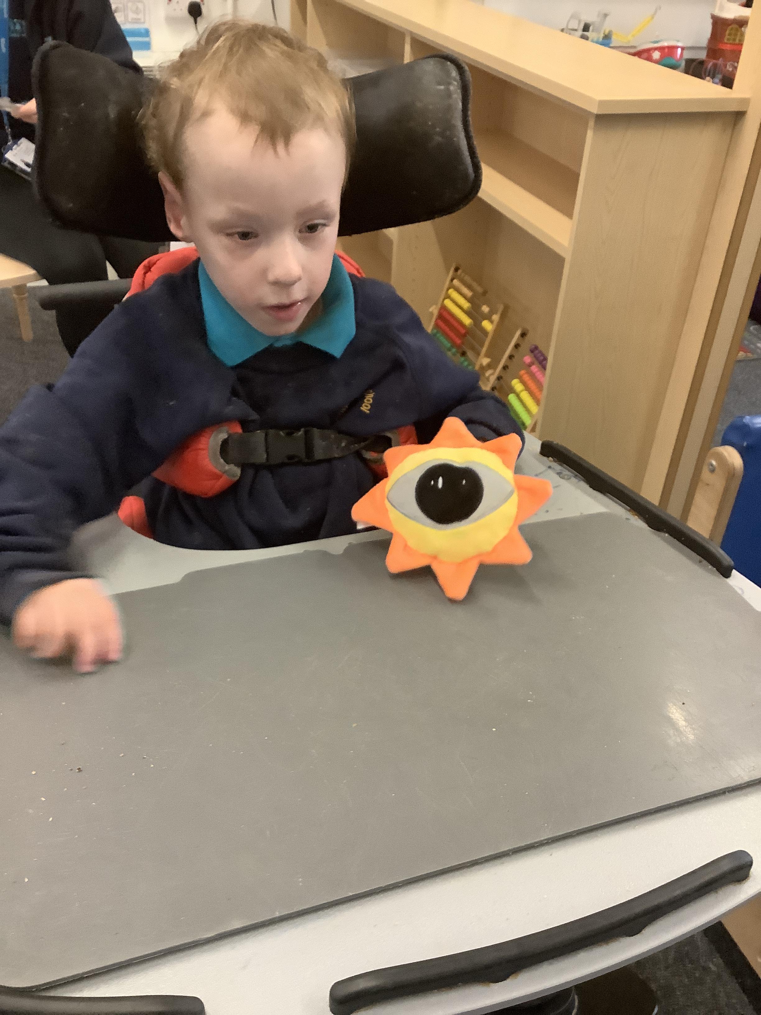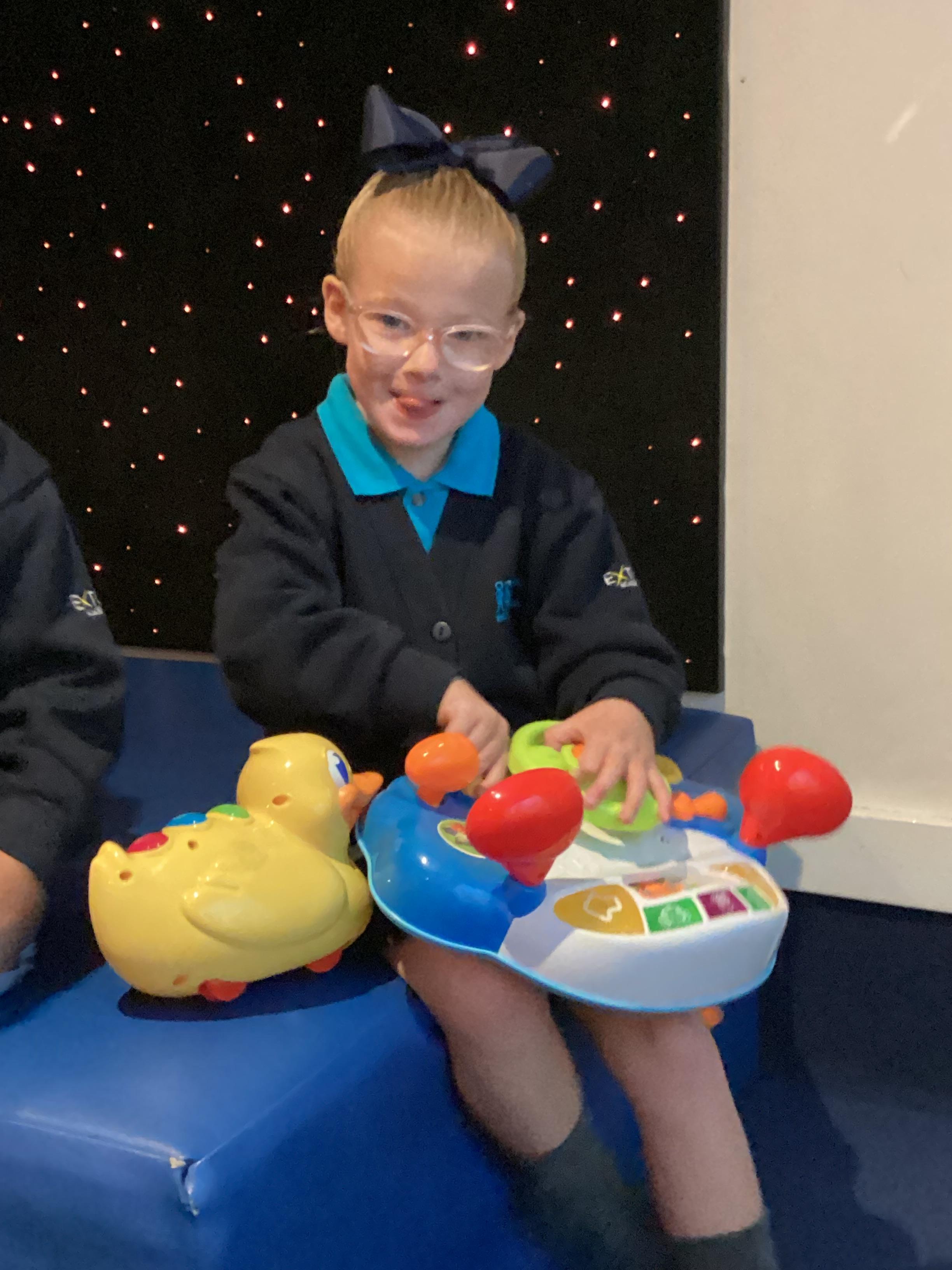 12.09.25 LIGHT AND SOUND ROOM The children explored a range of cause and effect toys and electronic toys. They pressed the different buttons and activated the different mechanisms.