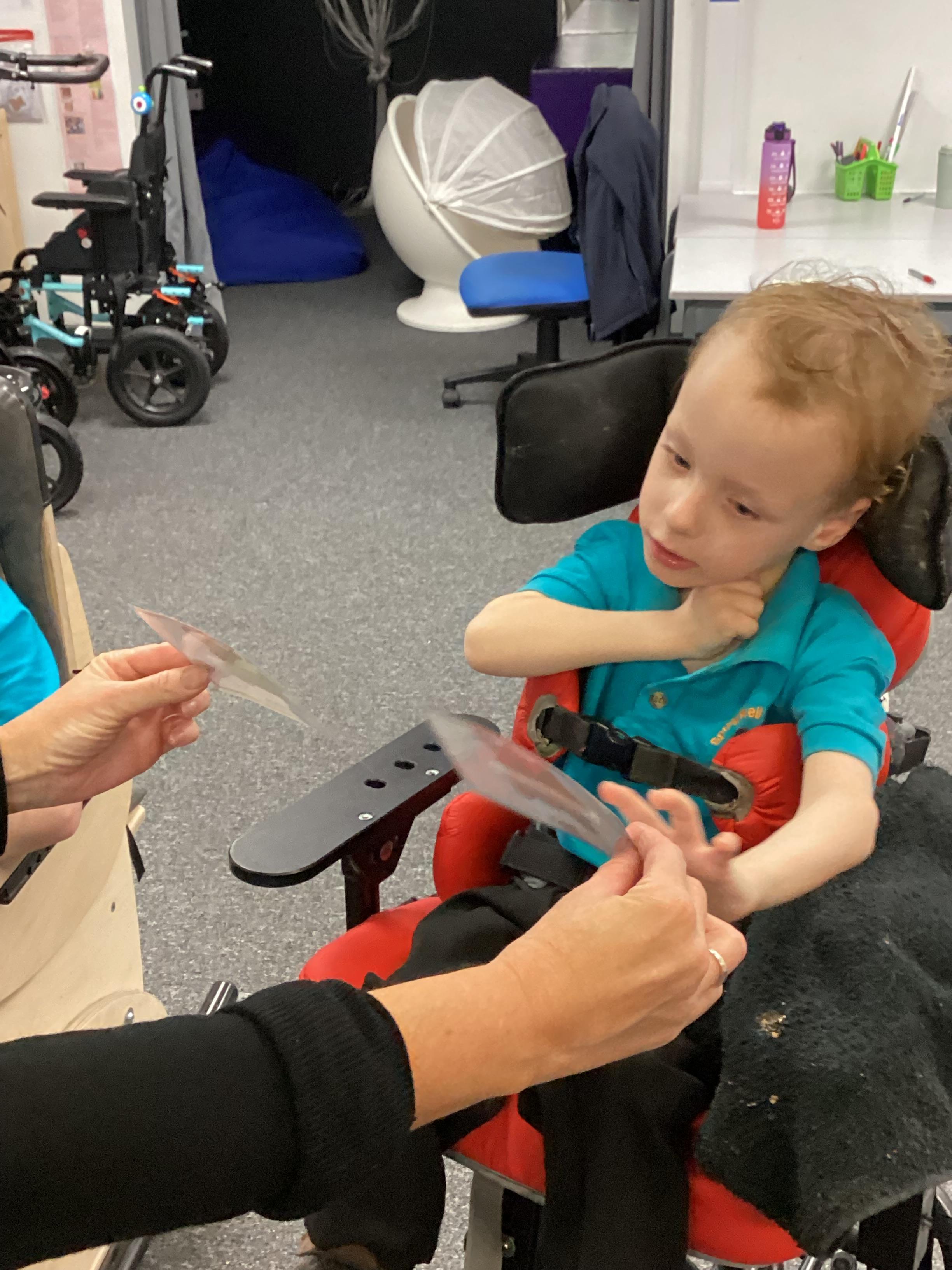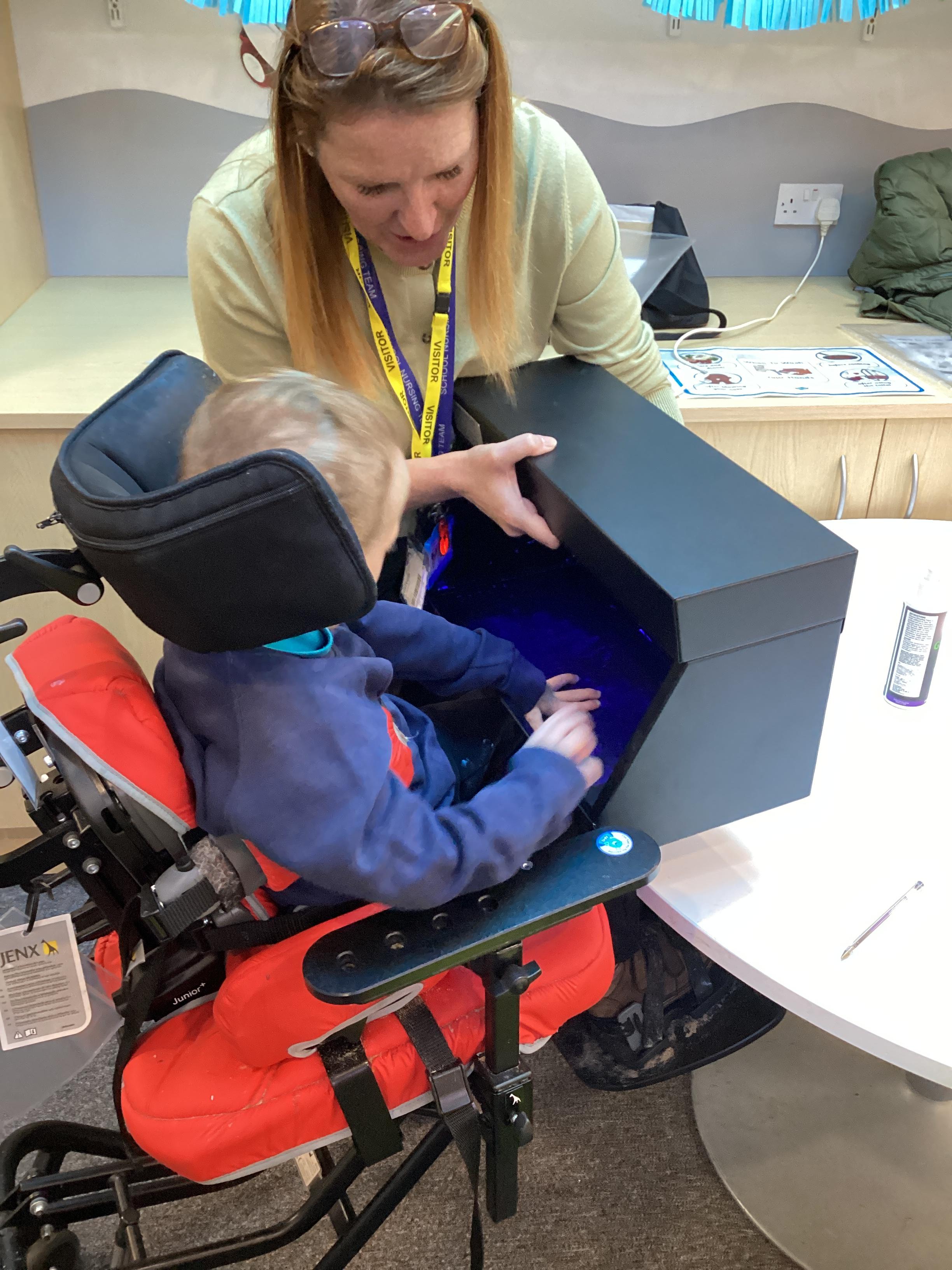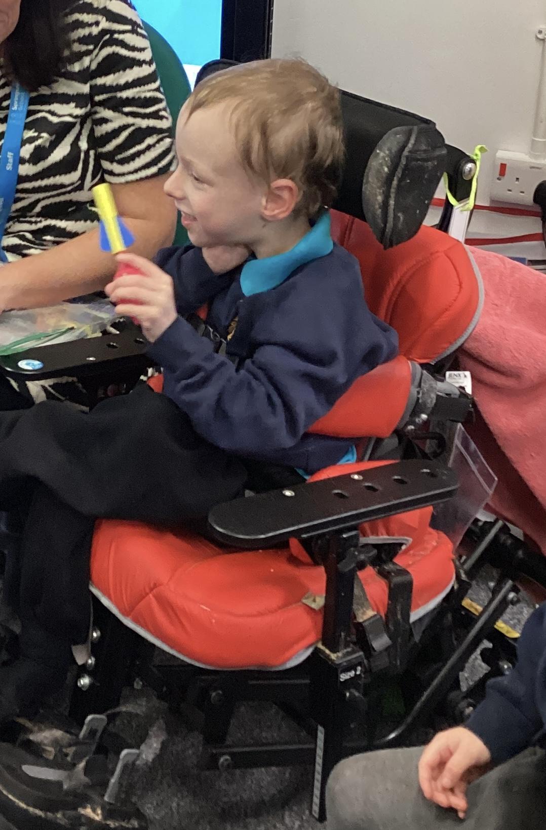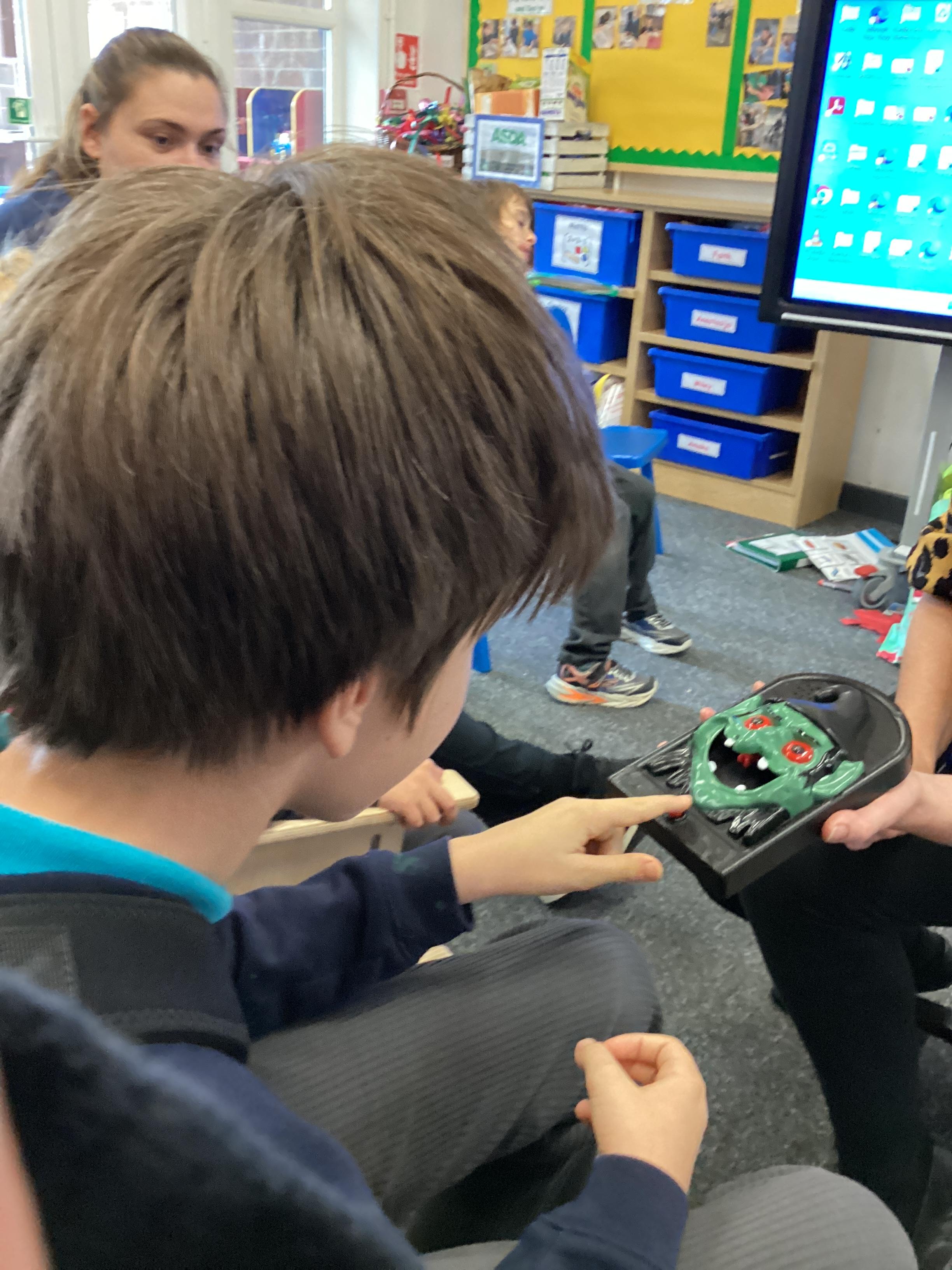 12.09.25 LIGHT AND SOUND ROOM The children explored a range of cause and effect toys and electronic toys. They pressed the different buttons and activated the different mechanisms.