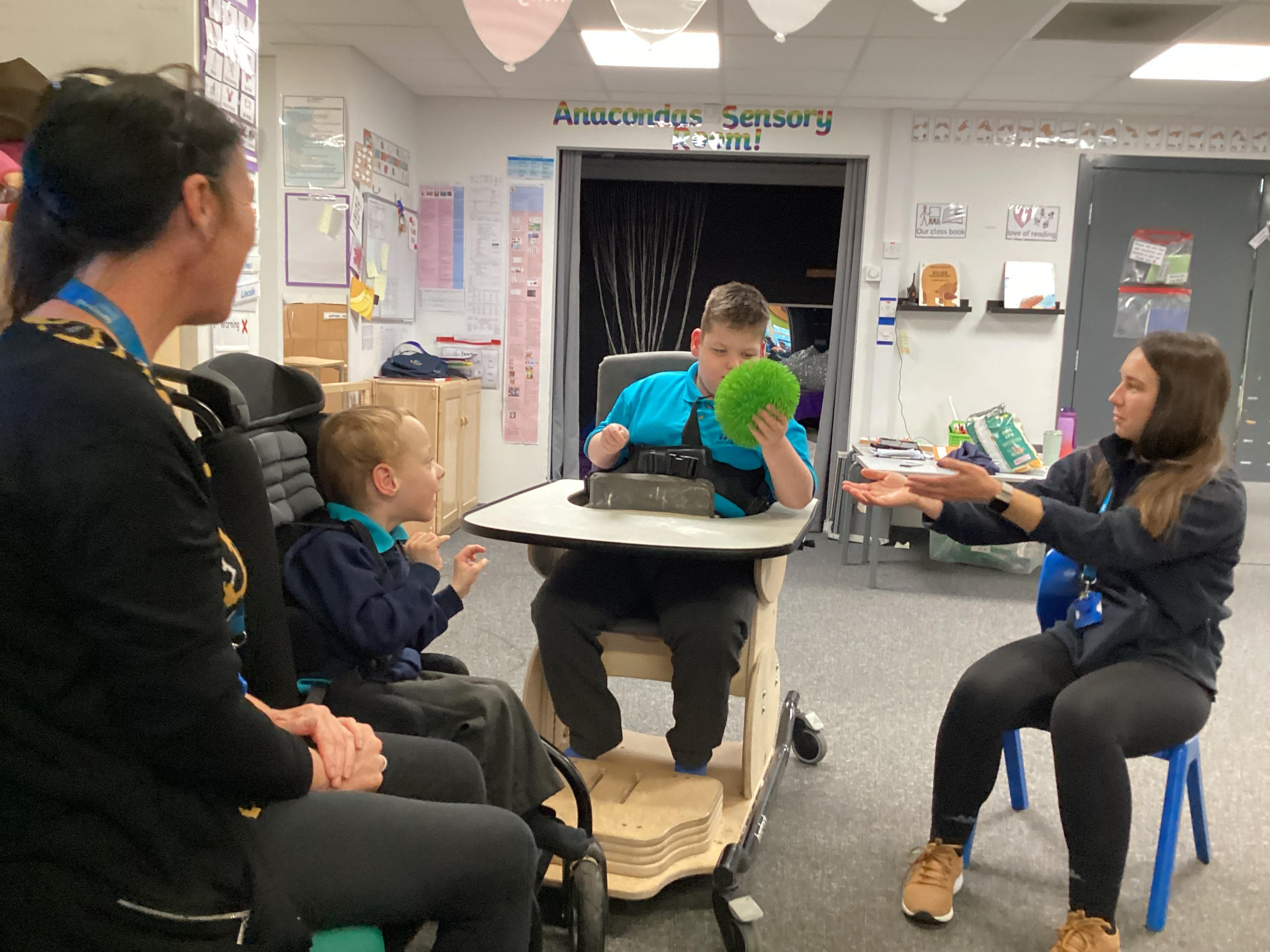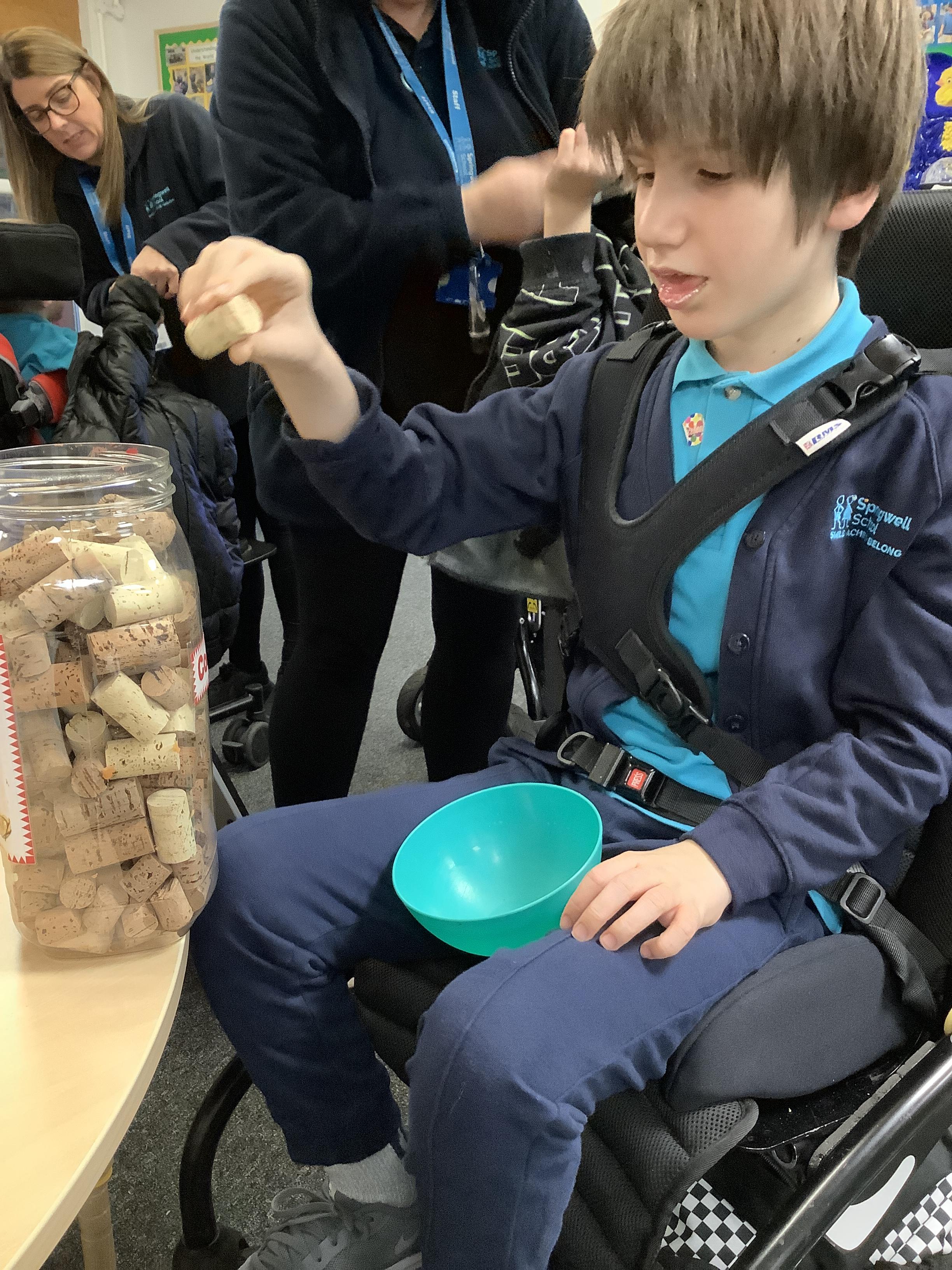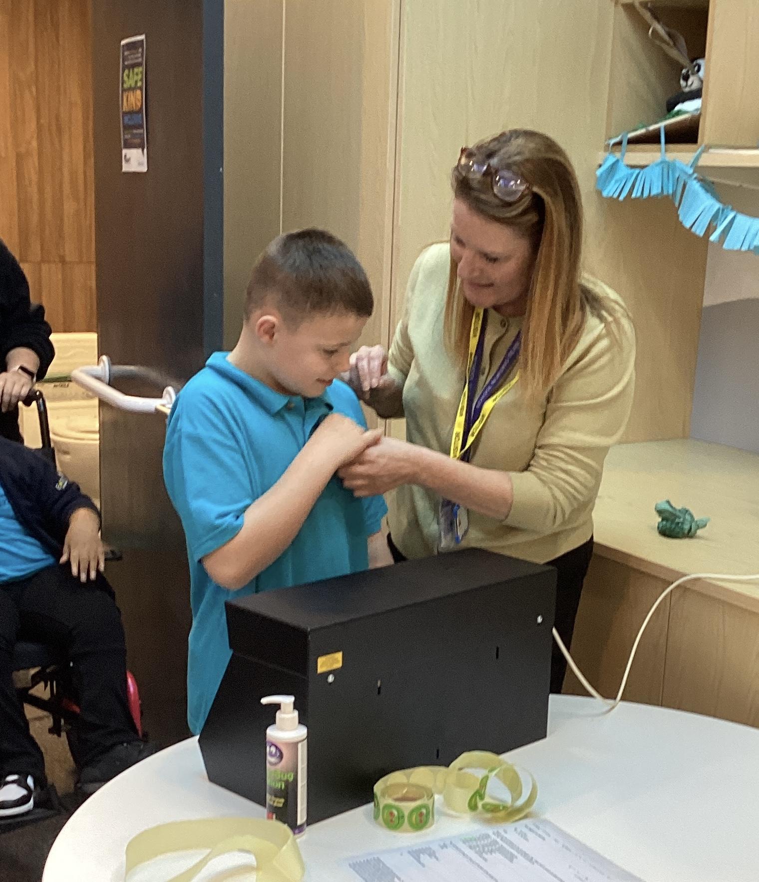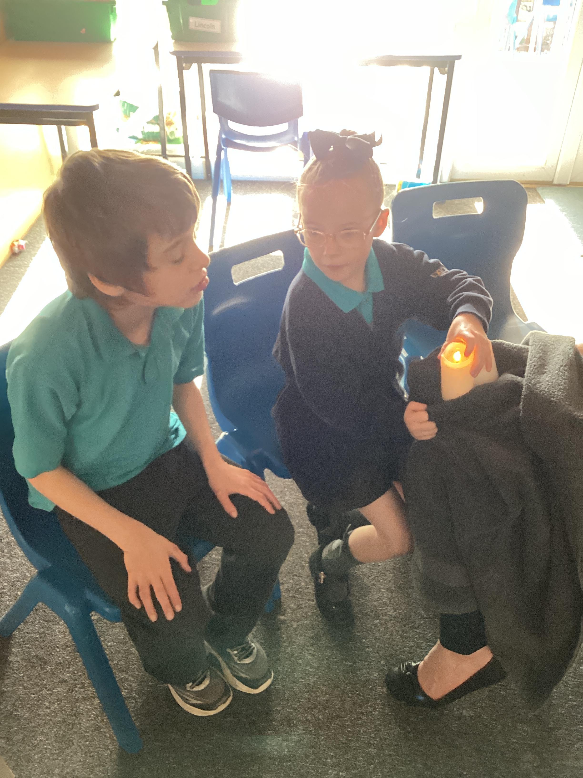 12.09.25 LIGHT AND SOUND ROOM The children explored a range of cause and effect toys and electronic toys. They pressed the different buttons and activated the different mechanisms.