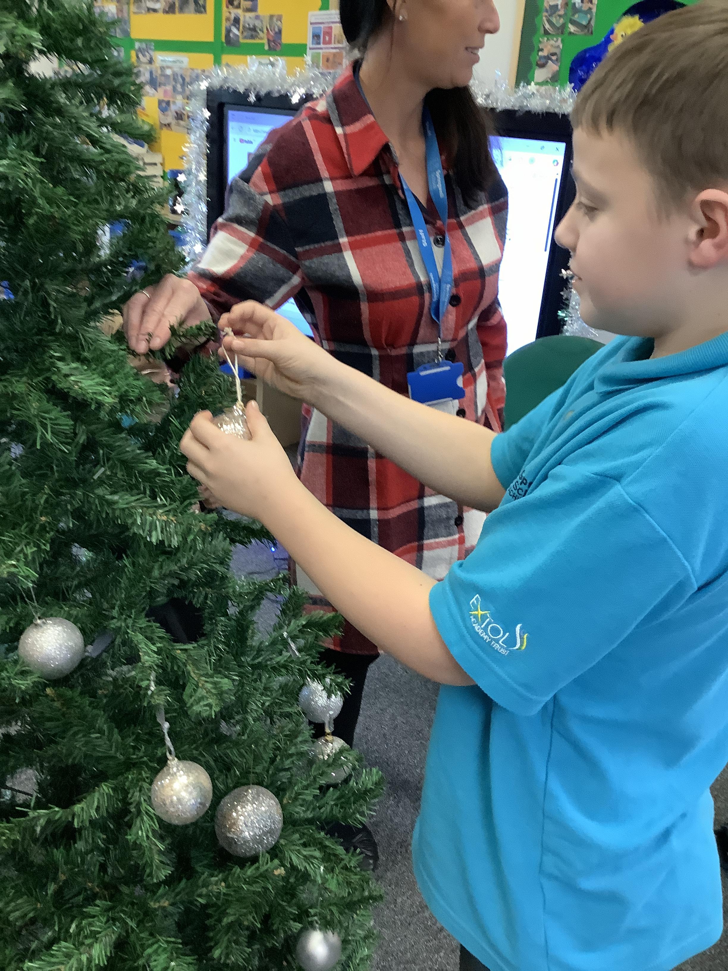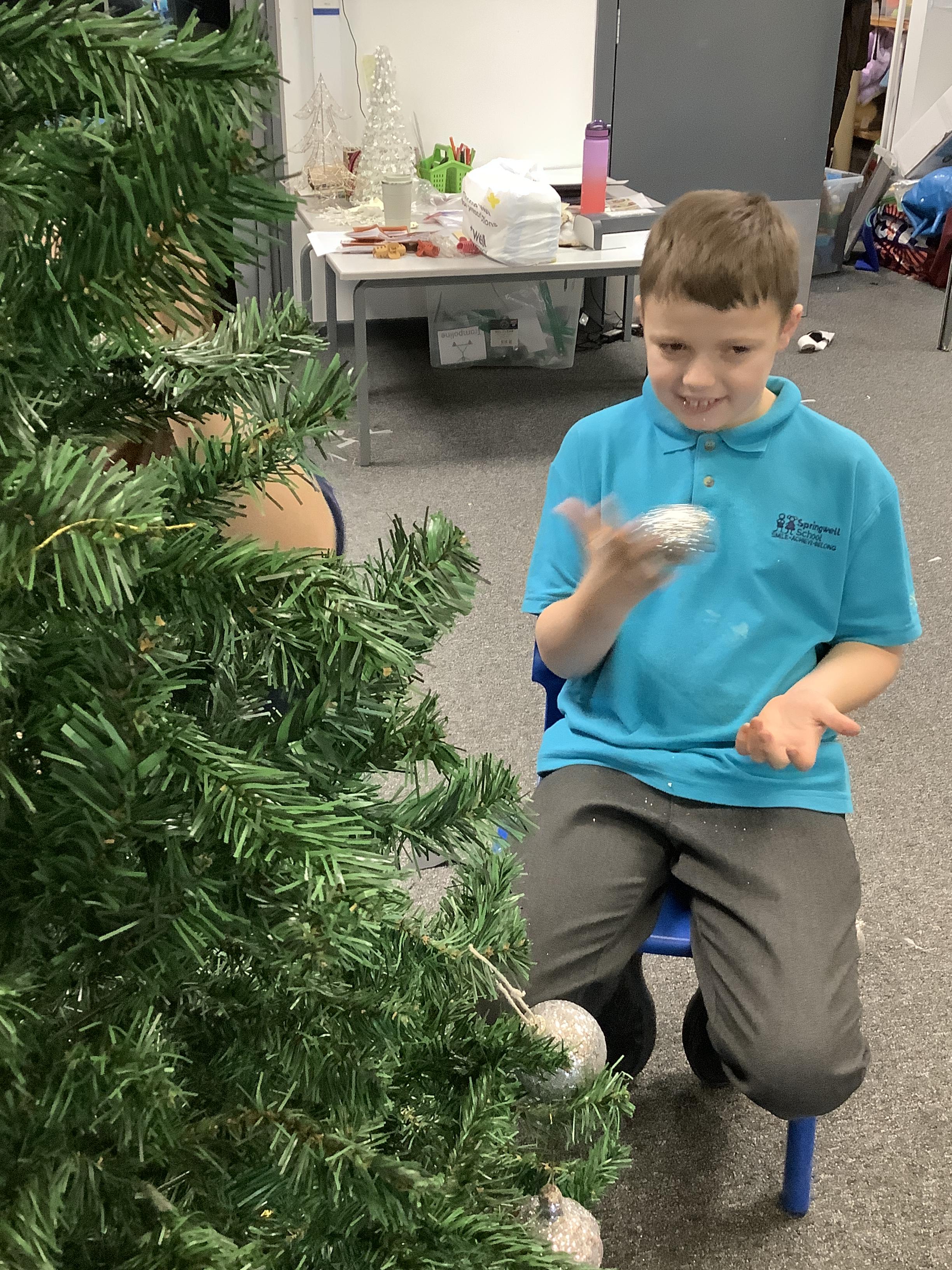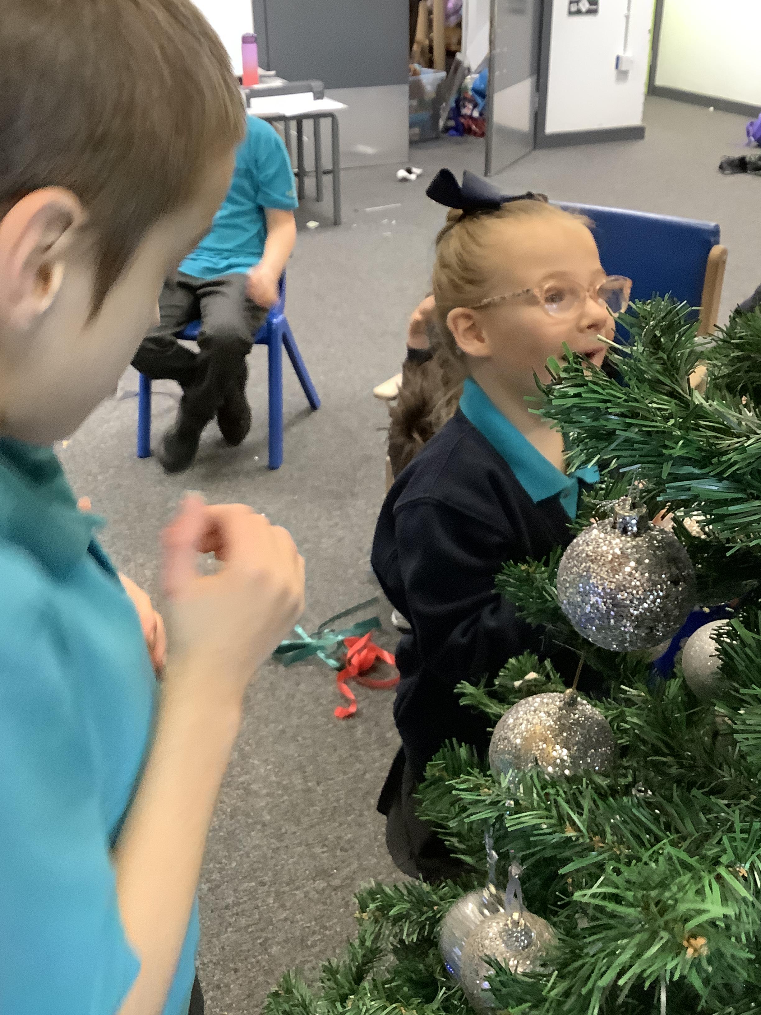 02.12.25 PHSE We have had a lovely afternoon, putting our classroom Christmas tree up. All the children took turns to open all the branches up and put the baubles on the tree. We all worked together to put on the lights too.