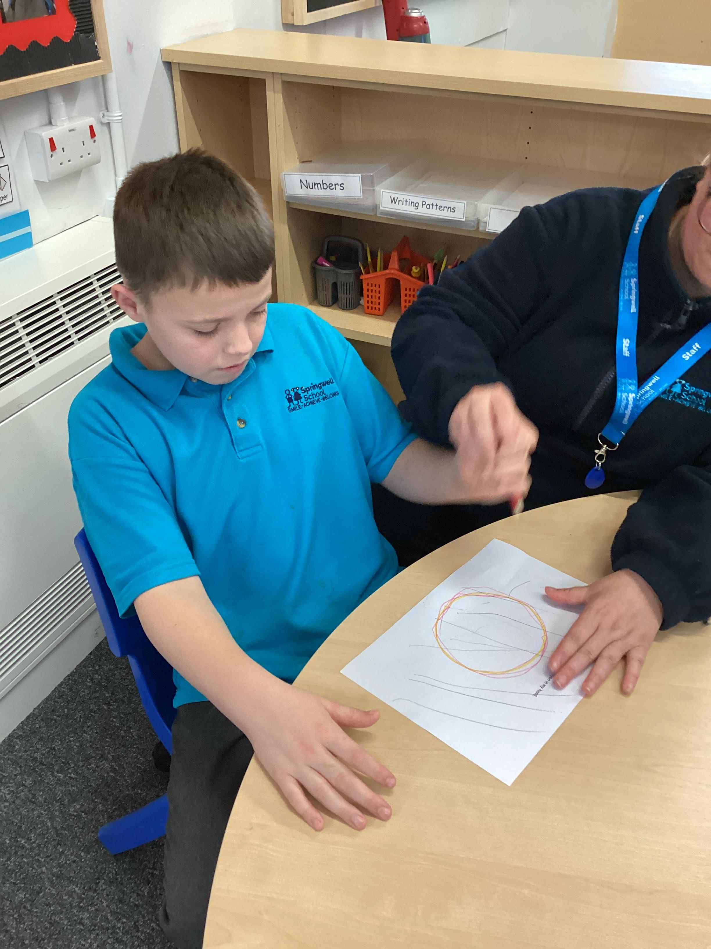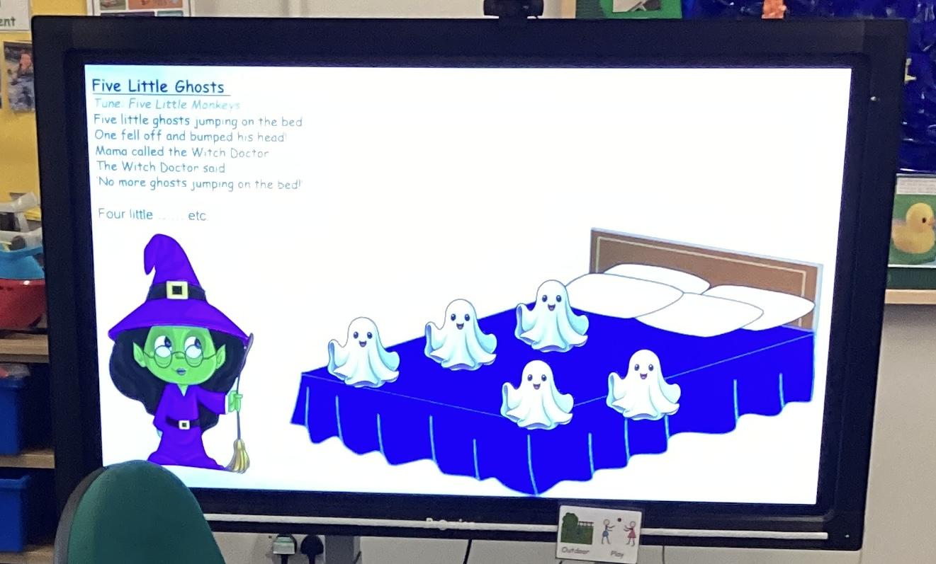 14.10.25 MATHS/FINE MOTOR SKILLS: We have been singing the song: 'Five Little Ghosts Jumping on the Bed'. The children have been counting the ghosts and preforming the Makaton signs whilst signing along with the teacher. The children have been practising their dot to dot number formation for number 5.