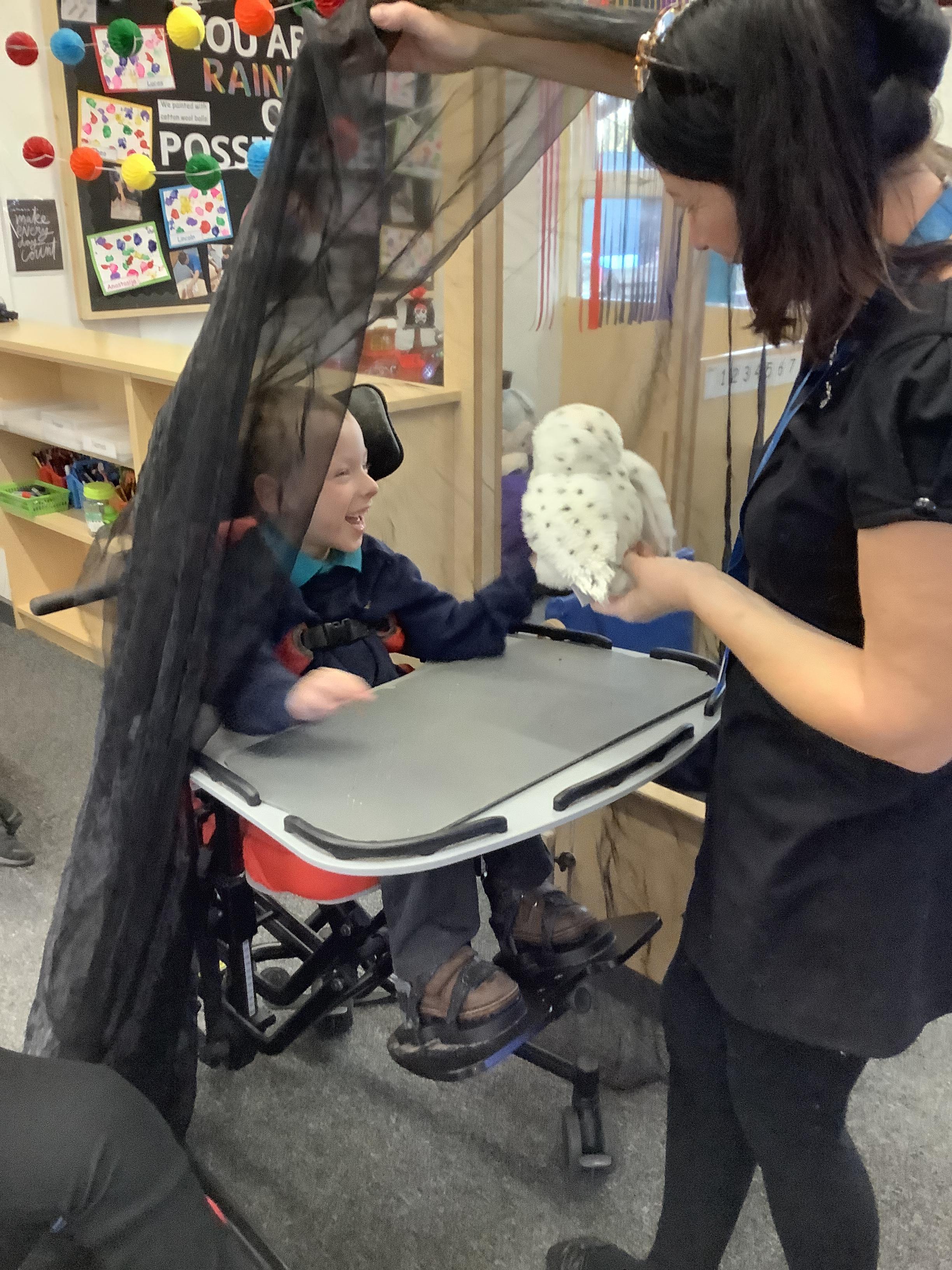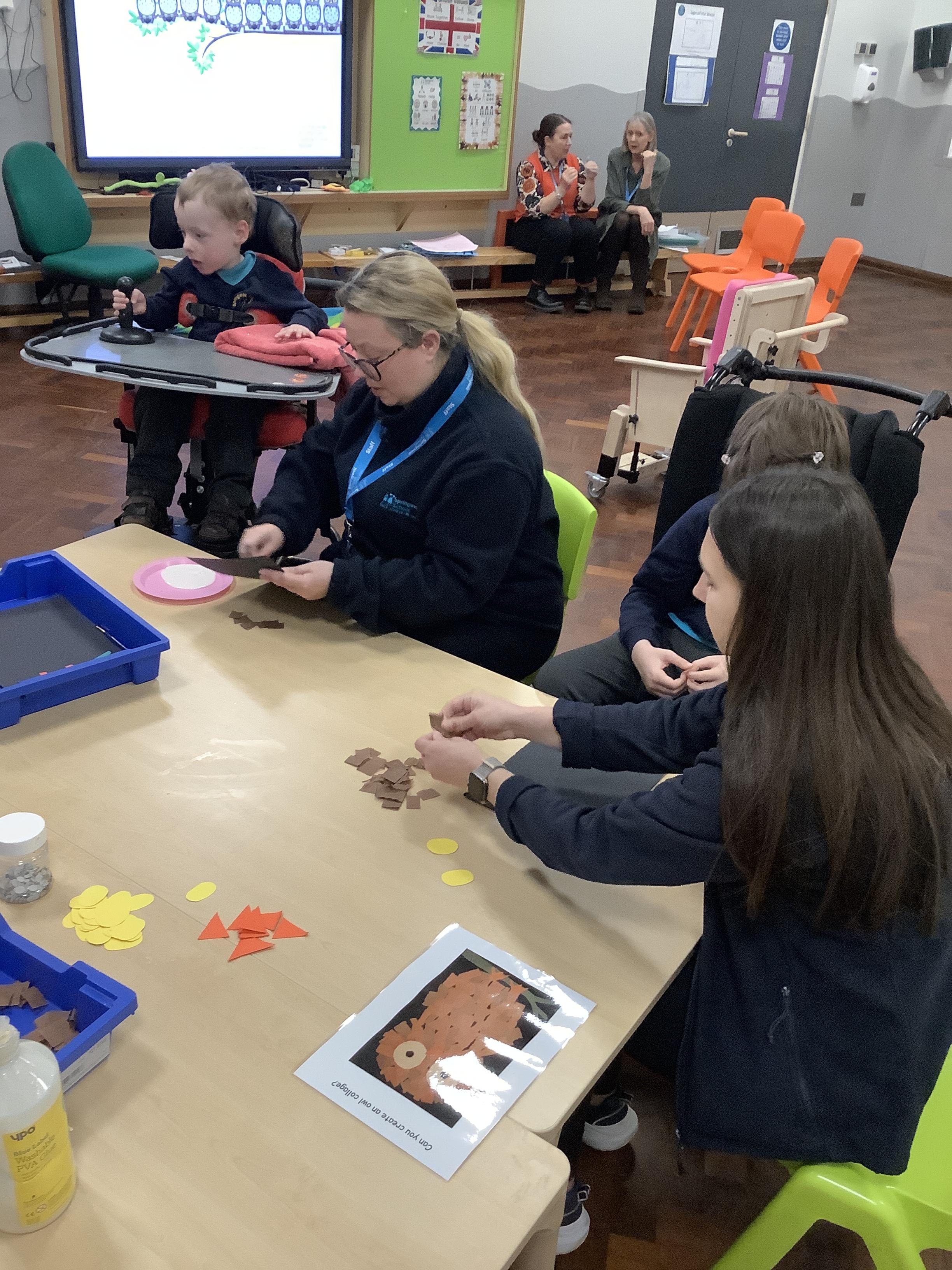 19.11.25 OUR CLASS ASSEMBLY Together we read the story: 'Wow Said the Owl' to our parents and grandparents in the hall. We sang songs together and preformed the Makaton actions. Then we enjoyed completing arrange of fun interesting activities together e.g. creating a tree using twigs and leaves for the owl to sit in, painting a rainbow and creating a collage of an owl.