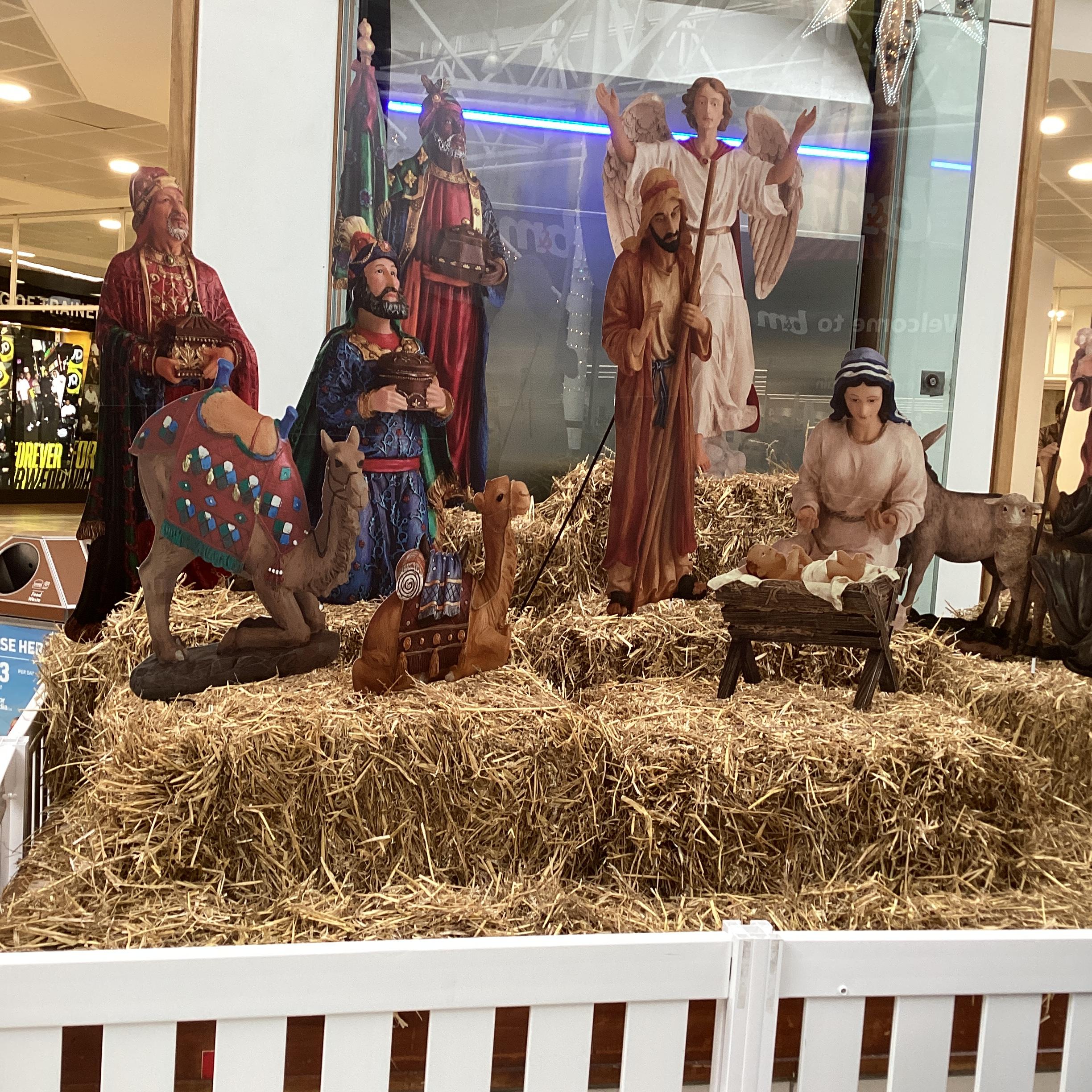 14.11.25 HISTORY: We visited the cenotaph in the town centre to look at all the poppy wreathes and messages from Remembrance Day. Then we looked at the Christmas tree and the nativity display in the shopping centre.