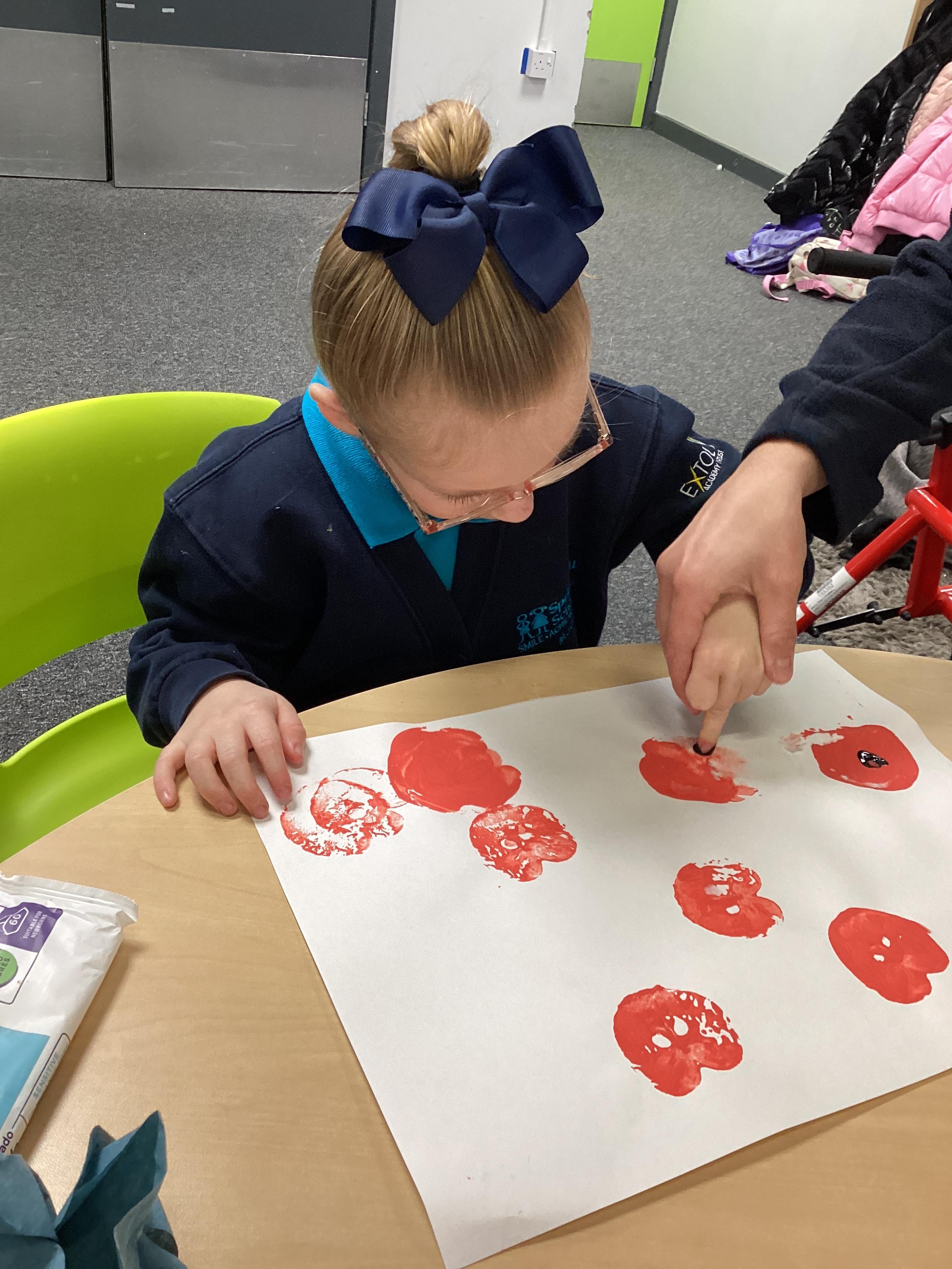 11.11.25 HISTORY: REMEMBRANCE DAY Over a hundred years ago, millions of soldiers had to go and fight for their country to make sure that their country and their families were safe. We looked at a variety of war time photographs, we listened to war time sounds e.g. tanks, soldiers marching, sirens etc Our teacher, explained that people wear red poppies to remember and say thank you to those who helped keep us safe. The children enjoyed creating poppy prints using paint and apple halves.
