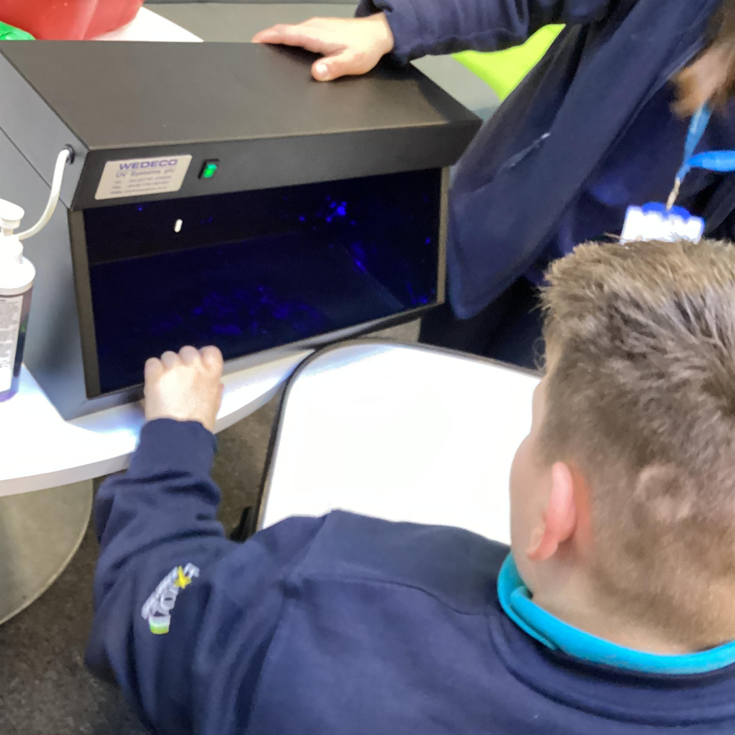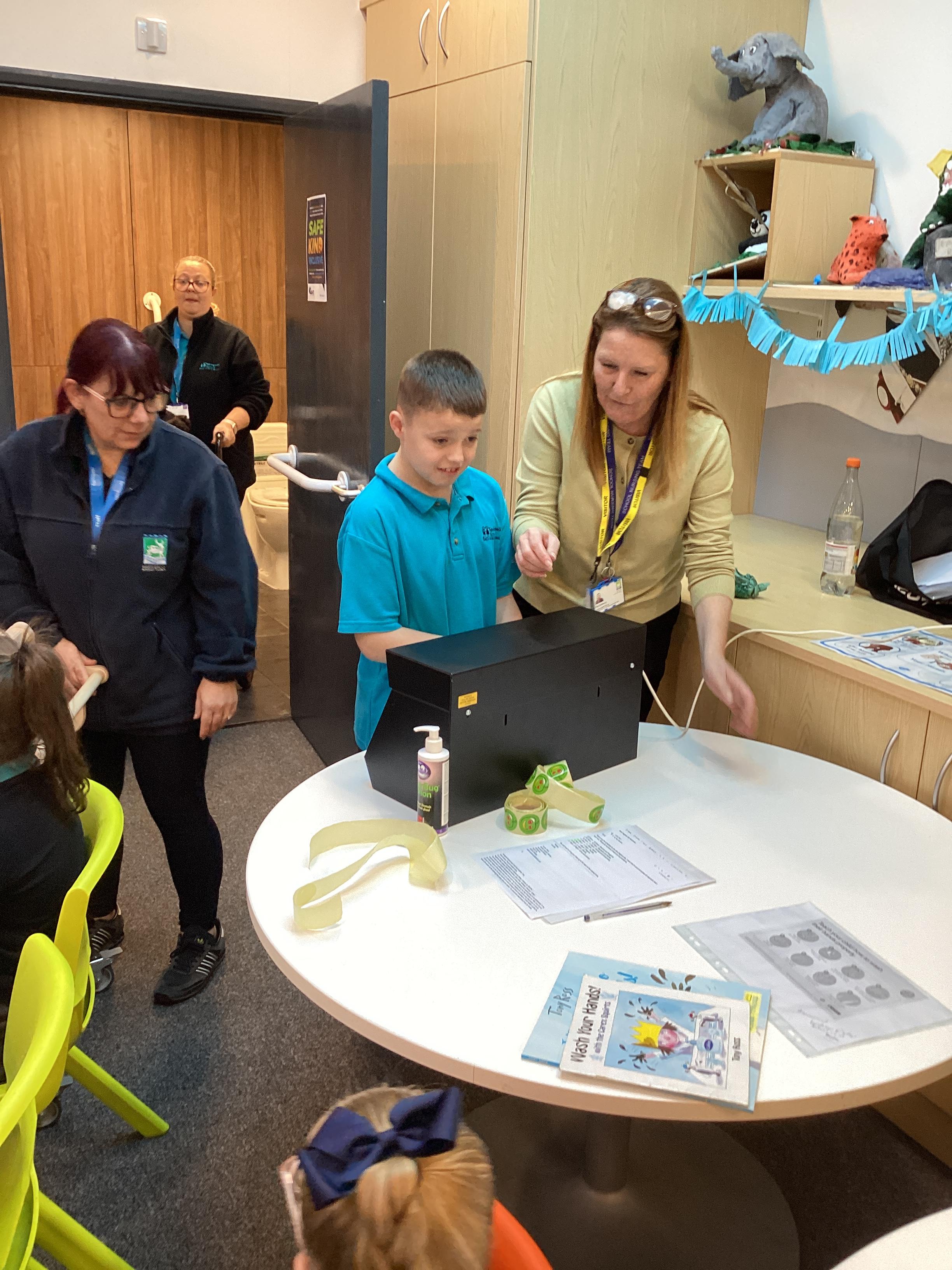 04.11.25 PHSRE: HAND WASHING The school nursing team came into school today to provide hand hygiene support. They put glitter bug fluorescent potion on the children's hands, and placed there hands under a UV machine - it showed all the germs up in a purple colour. The children then wash the germs off their hands with soap and water.