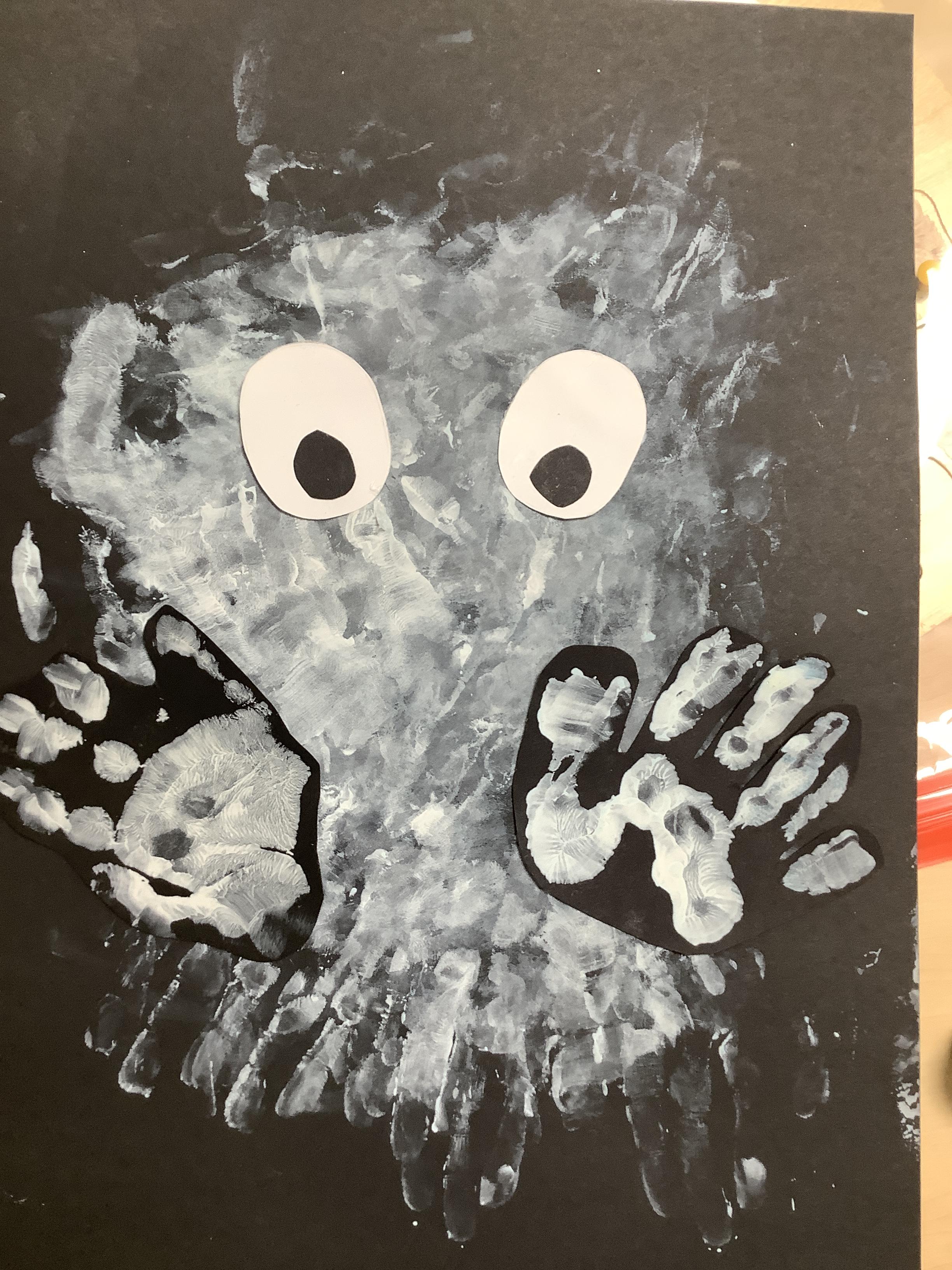 16.10.25 ART: We have been creating our own ghosts using our hands and white paint.