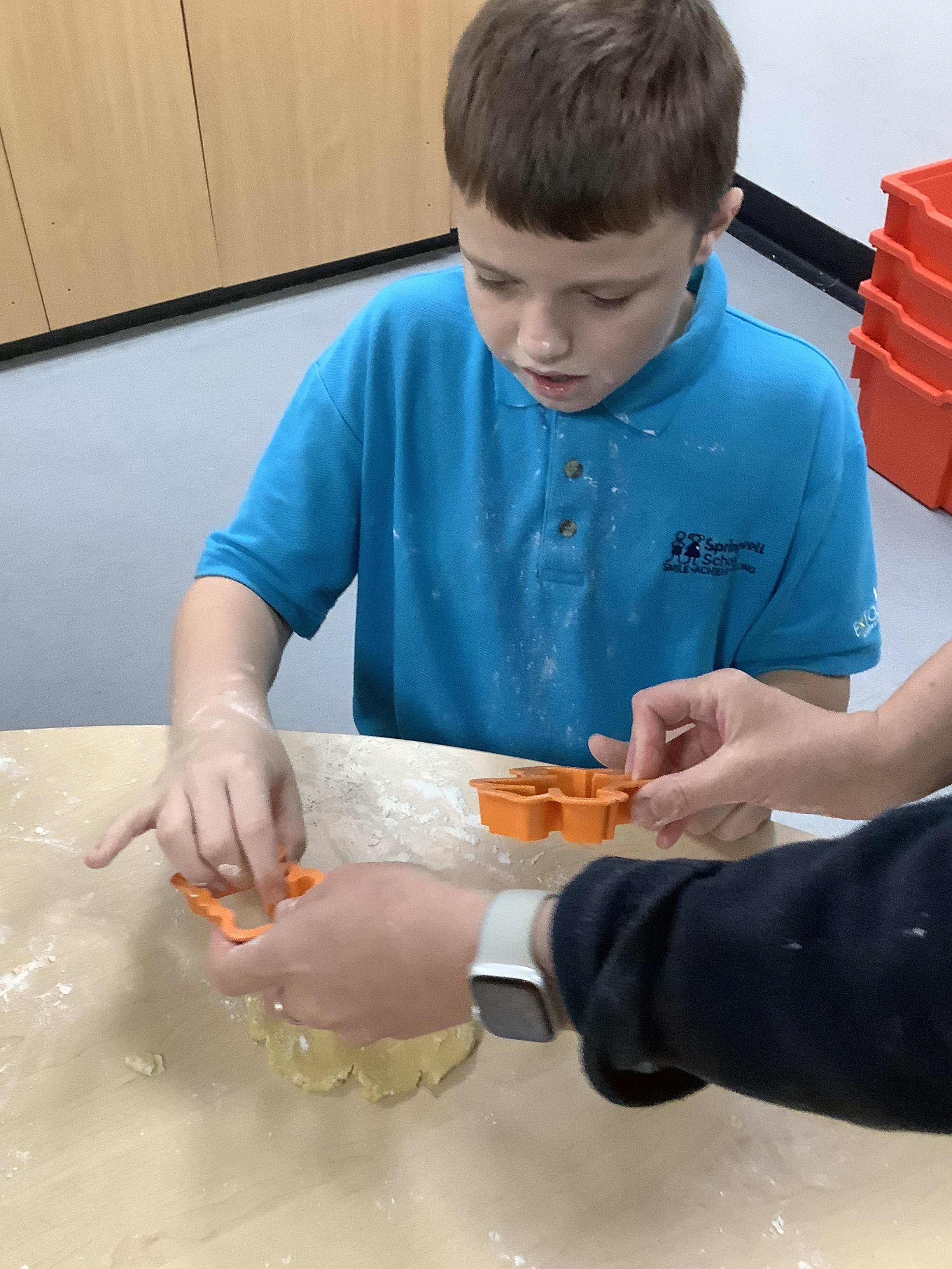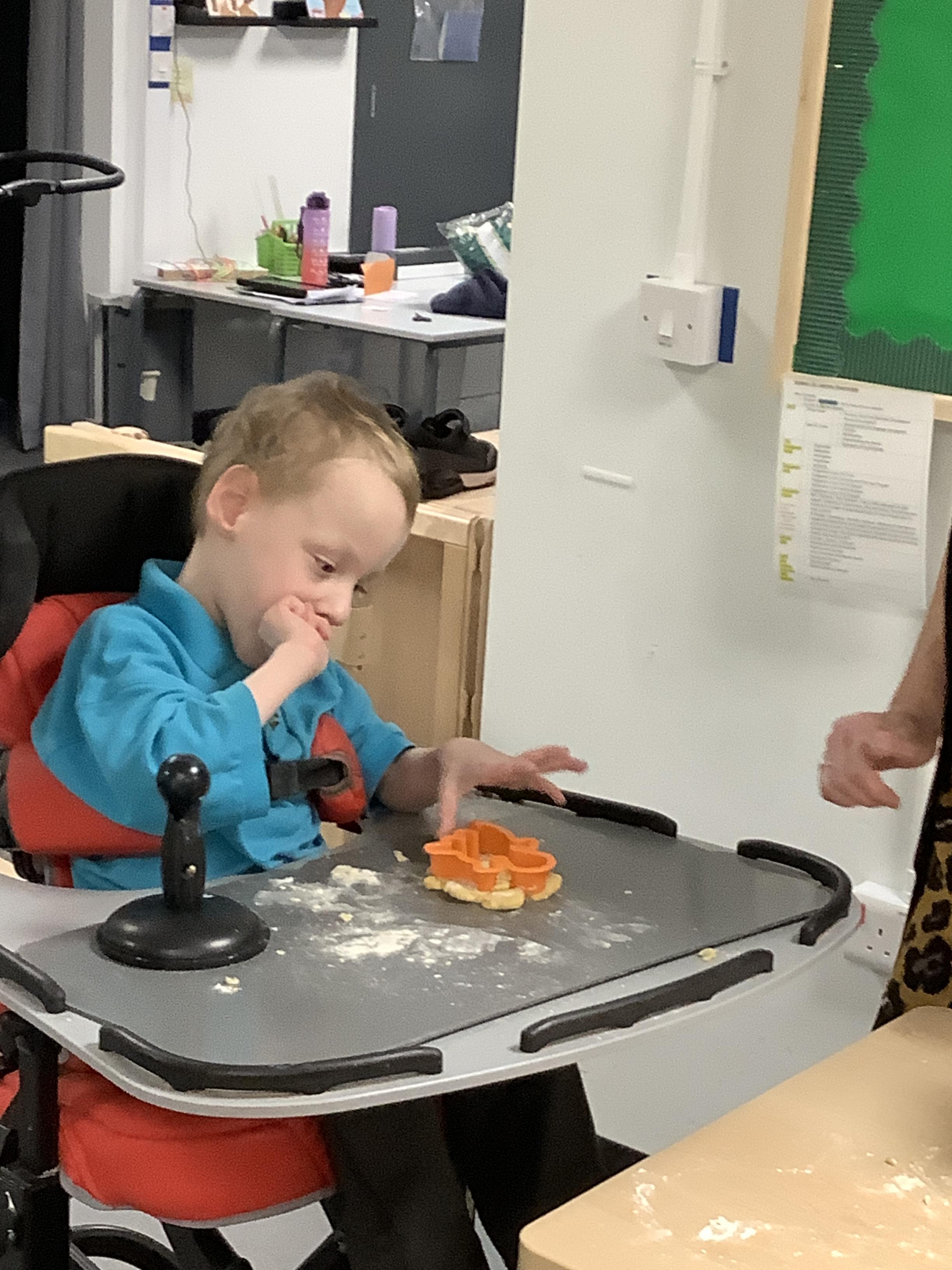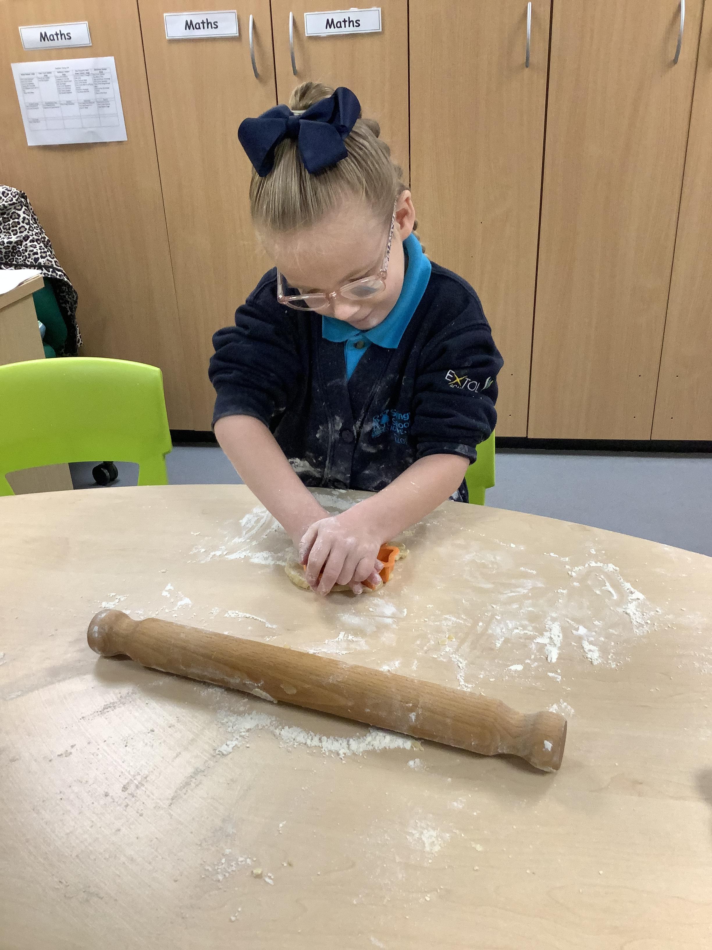 15.10.25 COOKERY: We have been making Halloween shortbread biscuits. We weighed out the ingredients using the digital scales and together we made the biscuit dough. The children rolled out the dough using a rolling pin and choose their preferred Halloween cutter. The children could choose the witch, ghost or bat cutter.