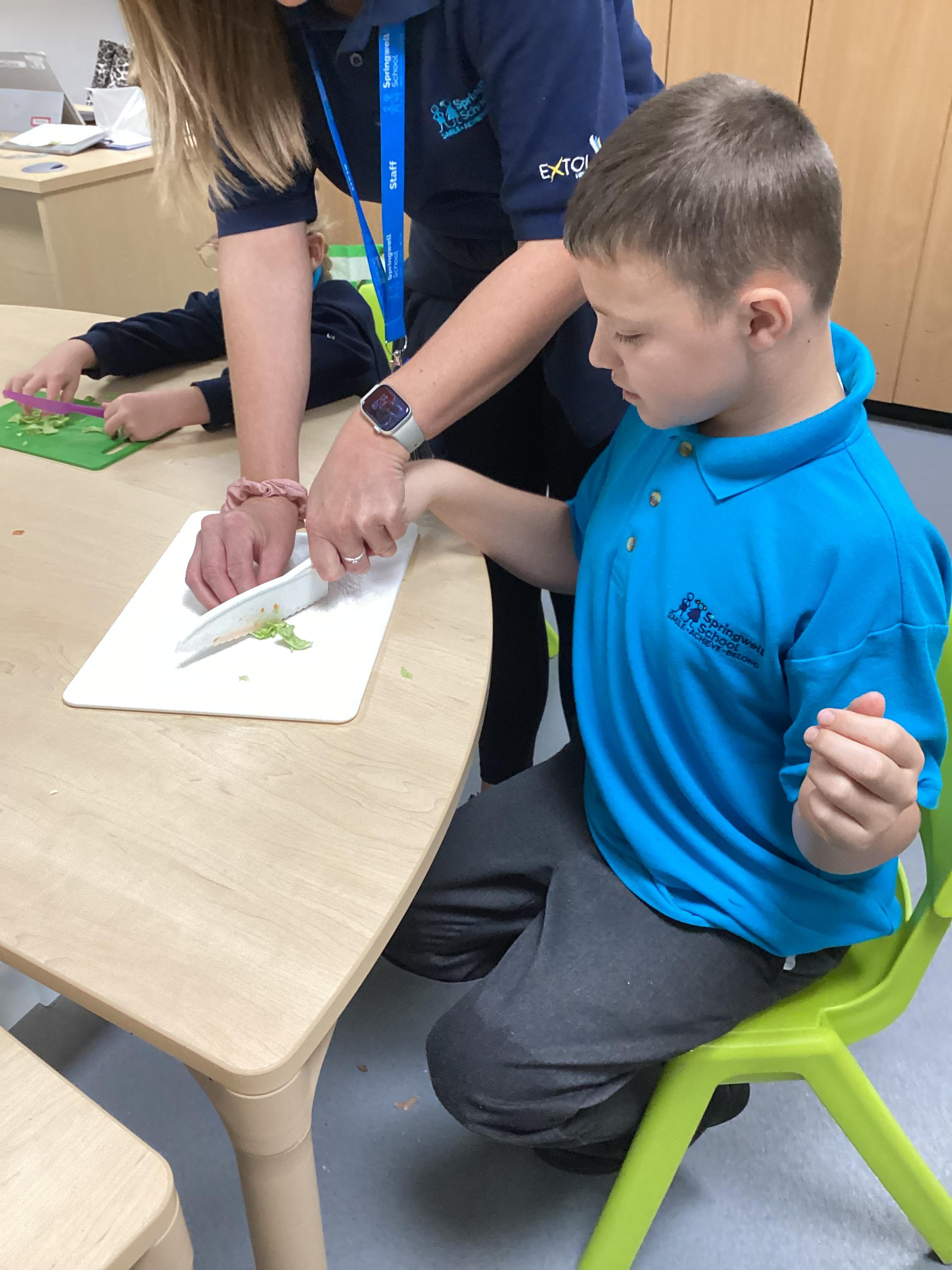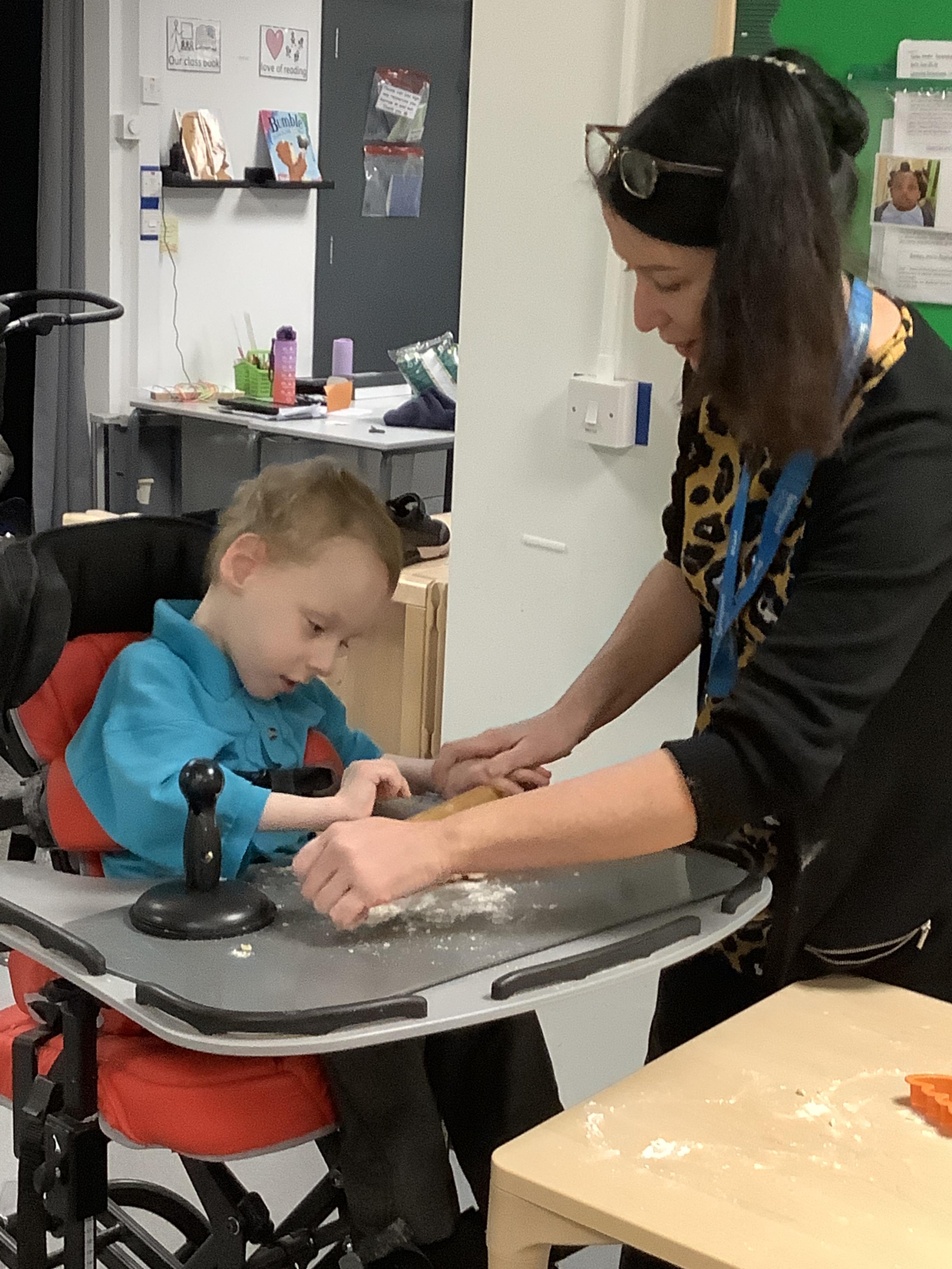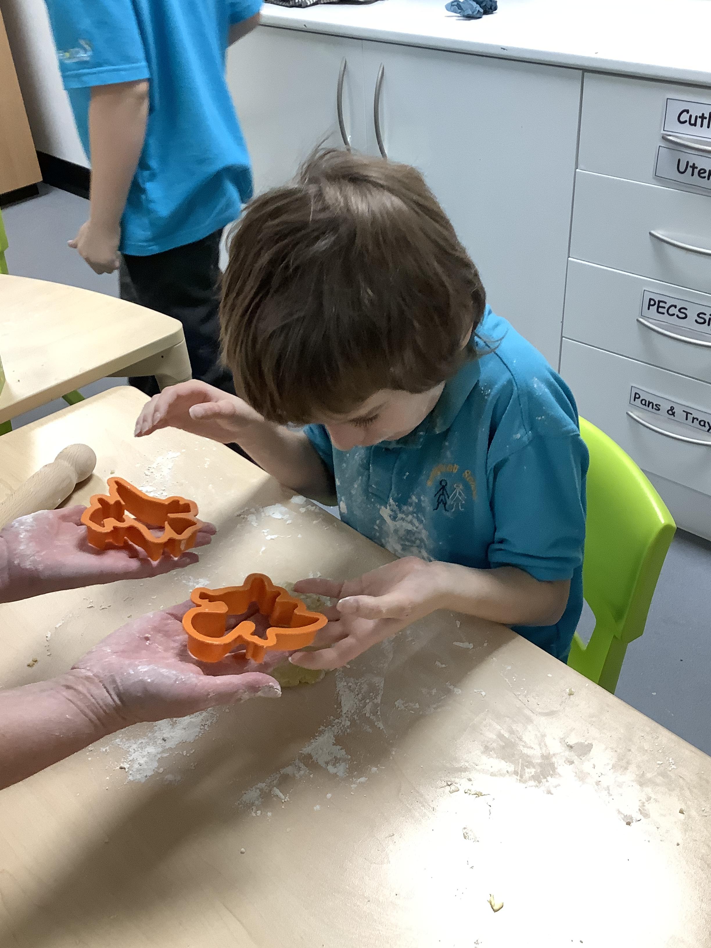 15.10.25 COOKERY: We have been making Halloween shortbread biscuits. We weighed out the ingredients using the digital scales and together we made the biscuit dough. The children rolled out the dough using a rolling pin and choose their preferred Halloween cutter. The children could choose the witch, ghost or bat cutter.