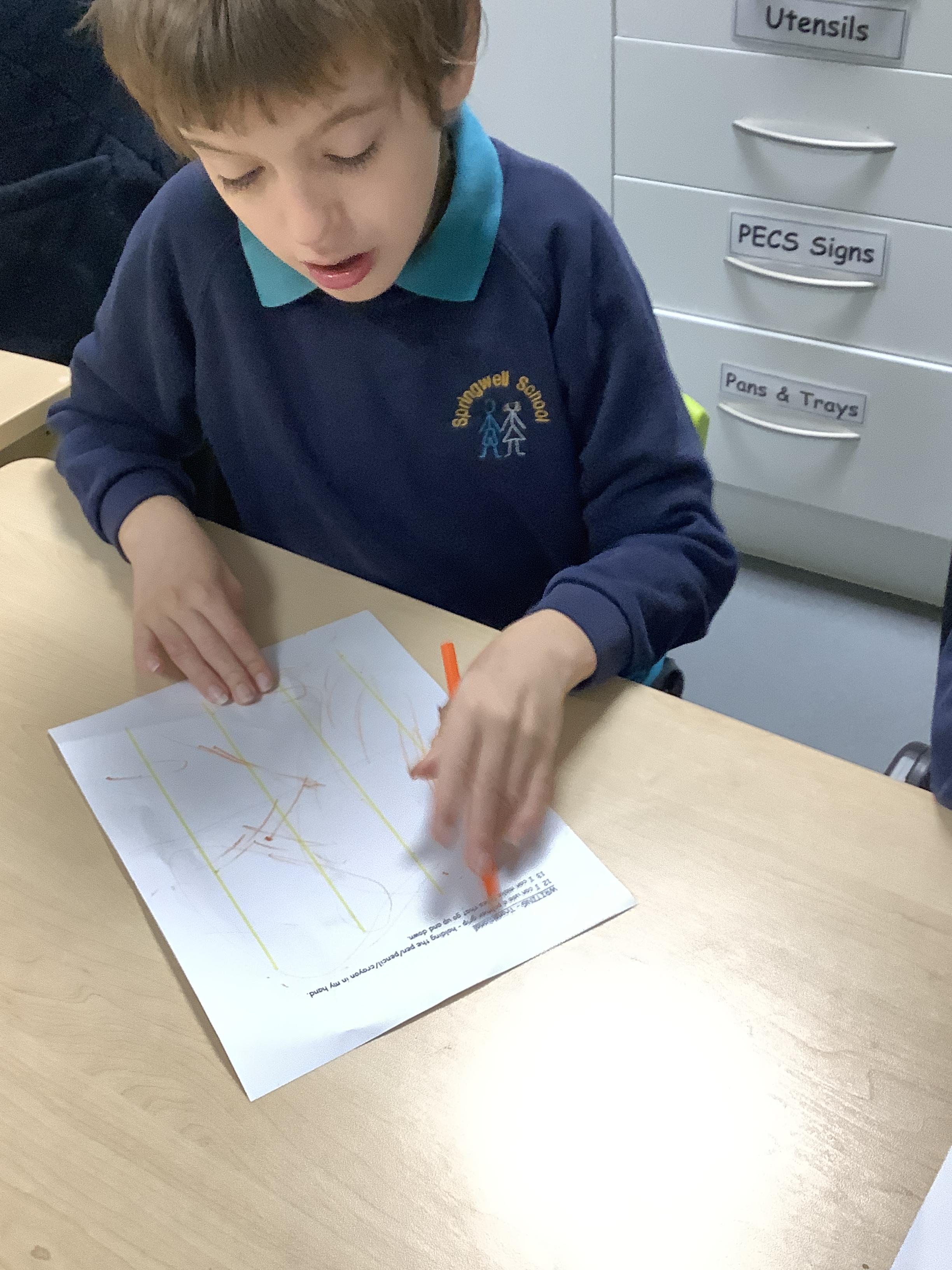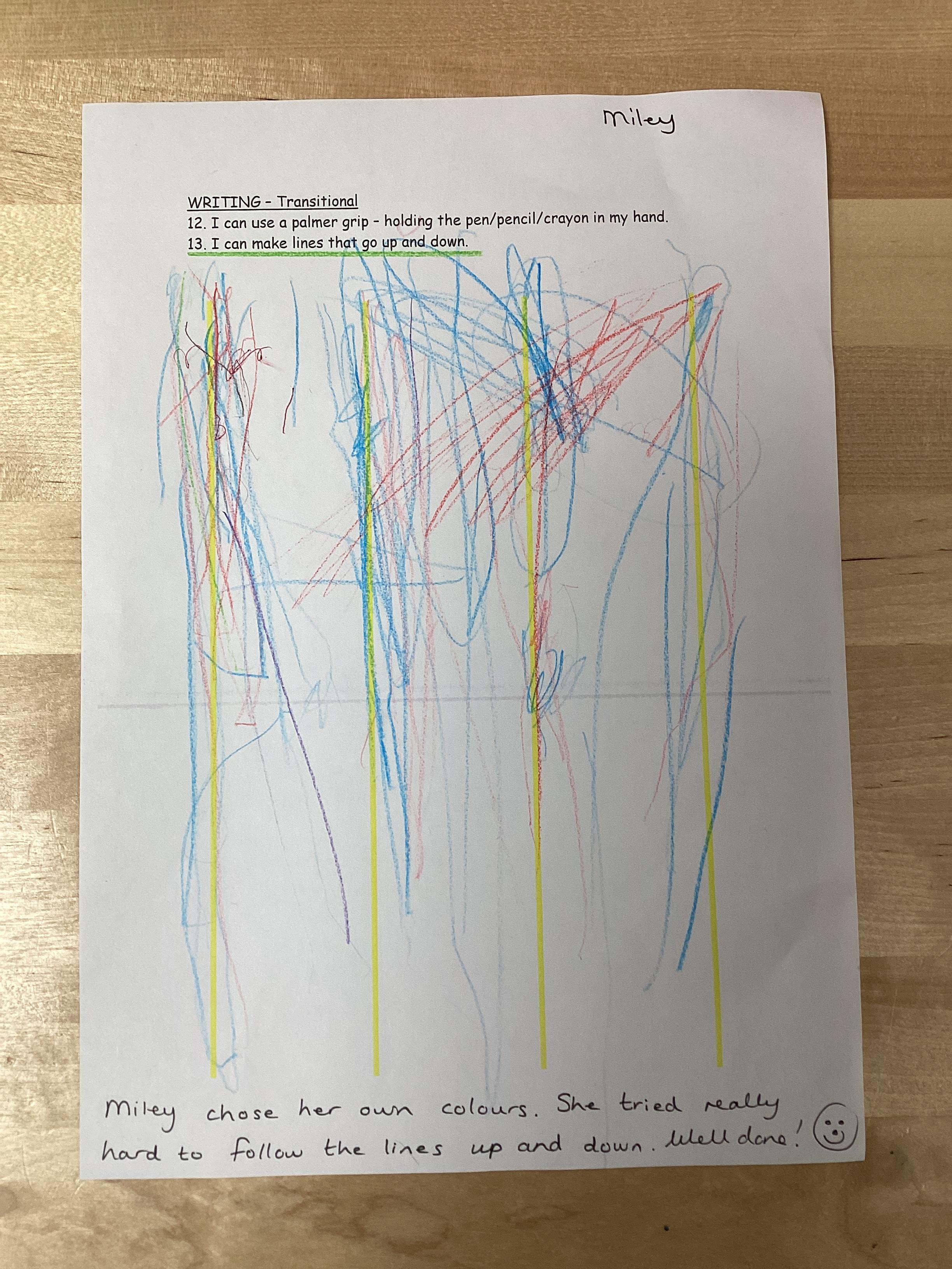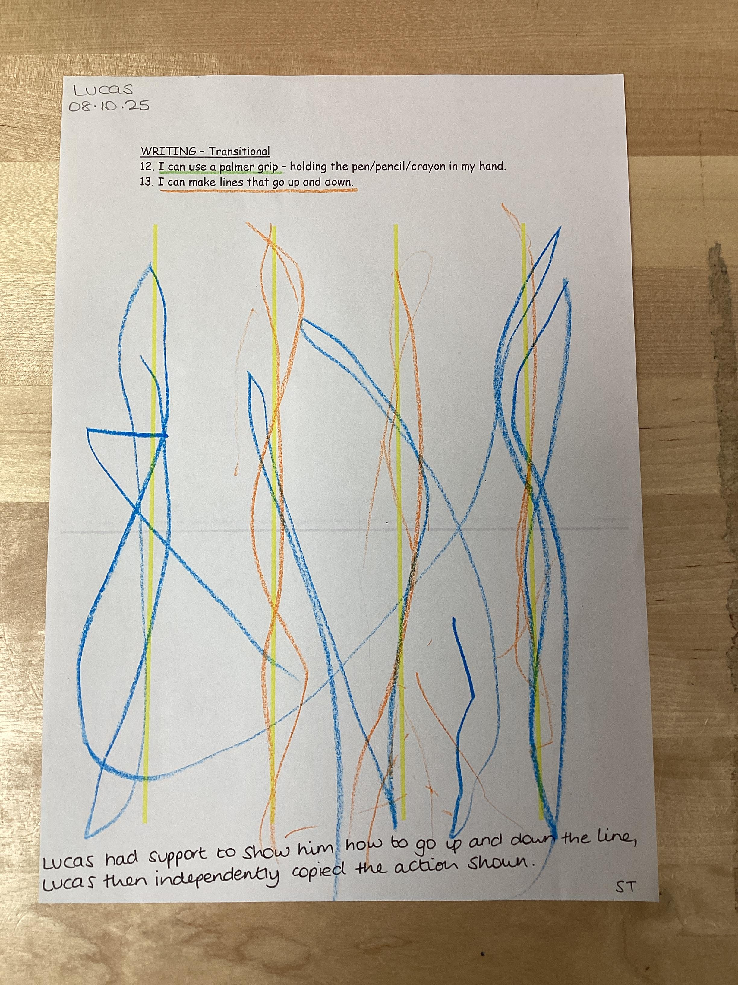 08.10.25 WRITING: The children have been developing their pencil control skills by drawing lines that go up and down.
