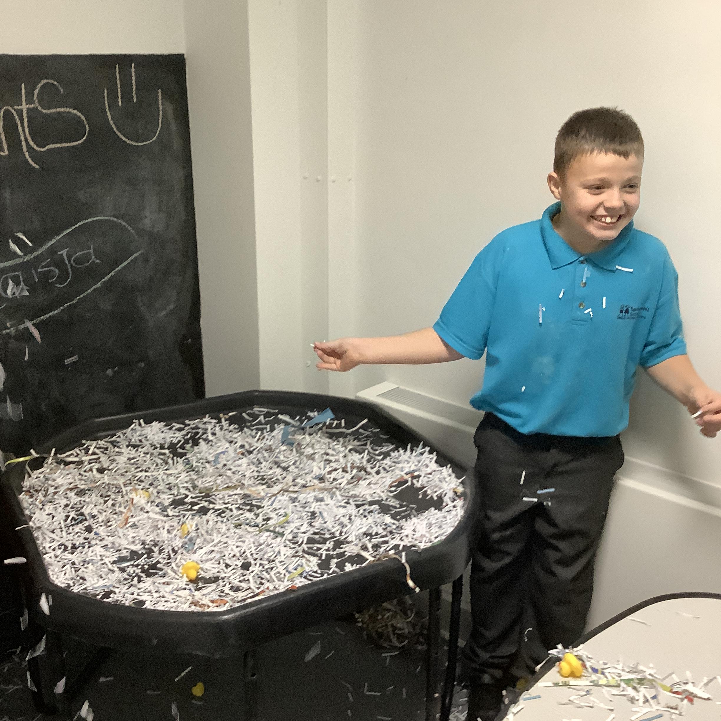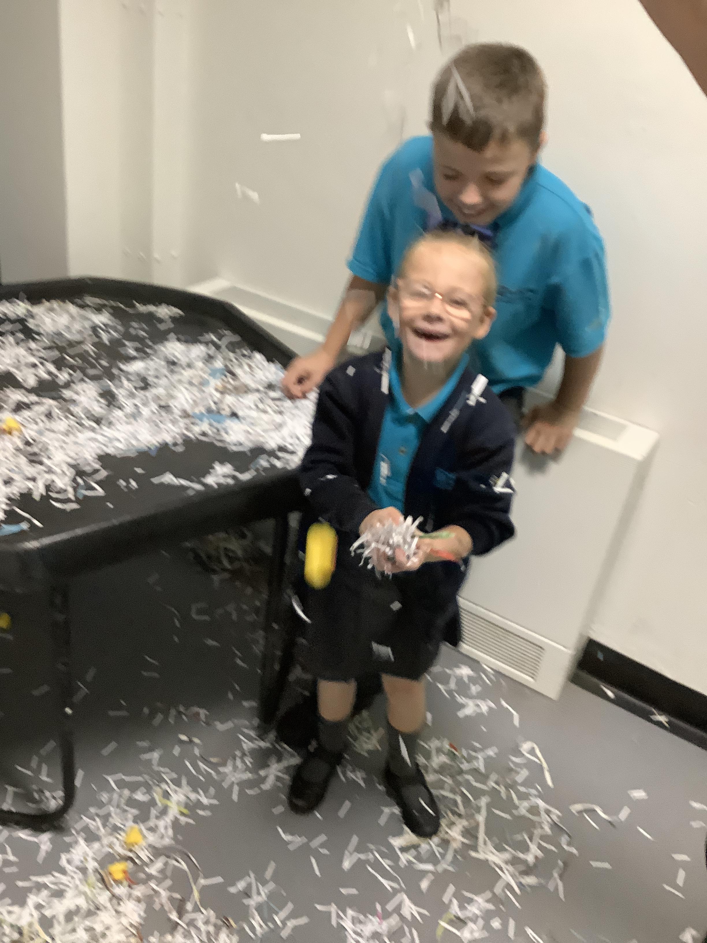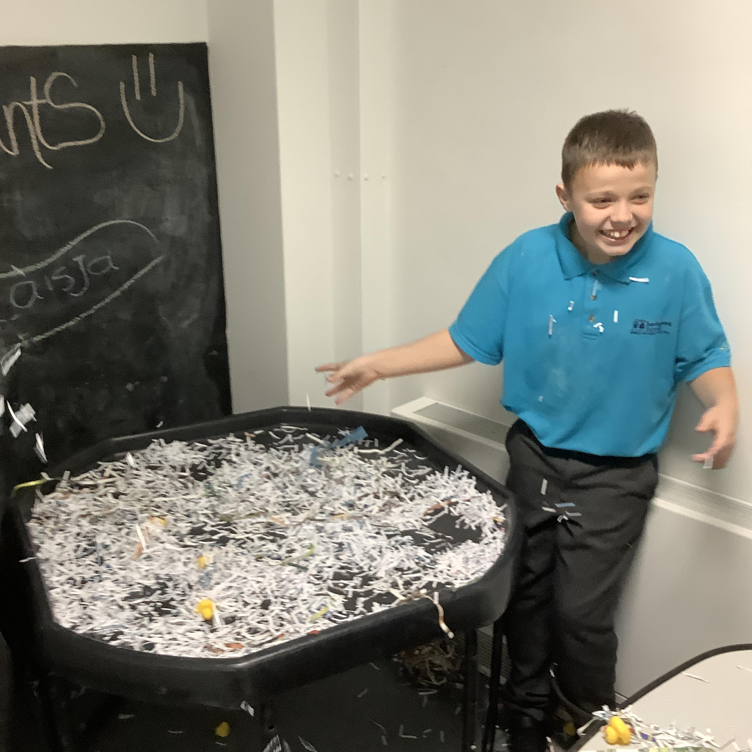 01.10.25 SENSORY PLAY/MATHS The children had fun exploring the shredded paper, looking for the five little ducks! We had lots of giggles"