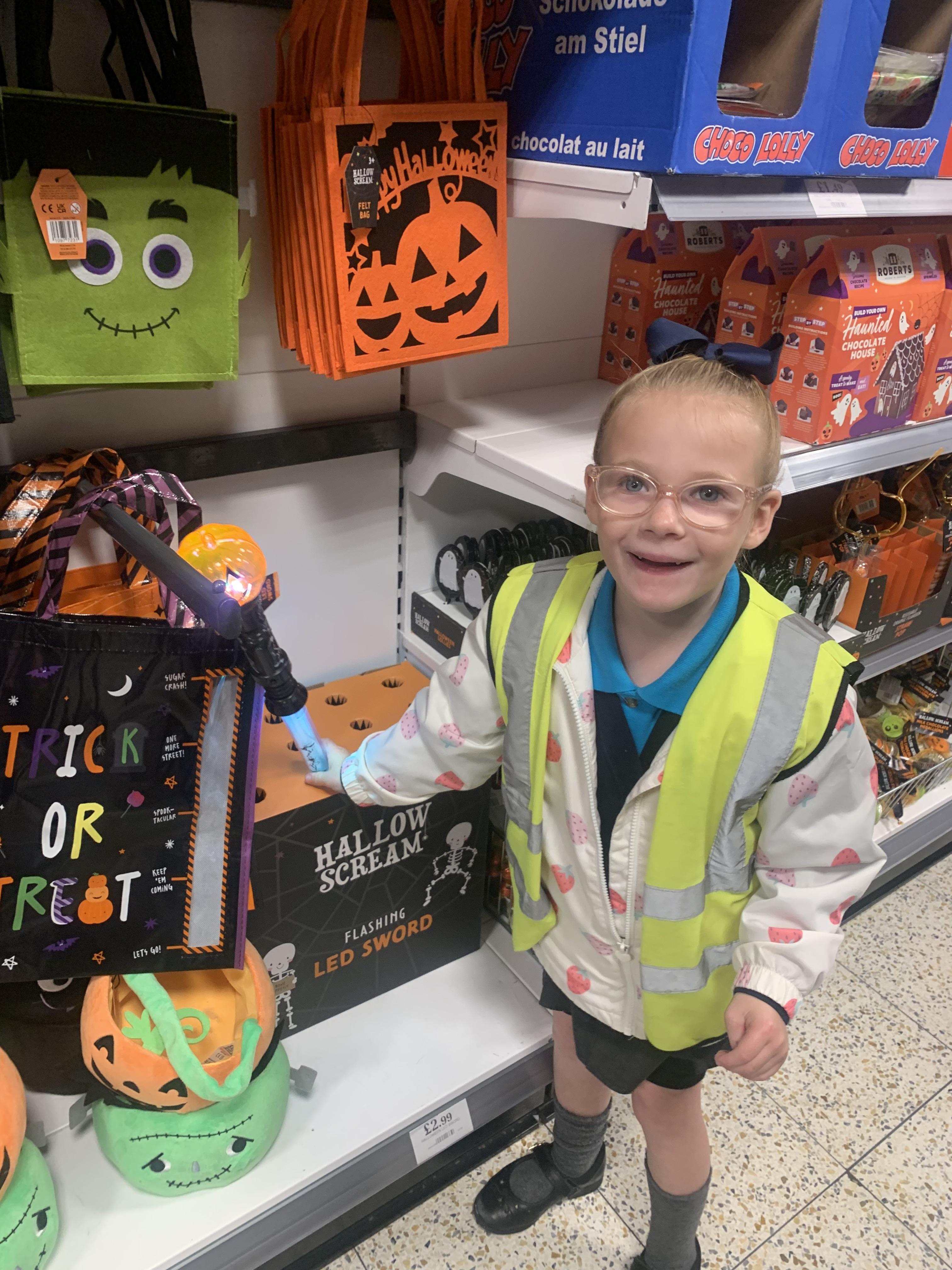 26.09.25 EDUCATIONAL VISIT: GEOGRAPHY - EXPLORING PLACES OUR LOCAL COMMUNITY & PHSE We looked in a couple of shops at Tees Bay Retail Park. We explored the scary objects and costumes in the Halloween aisles. We all sat in 'The Range Cafe' and had a lovely mid-morning snack together.'