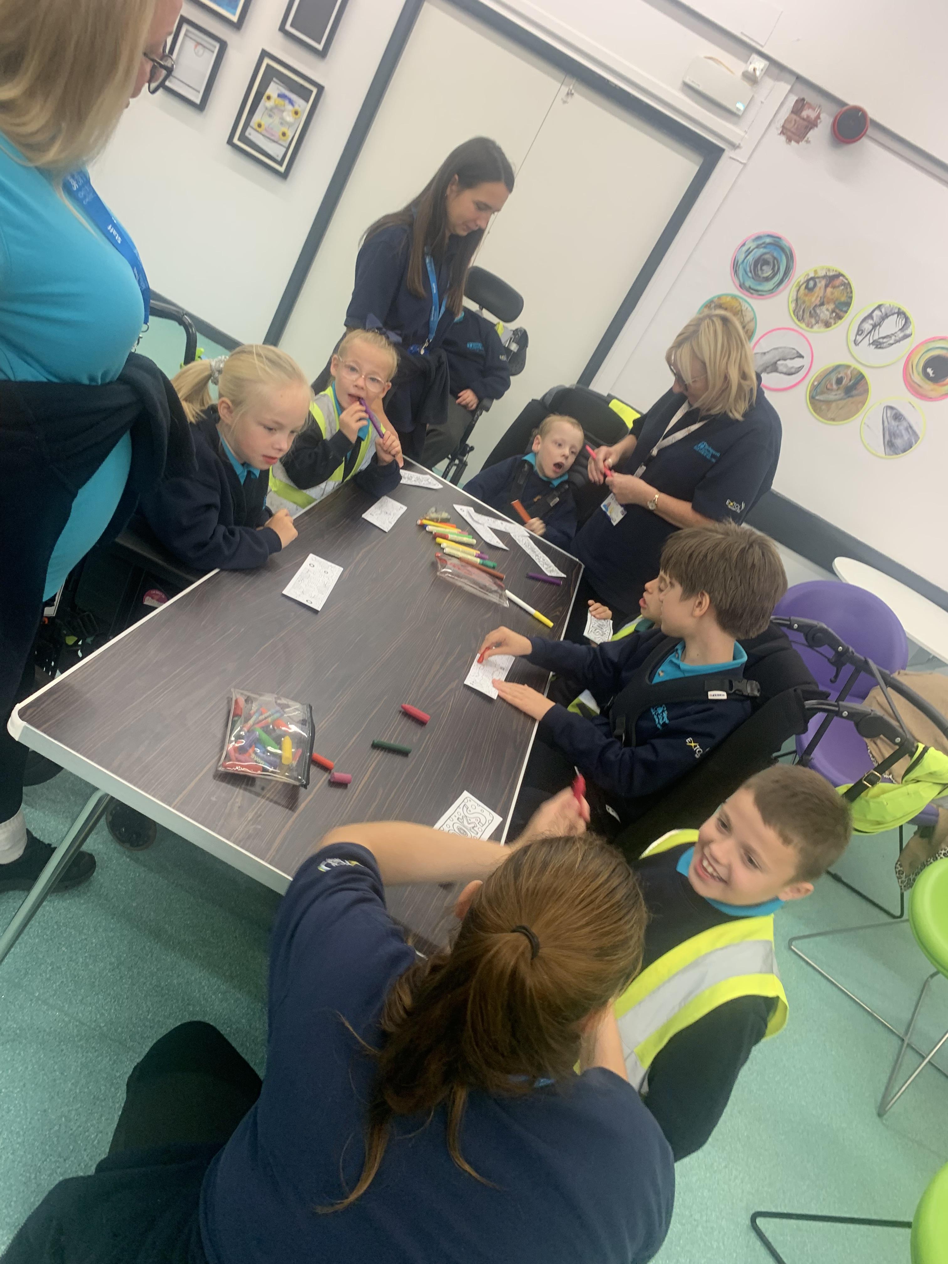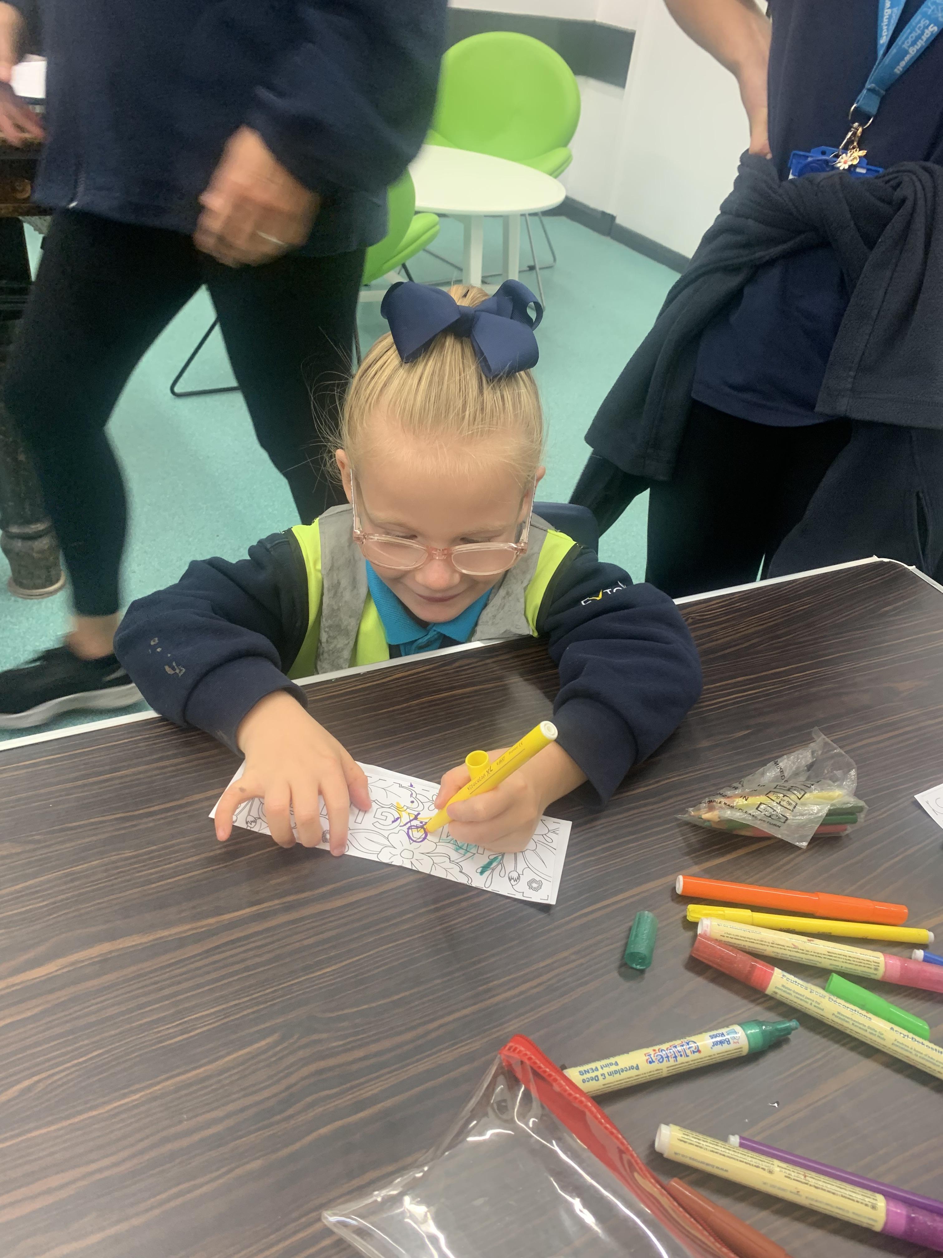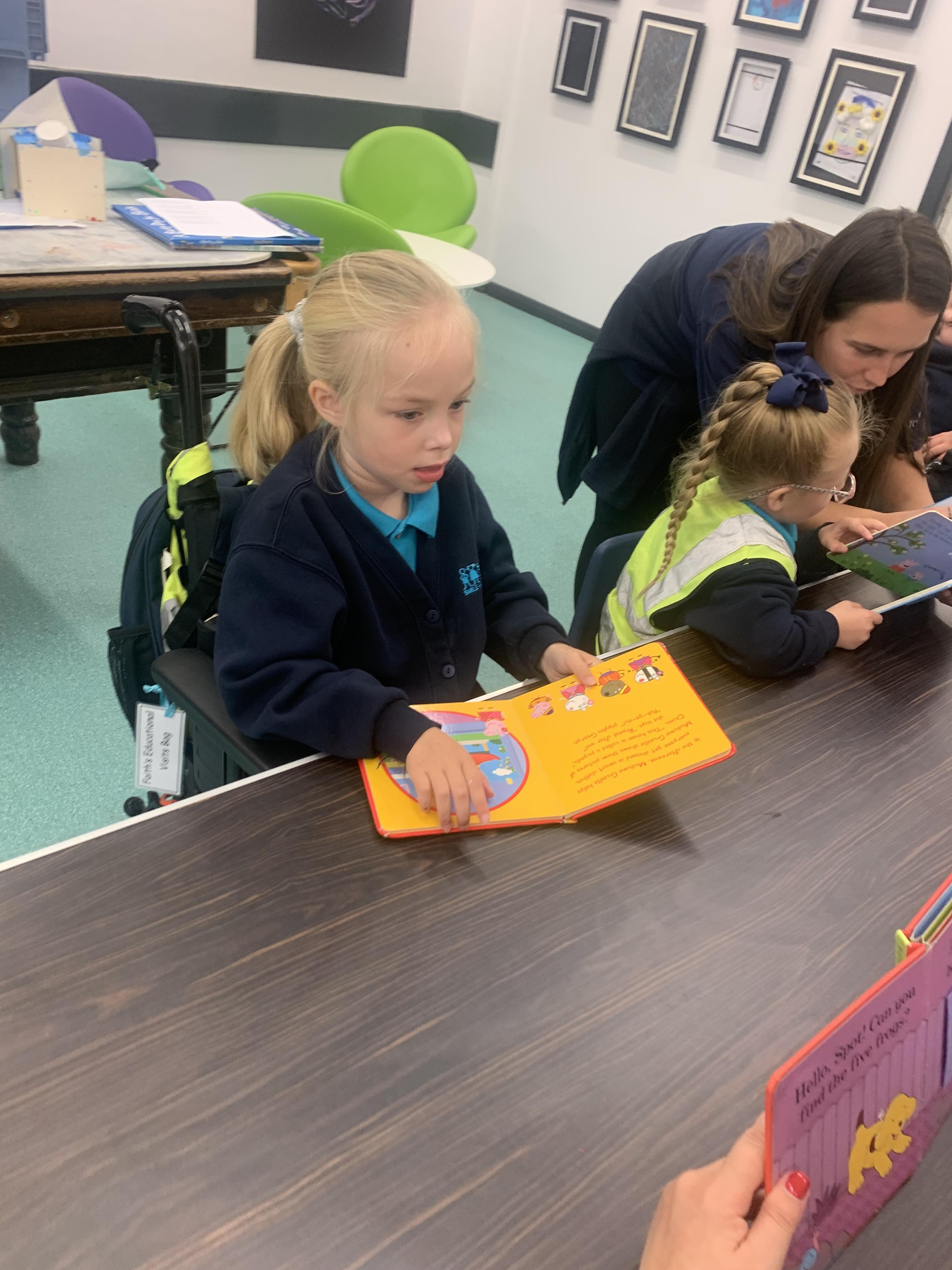24.09.25 READING The children enjoyed looking at a selection of books at Throston Library this afternoon. Staff asked the children questions about the books and encouraged them to turn the pages. We also coloured in our own book marks with coloured pencils.