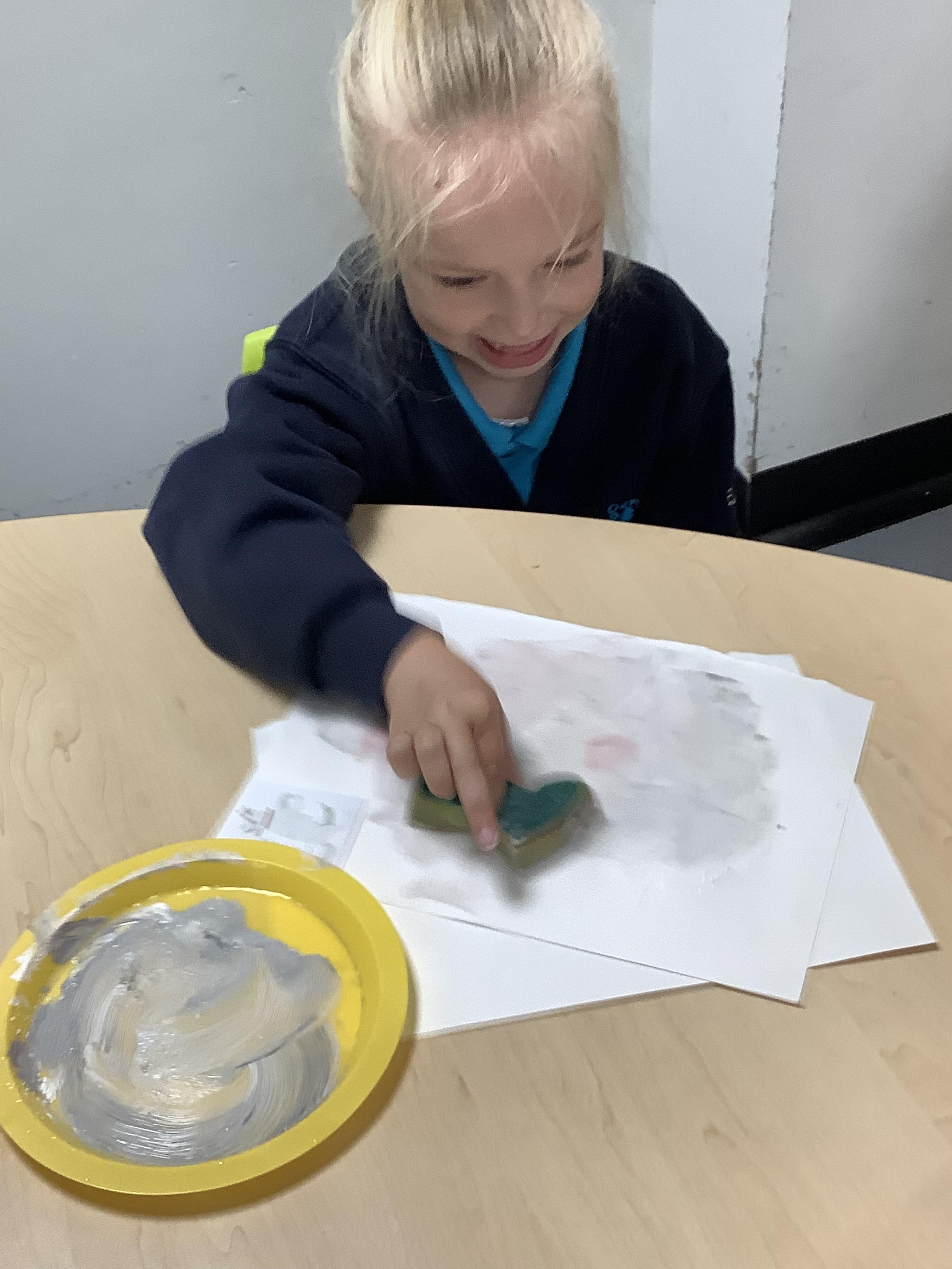 22.09.25 LITERACY /ART: The children chose their favourite animal from the story to paint using a variety of sponges.