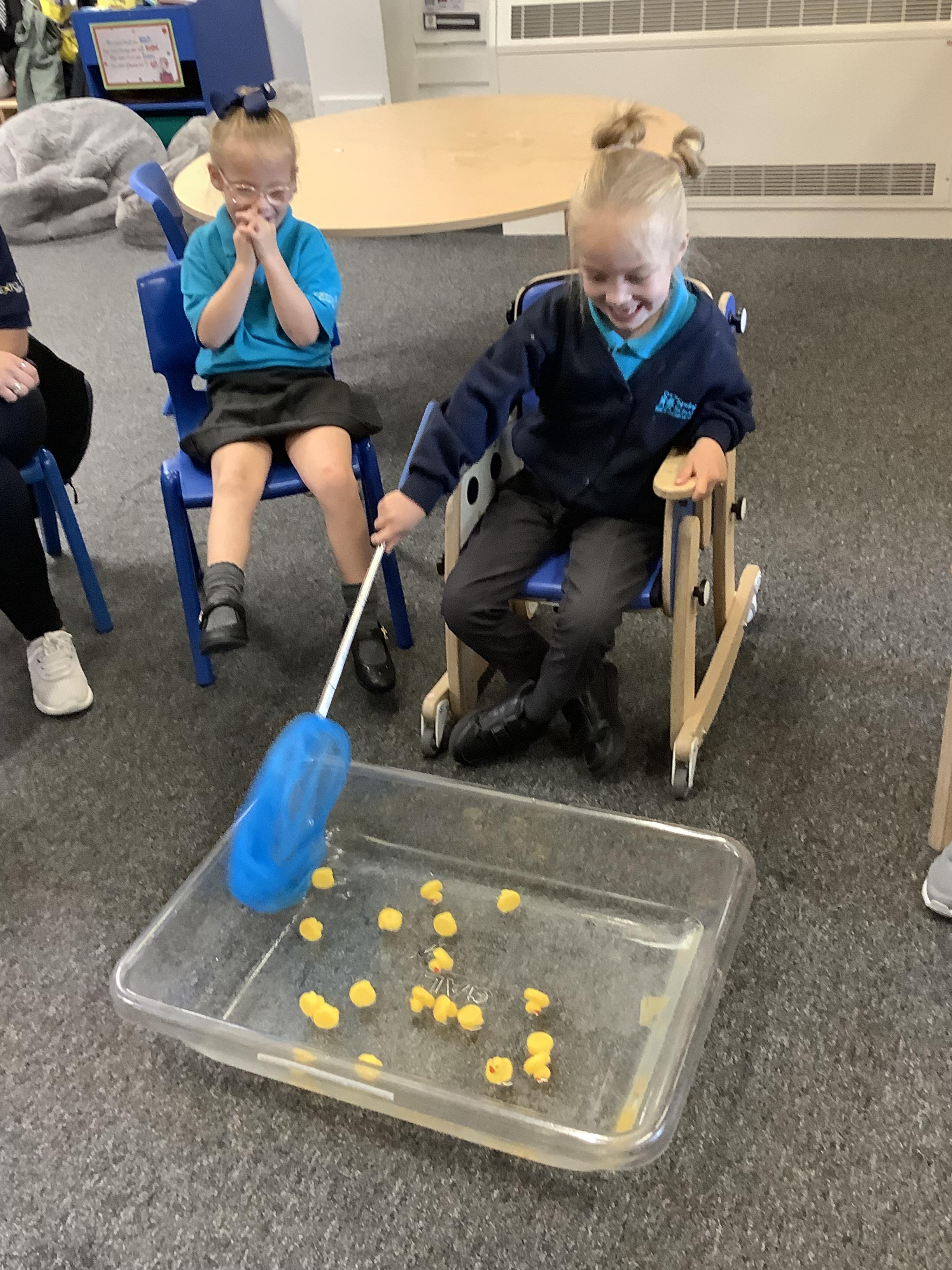 18.09.25 MATHS: The children have had fun, catching ducks! We counted the amount of ducks by puting them in a line and pointing to each duck in turn as we counted the total. Anastasija caught the most ducks in one swoop! She caught ten!