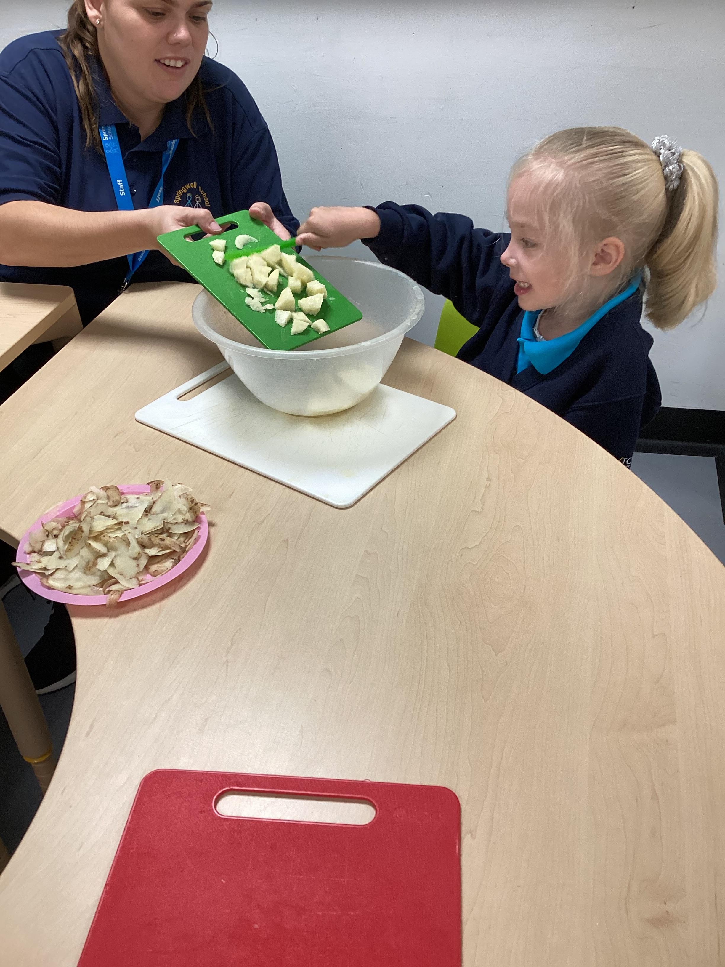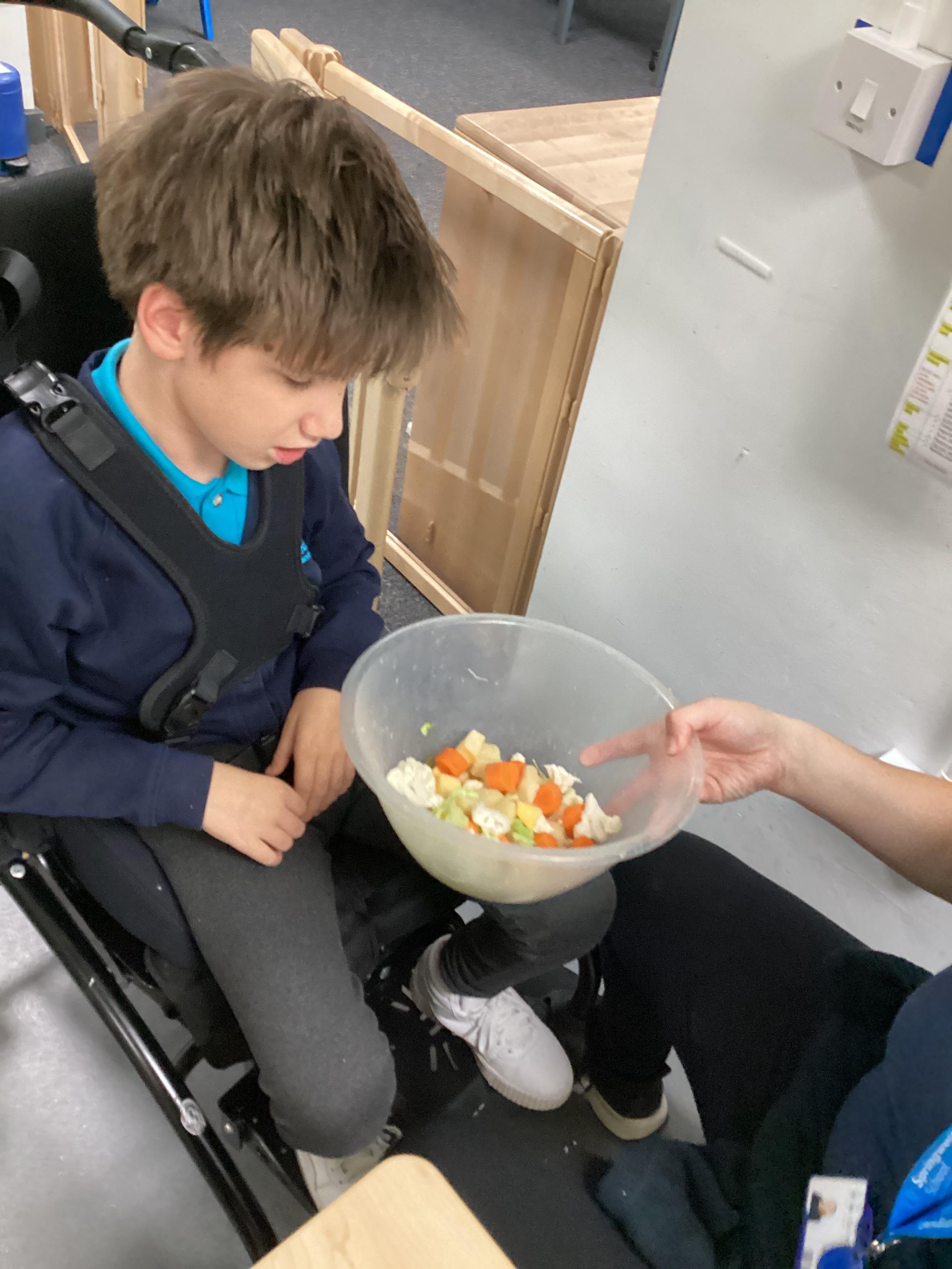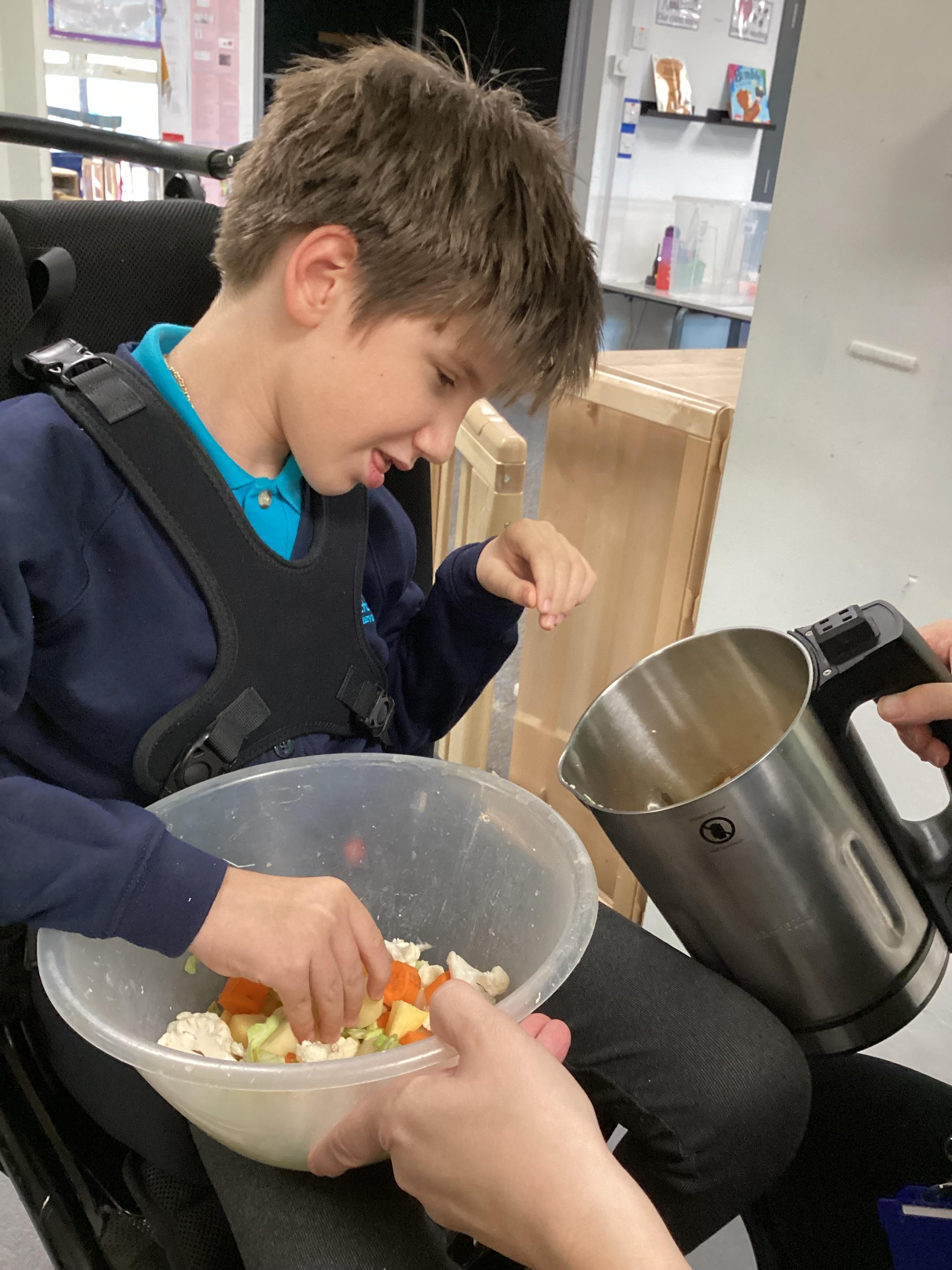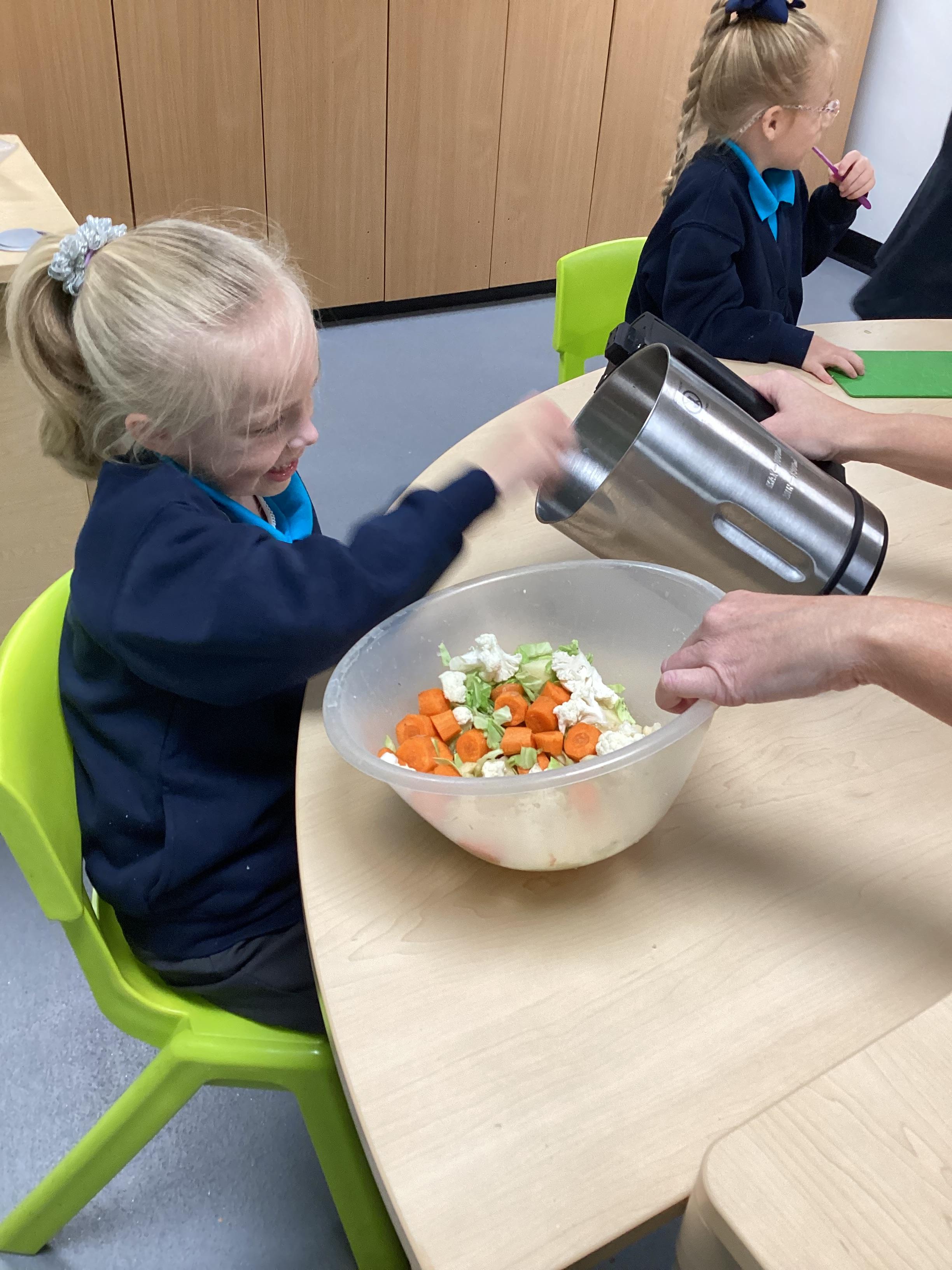 17.09.25 COOKERY: We have been making vegetable soup! The children explored and identified all the different vegetables. We safely peeled and chopped them up into small pieces and put them into a soup maker. The children tasted the smooth vegetable soup when it was ready and it was delicious!