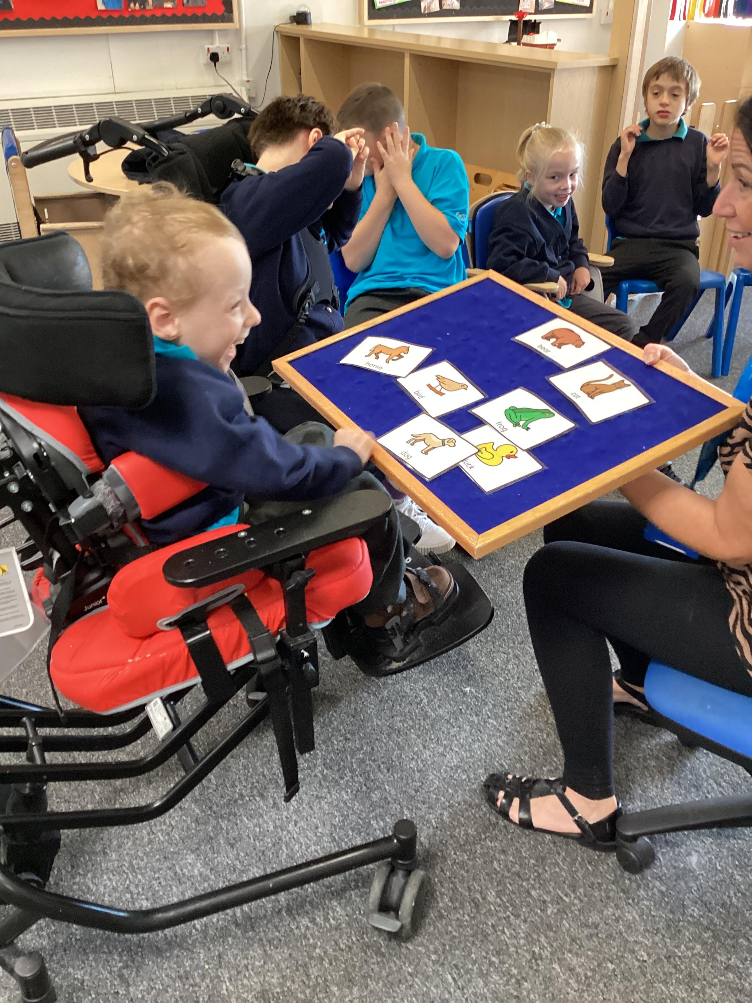 16.09.25 LITERACY: We have been reading the story: 'Brown Bear, What do see?' We have been identifying the different animals in the story and the sounds they make.