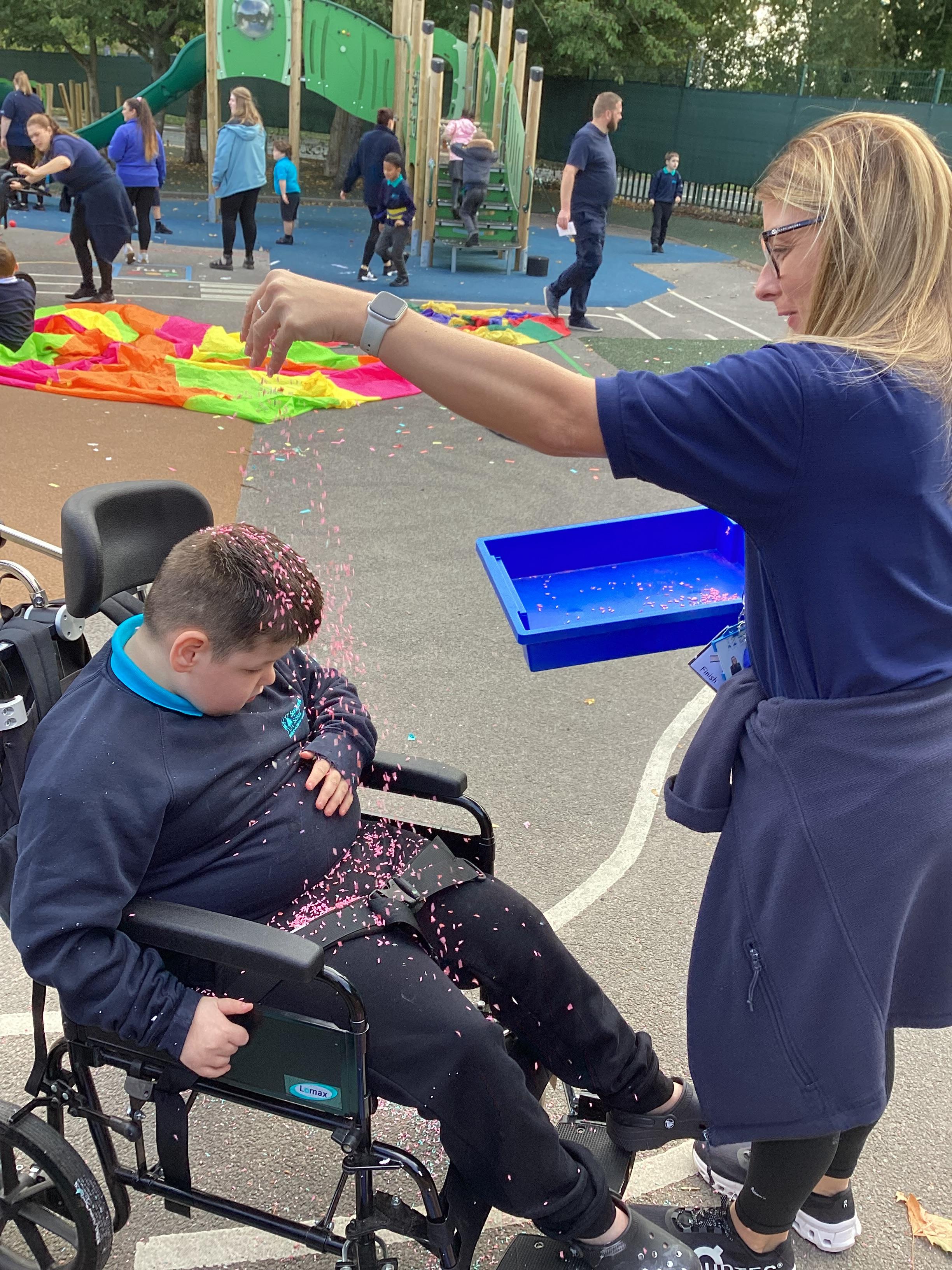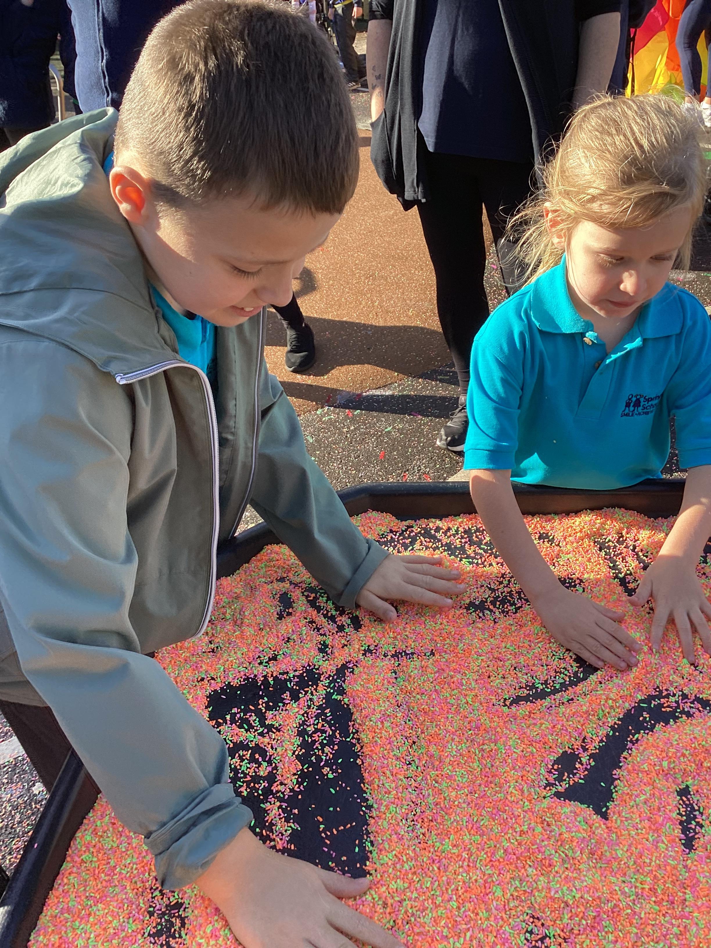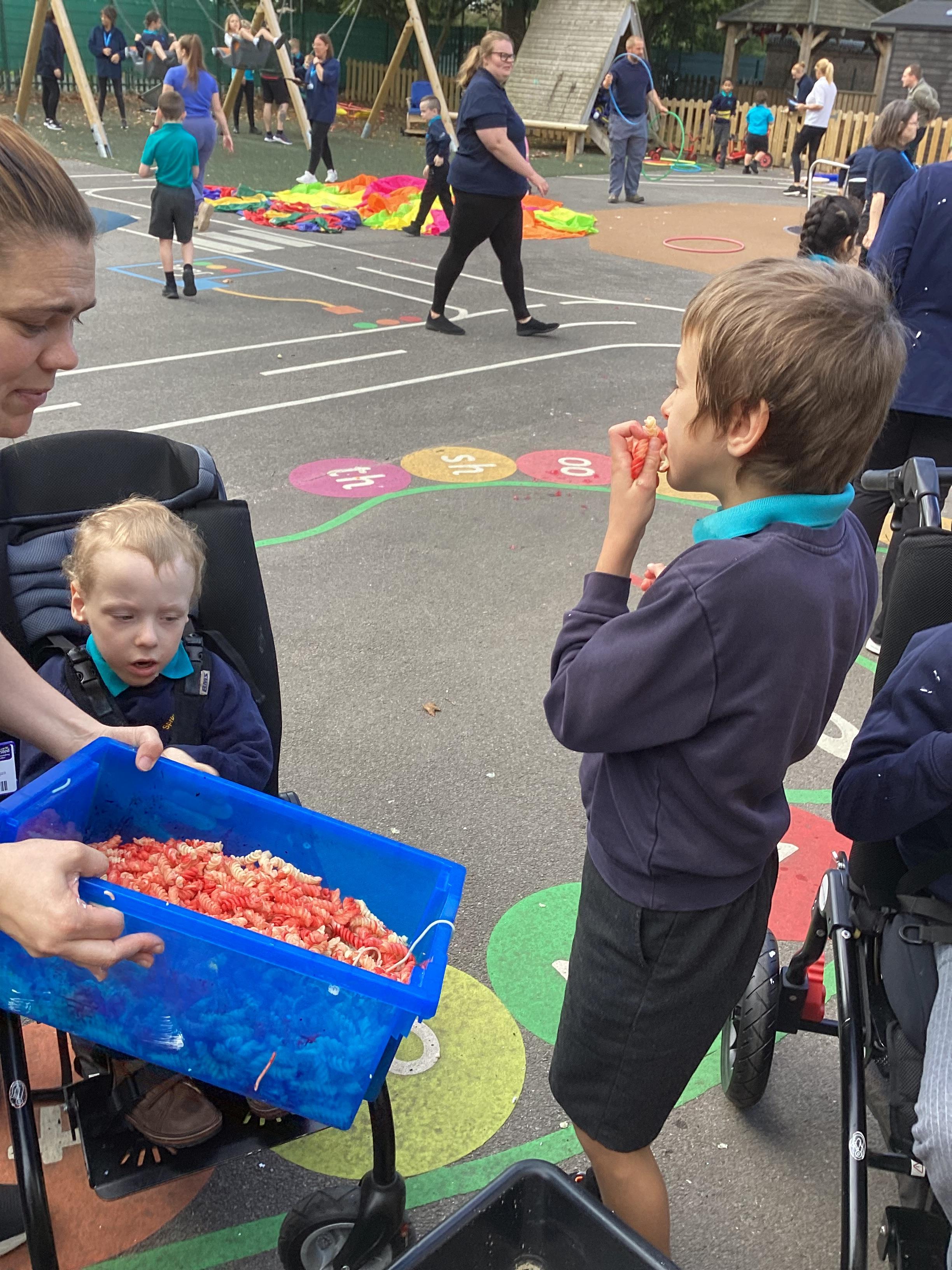 10.09.25 MULTI-SENSORY 'COLOUR' ASSEMBLY IN THE YARD The children had a fantastic time, exploring all the different 'colour' sensory activities. We explored different coloured play dough, rice, spaghetti, vegetables, shaving foam, party poppers etc. We also enjoyed playing with the large multi-coloured parachute!