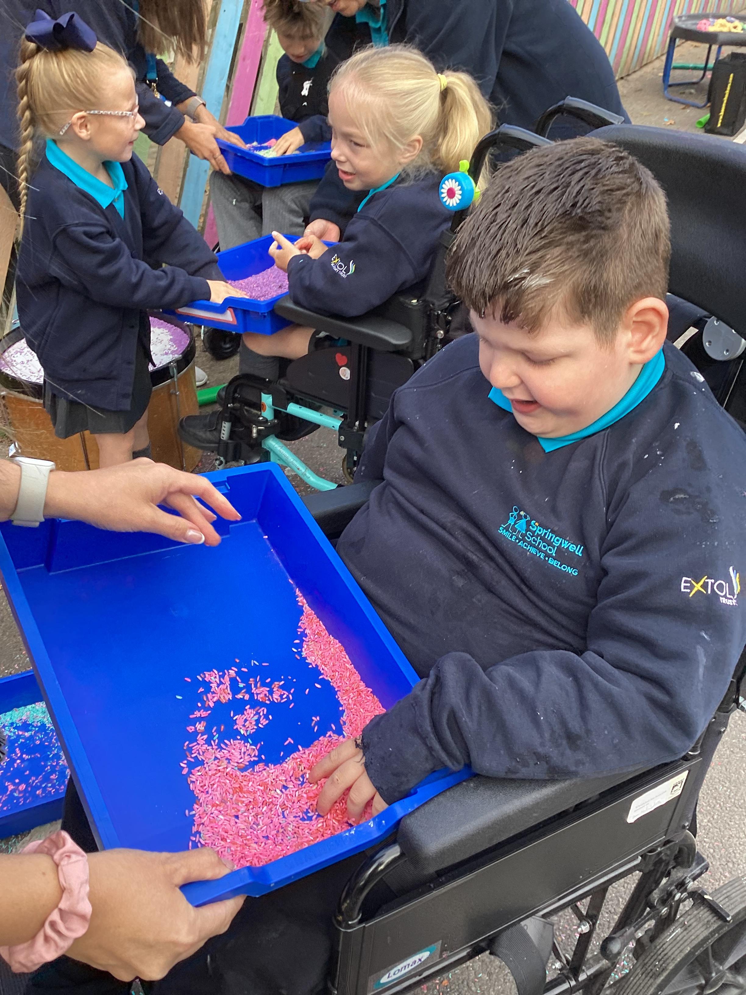 15.09.25 We enjoyed exploring all the multi-sensory 'coloured' activities in the yard today during Caroline's assembly.