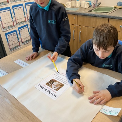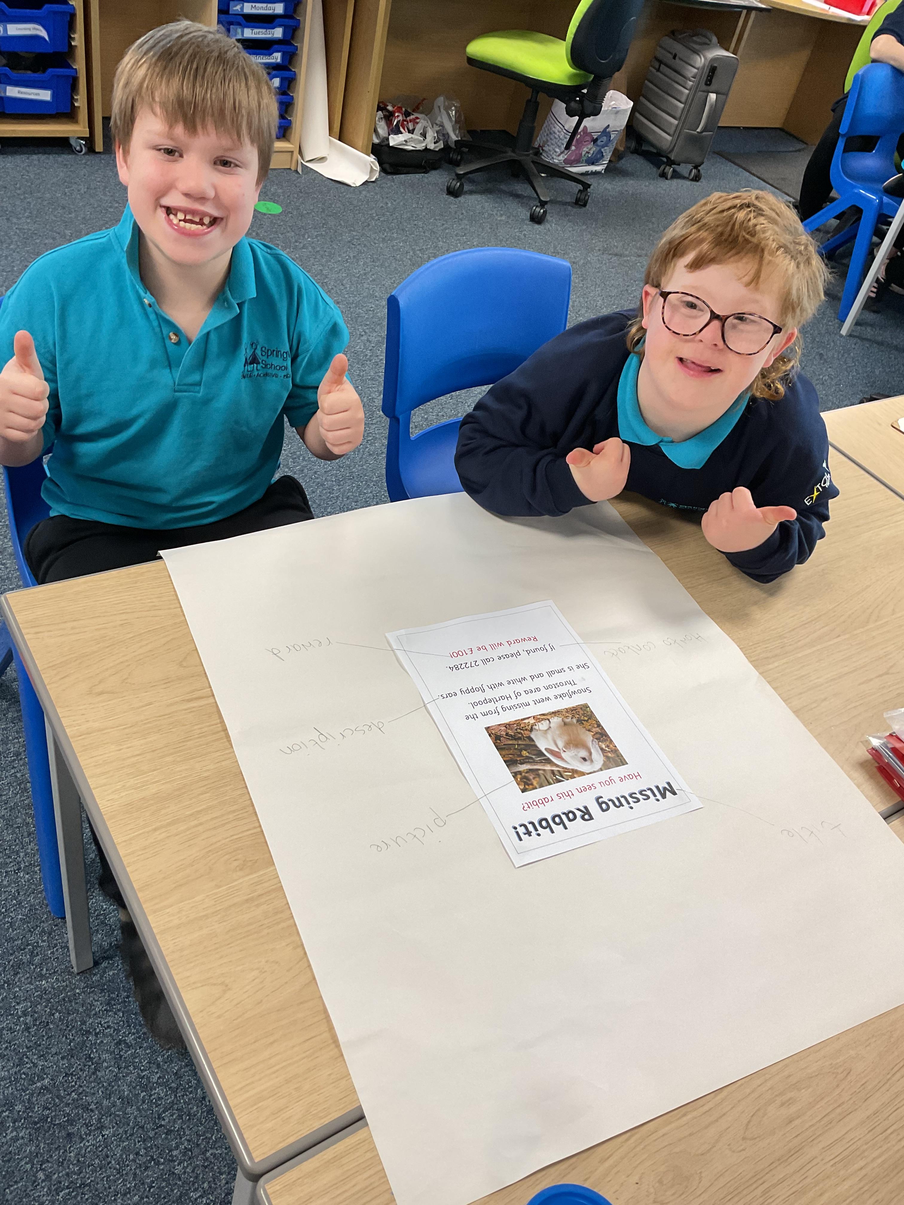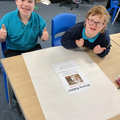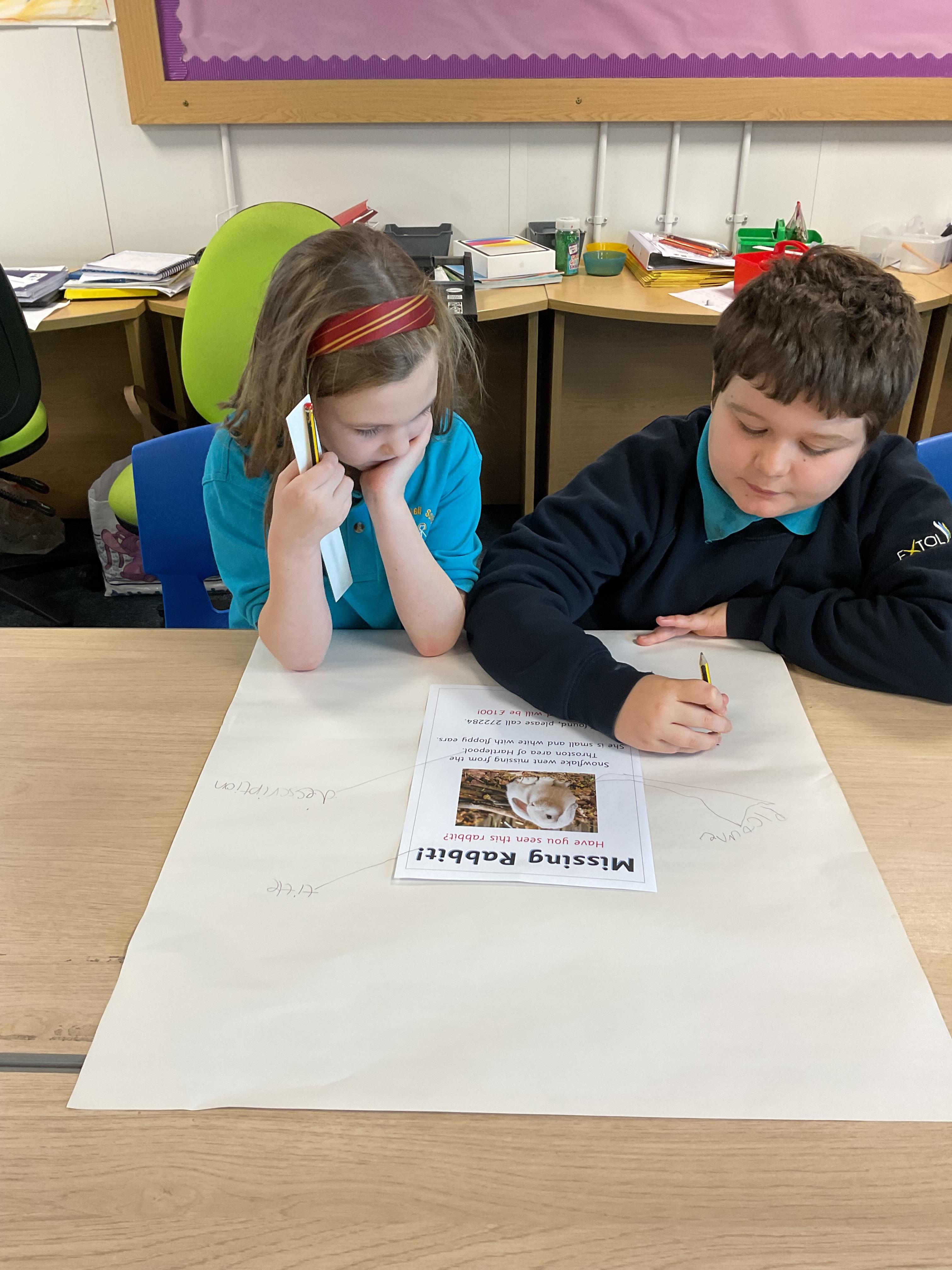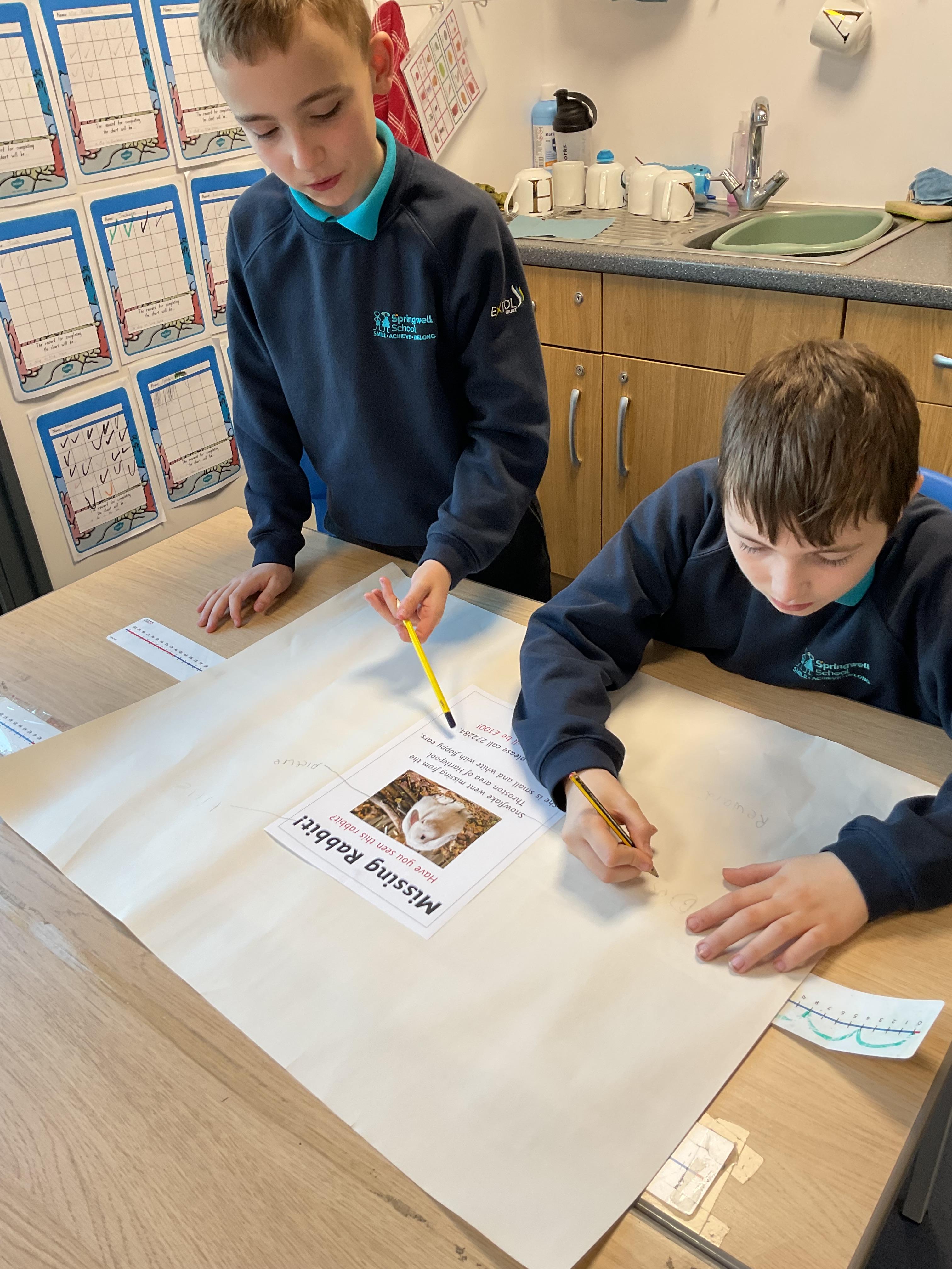 We worked together to label the features of a poster. We then used these ideas to create our own lost poster to find the "missing" toys from our book 'Lost at the Museum'.