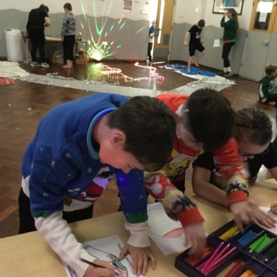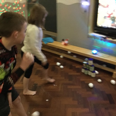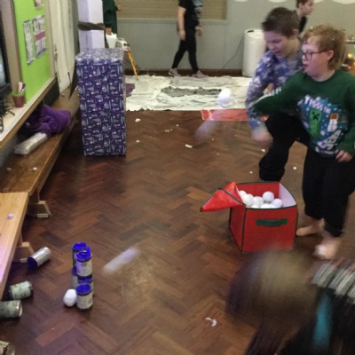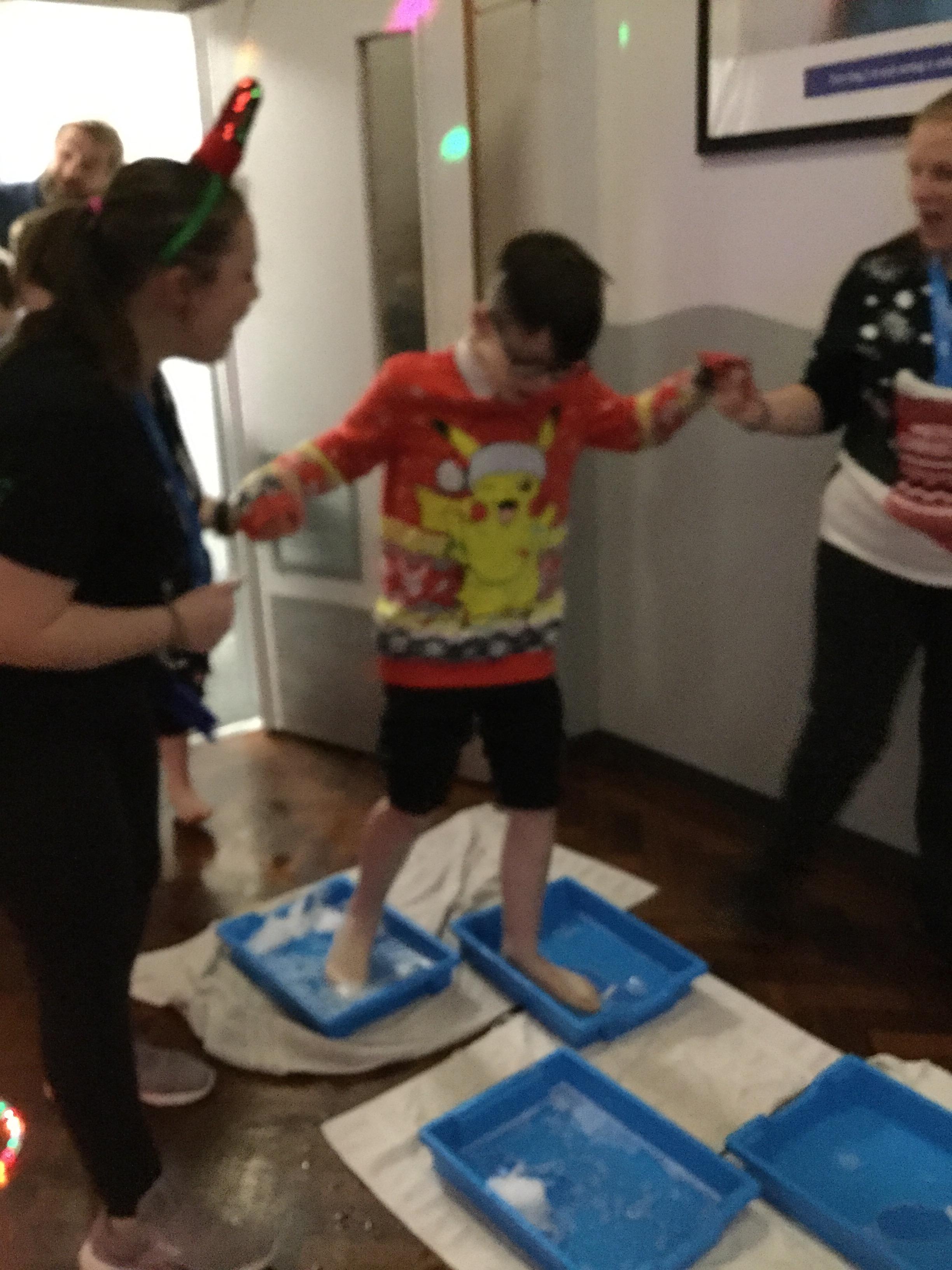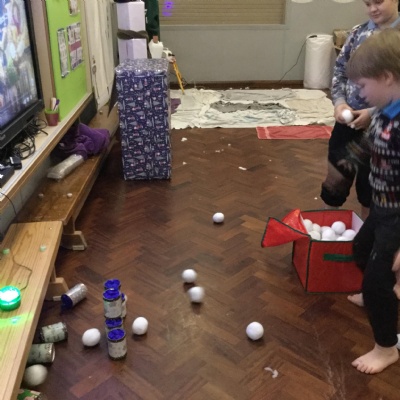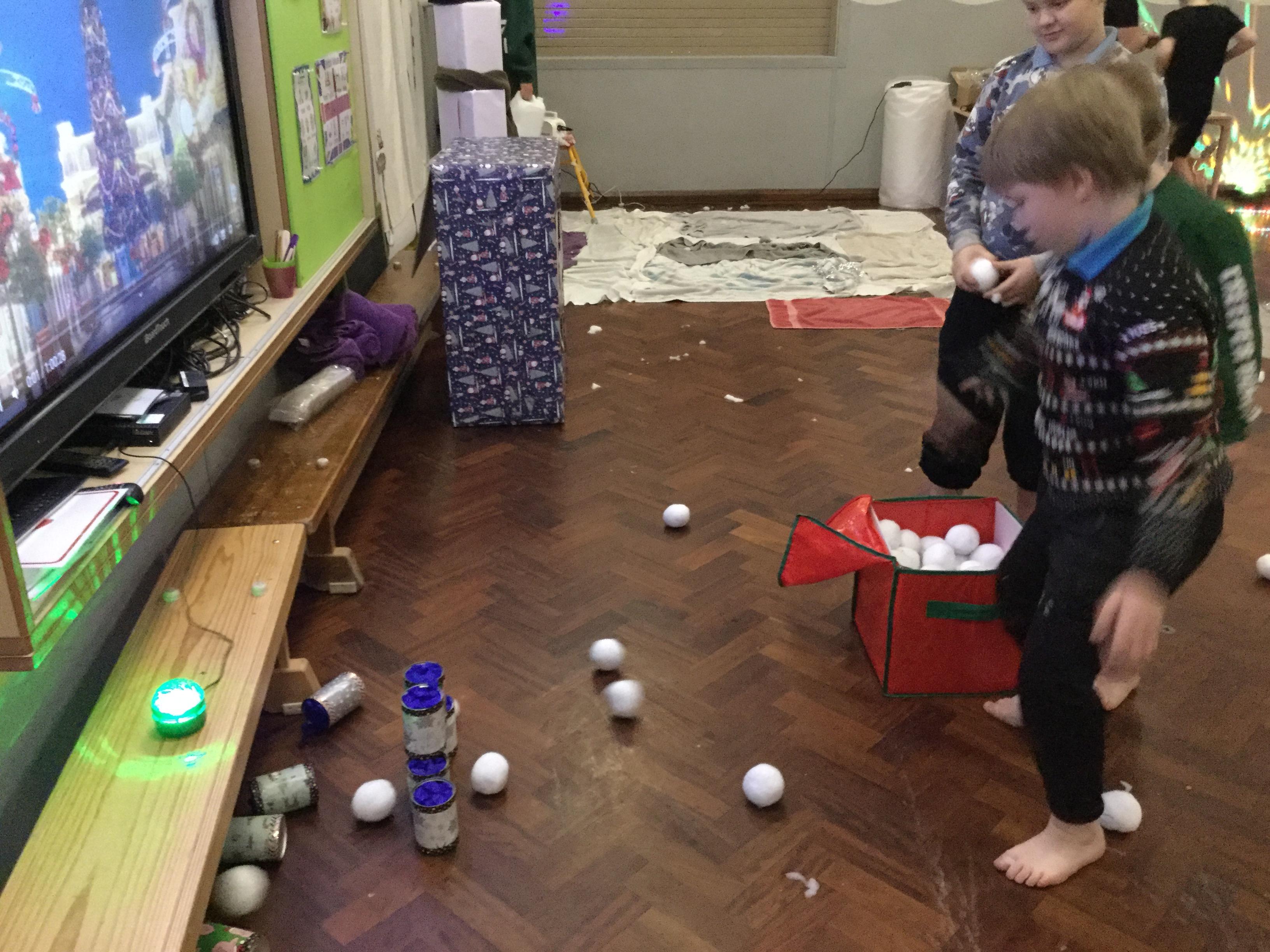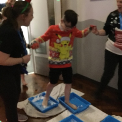 We took part Christmas activities which included some sensory experiences. We loved stepping into the icy cold trays and dancing in the snow foam. We took part in a treasure hunt to win a prize and practised our snowball throwing skills by knocking down cans. At the end, we created a special decoration which we could take home.