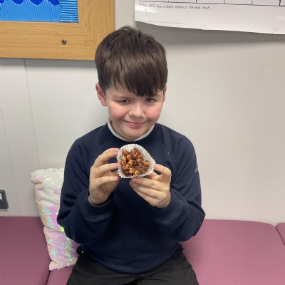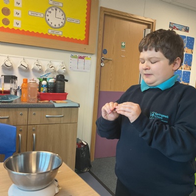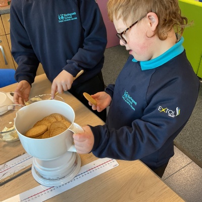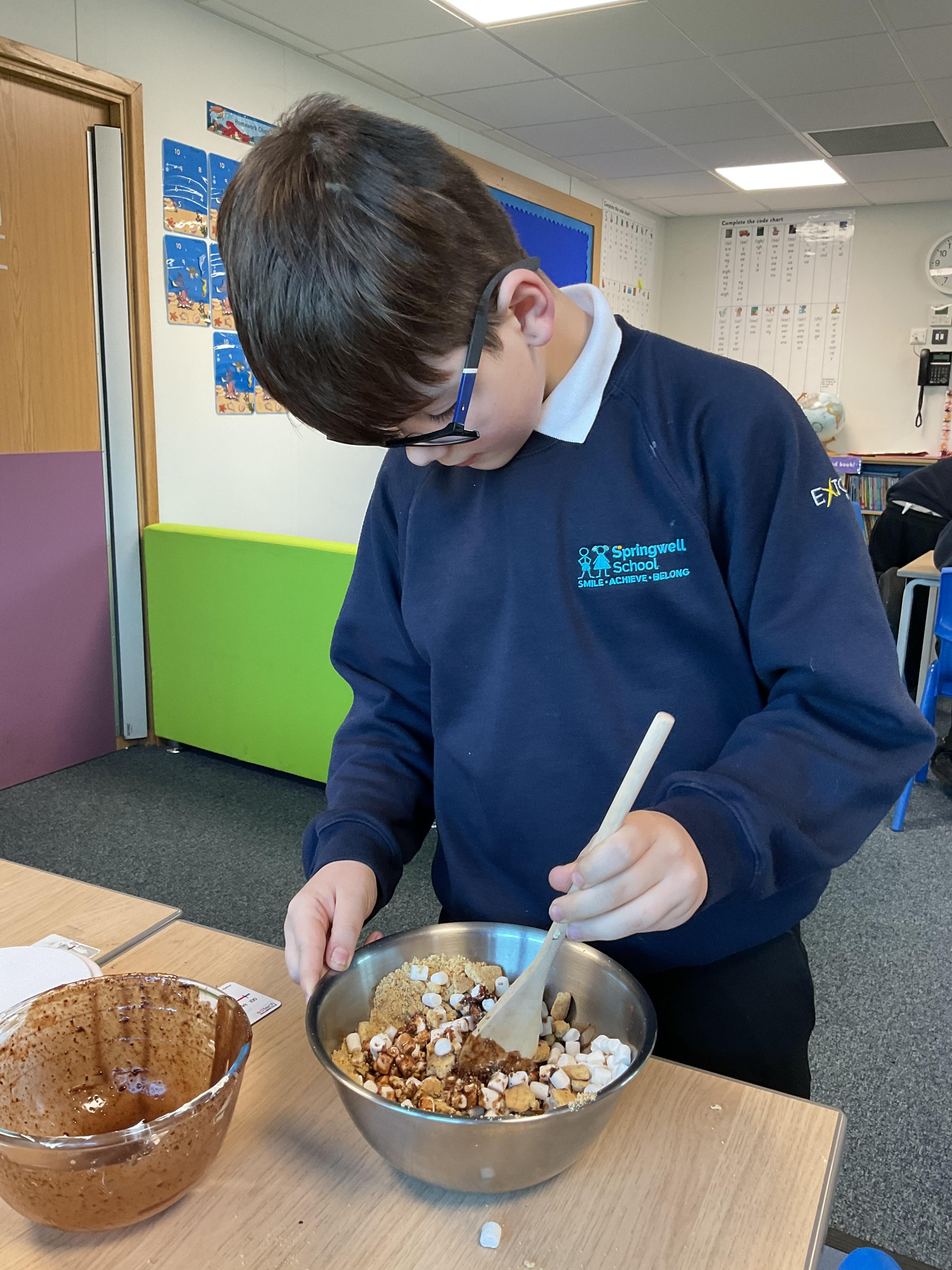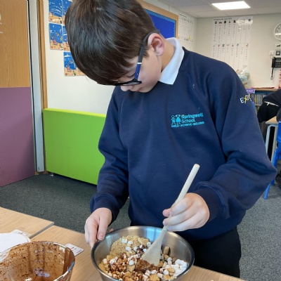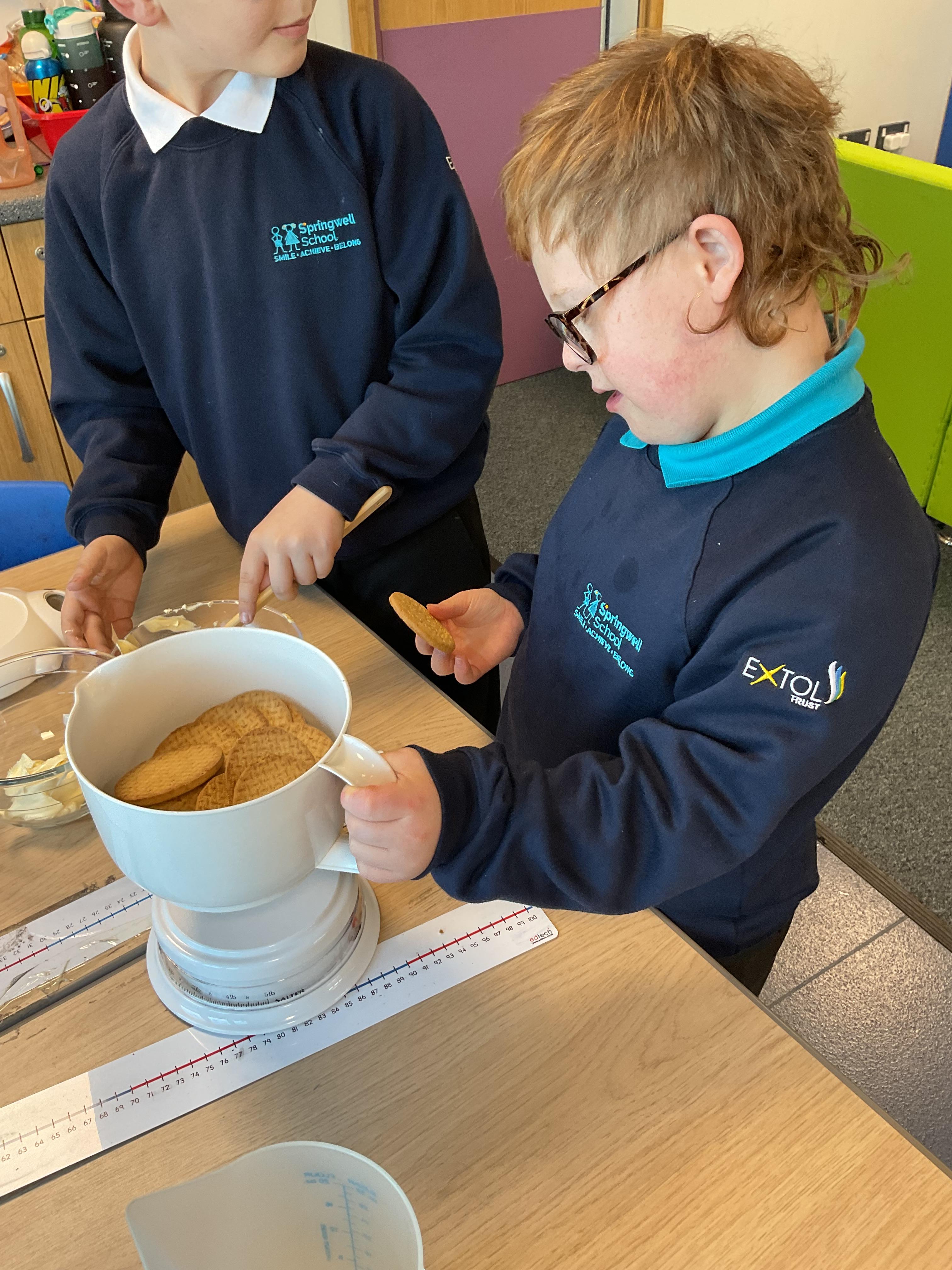 In DT, our focus was measuring using scales. We followed a recipe to measure ingredients to create rocky road bites.