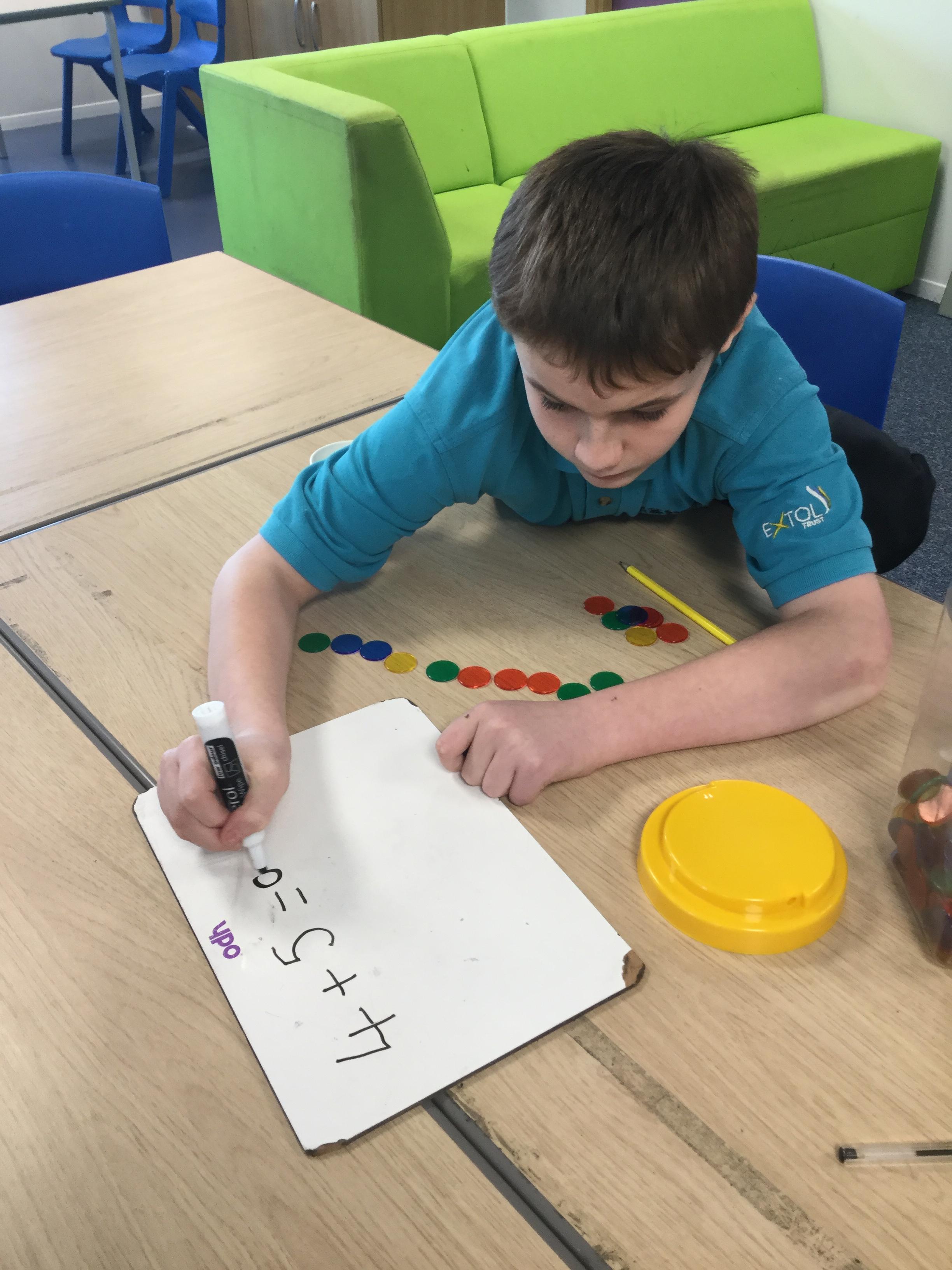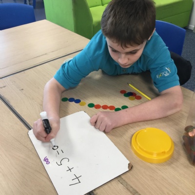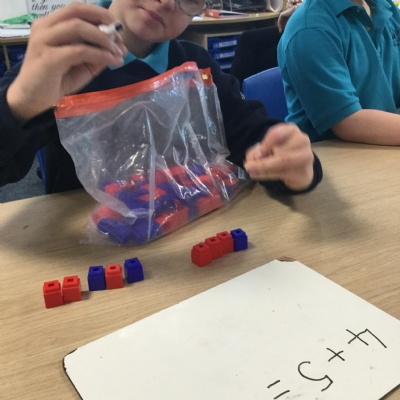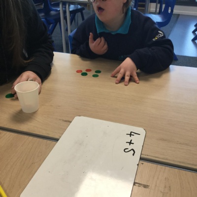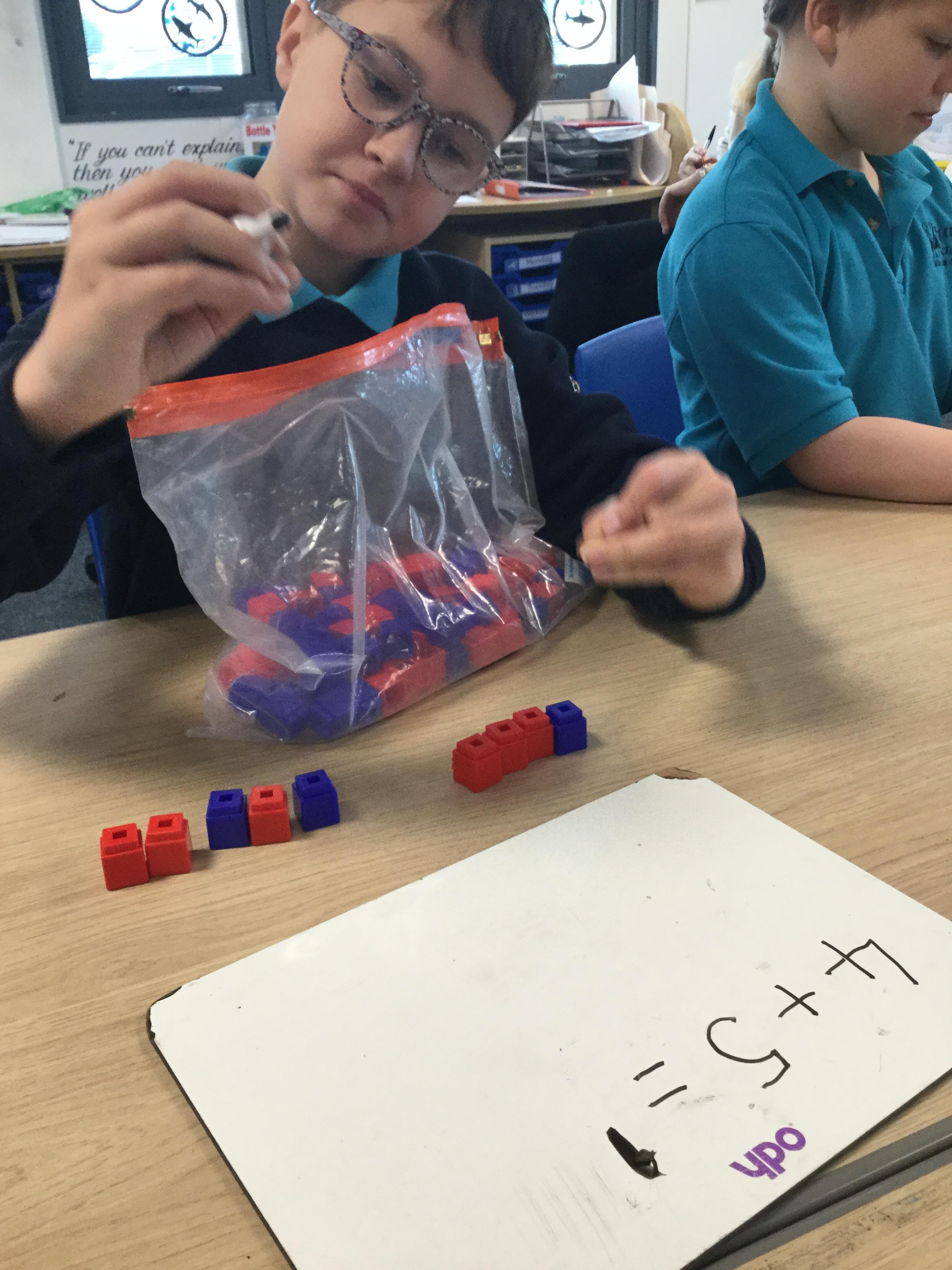 Some of us used manipulatives to solve simple addition sentences. We focussed on one-to-one correspondence counting to make sure we were being accurate with our answers.