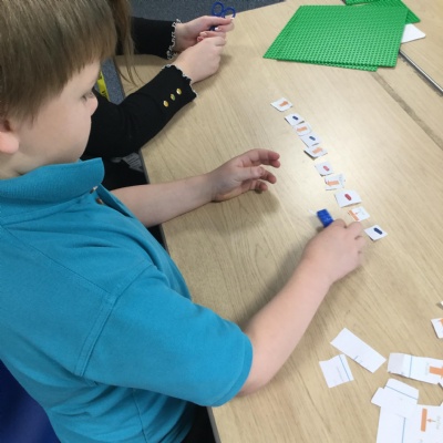 In Computing, we have continued to develop our understanding of algorithms. In pairs, we created an algorithm for making a Lego model. Our partner predicted what that Lego model might look like based on the simple algorithm and then tested our prediction by following the instructions.