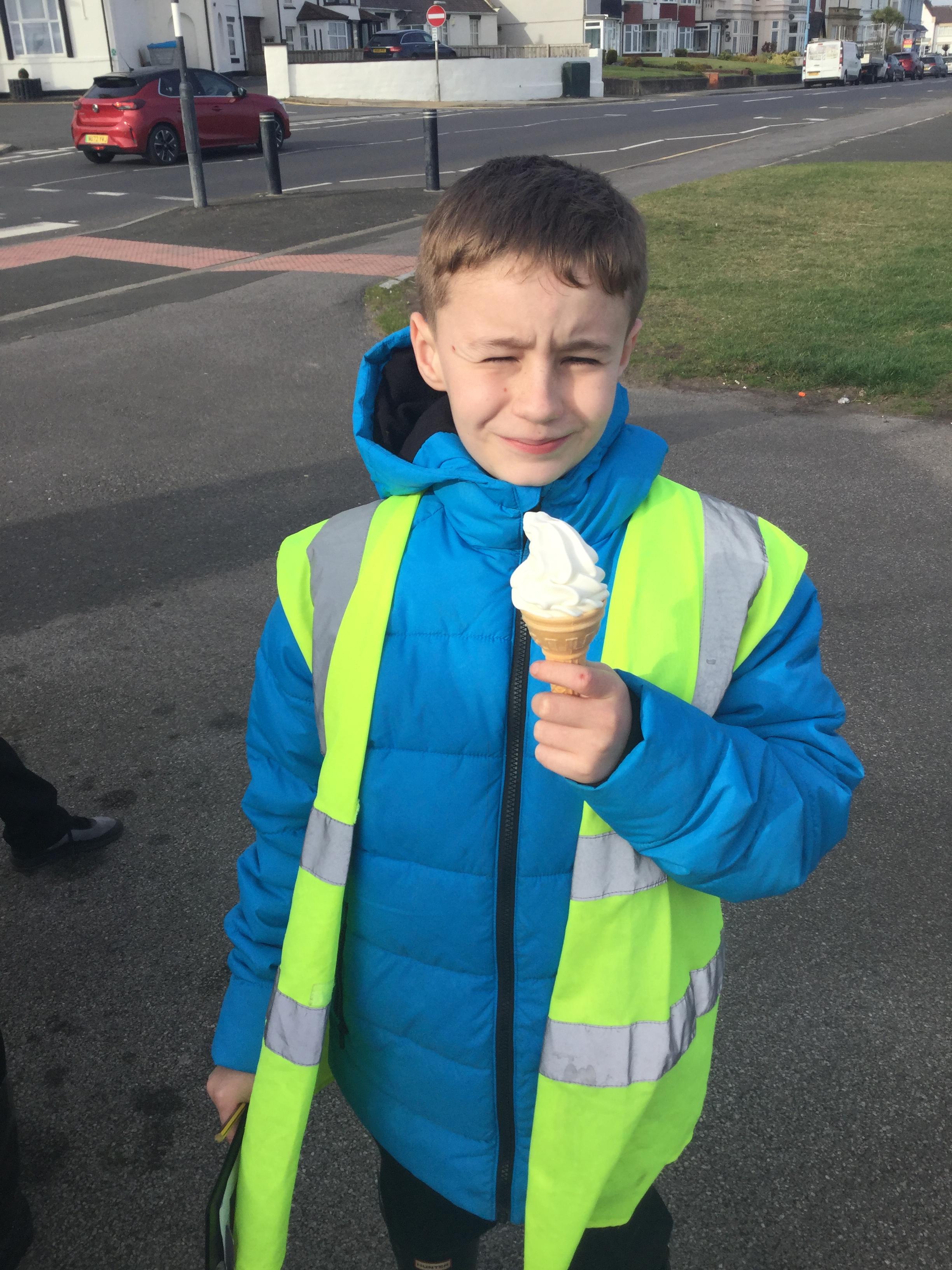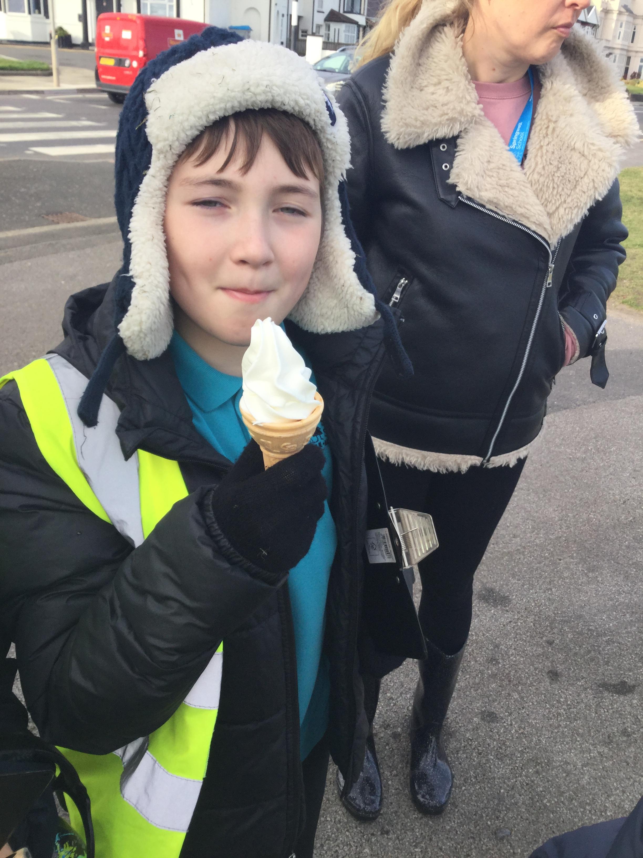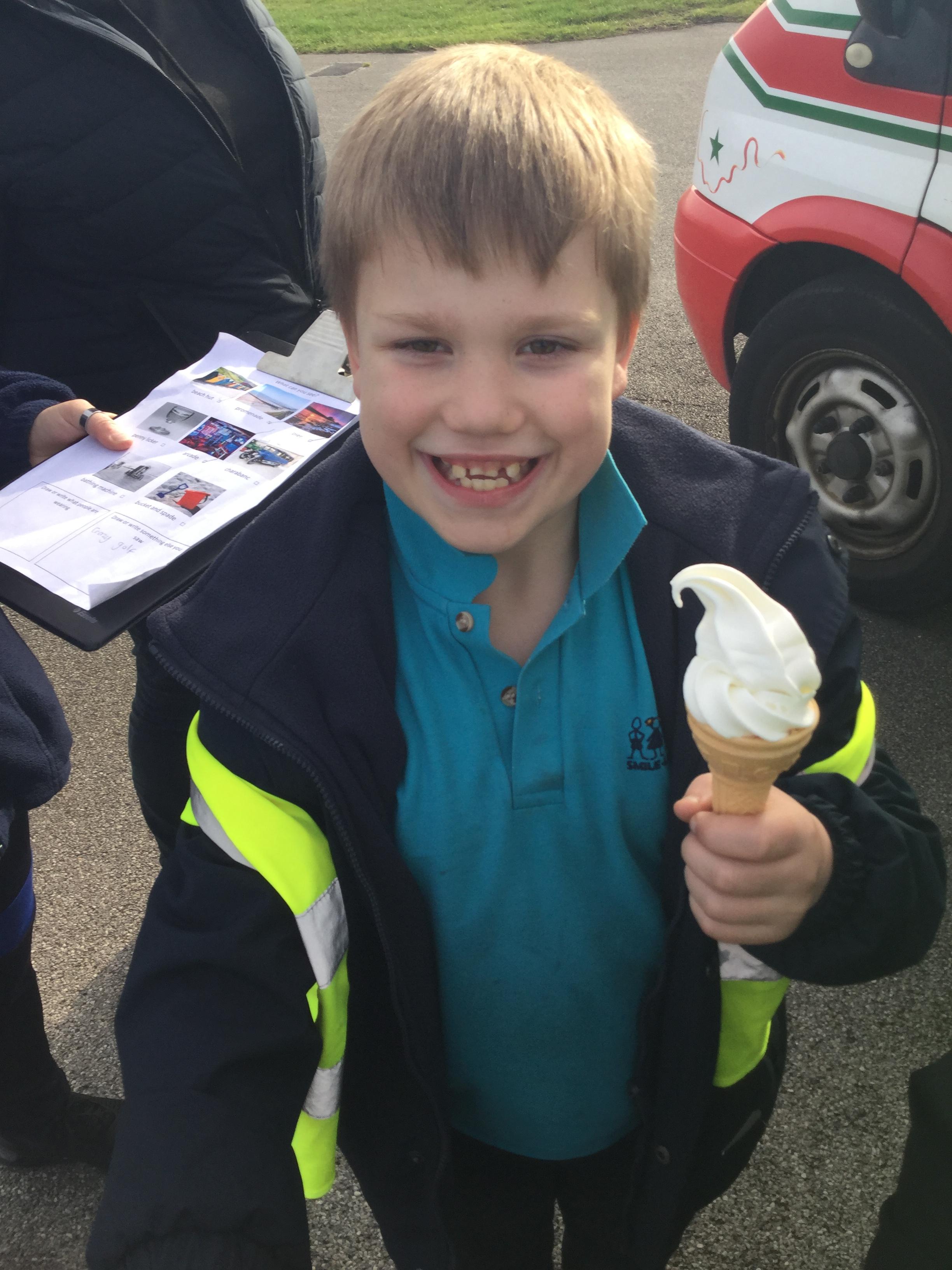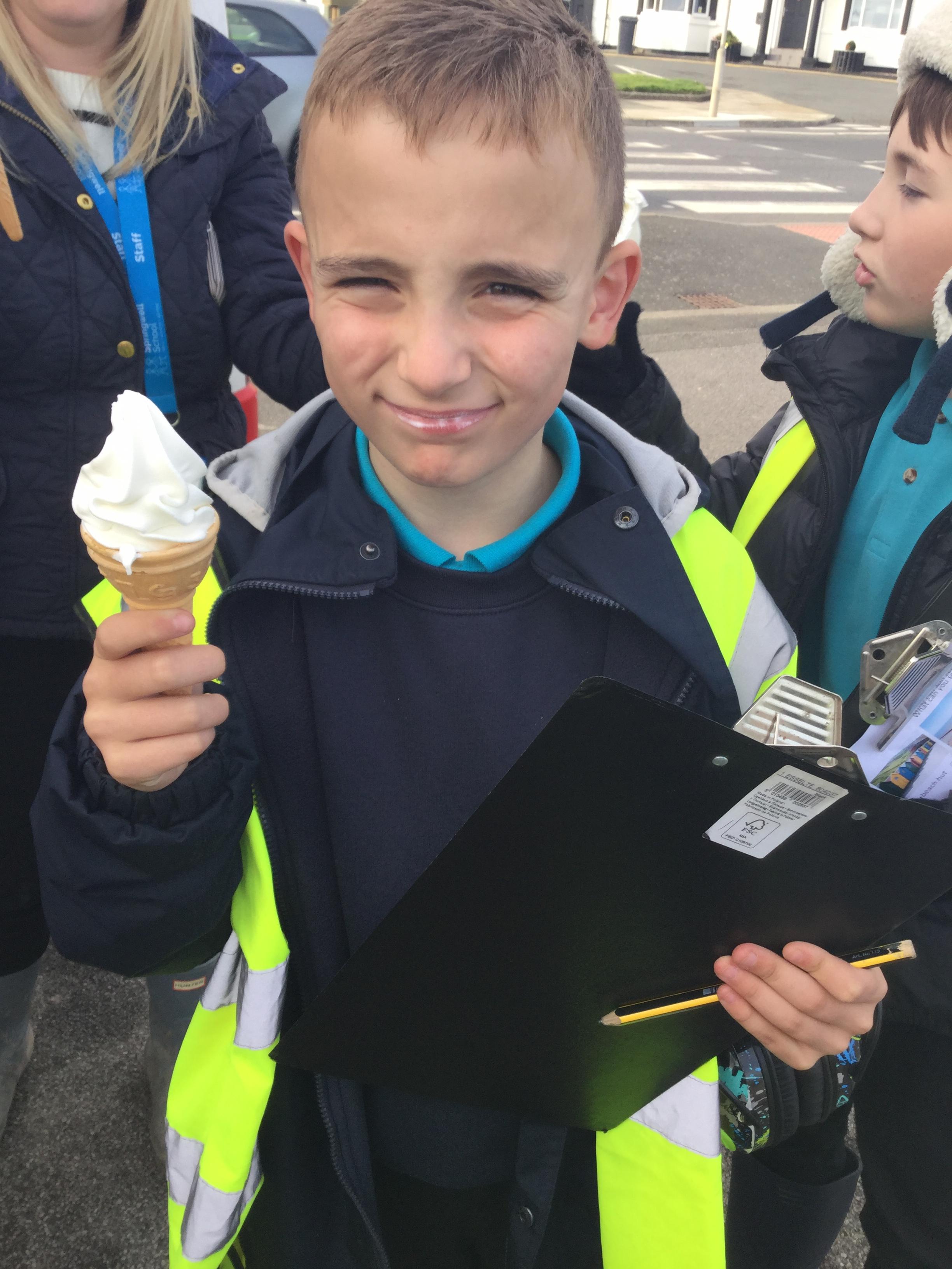 Whilst at the seaside, we also gathered information ready to write our seaside poem in English. We sat on the beach and considered what we would see, hear, smell and touch. We also had a taste of some ice cream!