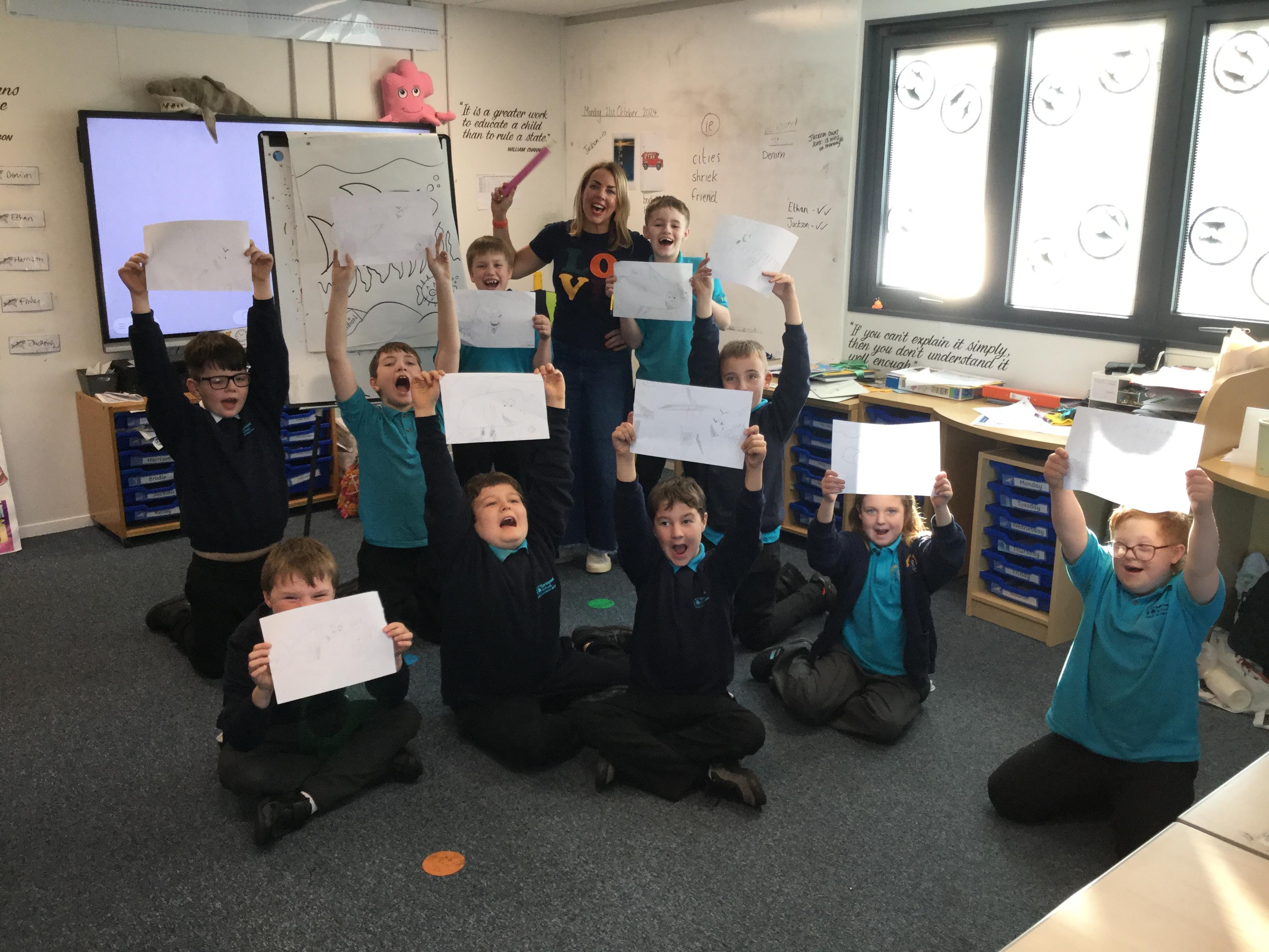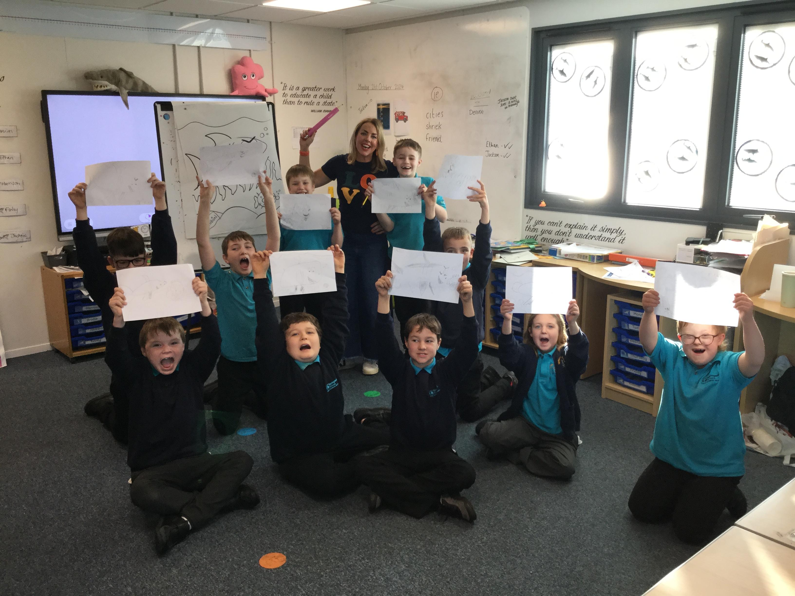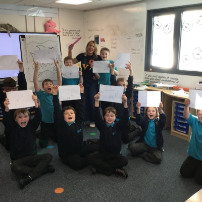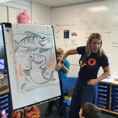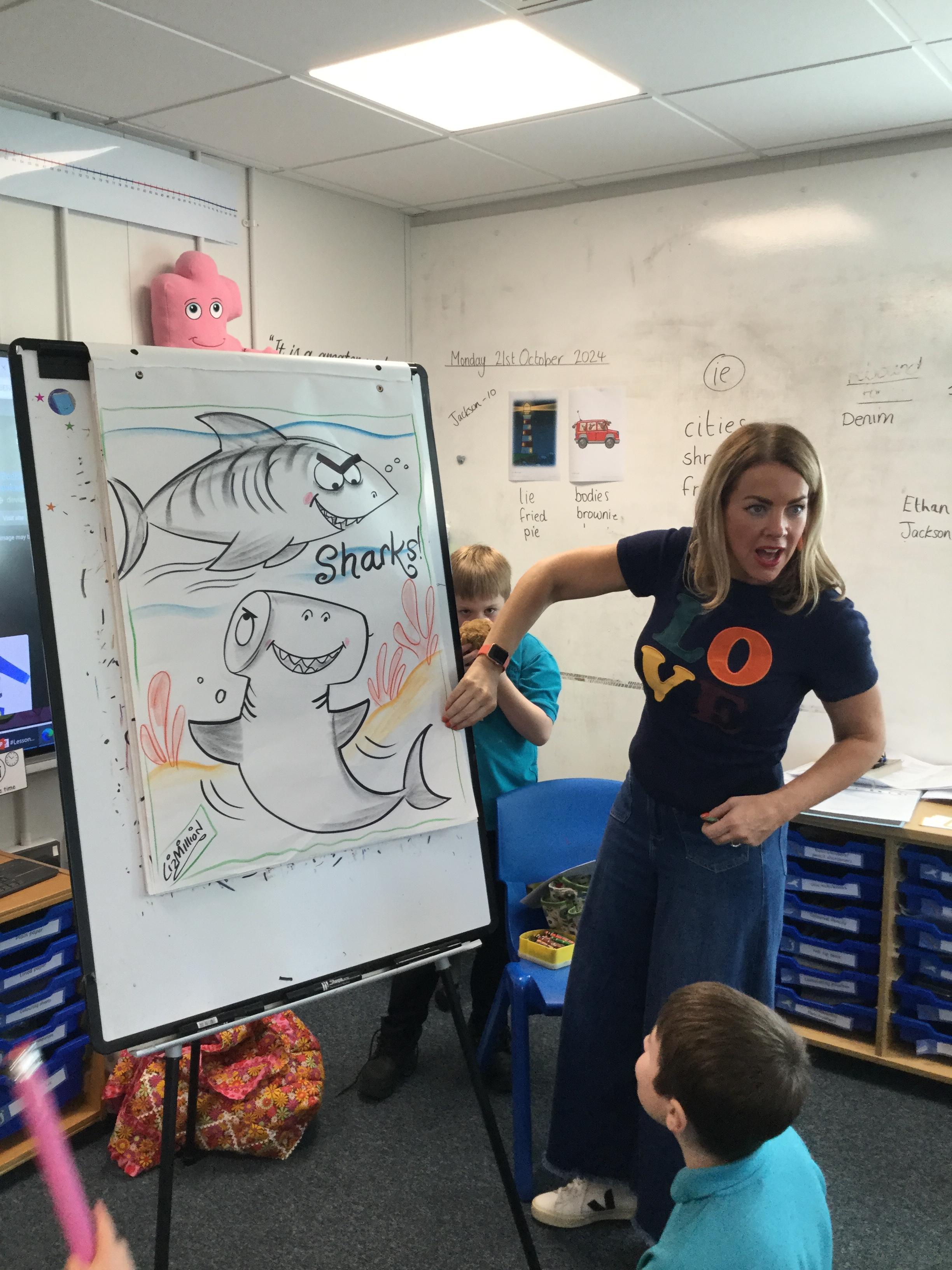 What a fantastic opportunity we have had! We have been so luck to have the illustrator Liz Million come into school to teach us how to draw. Our theme was under the sea and she taught us how to draw a shark.