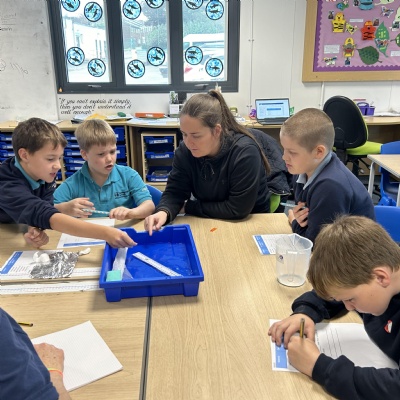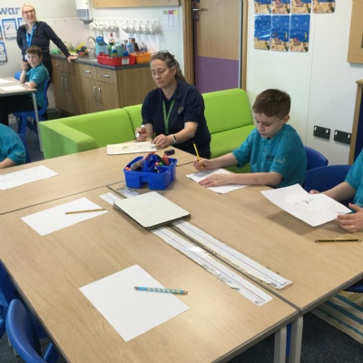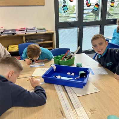 We were given a selection of materials and then worked together as a class to come up with a way of investigating the question. We predicted what we thought the answer would be.