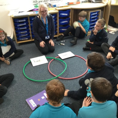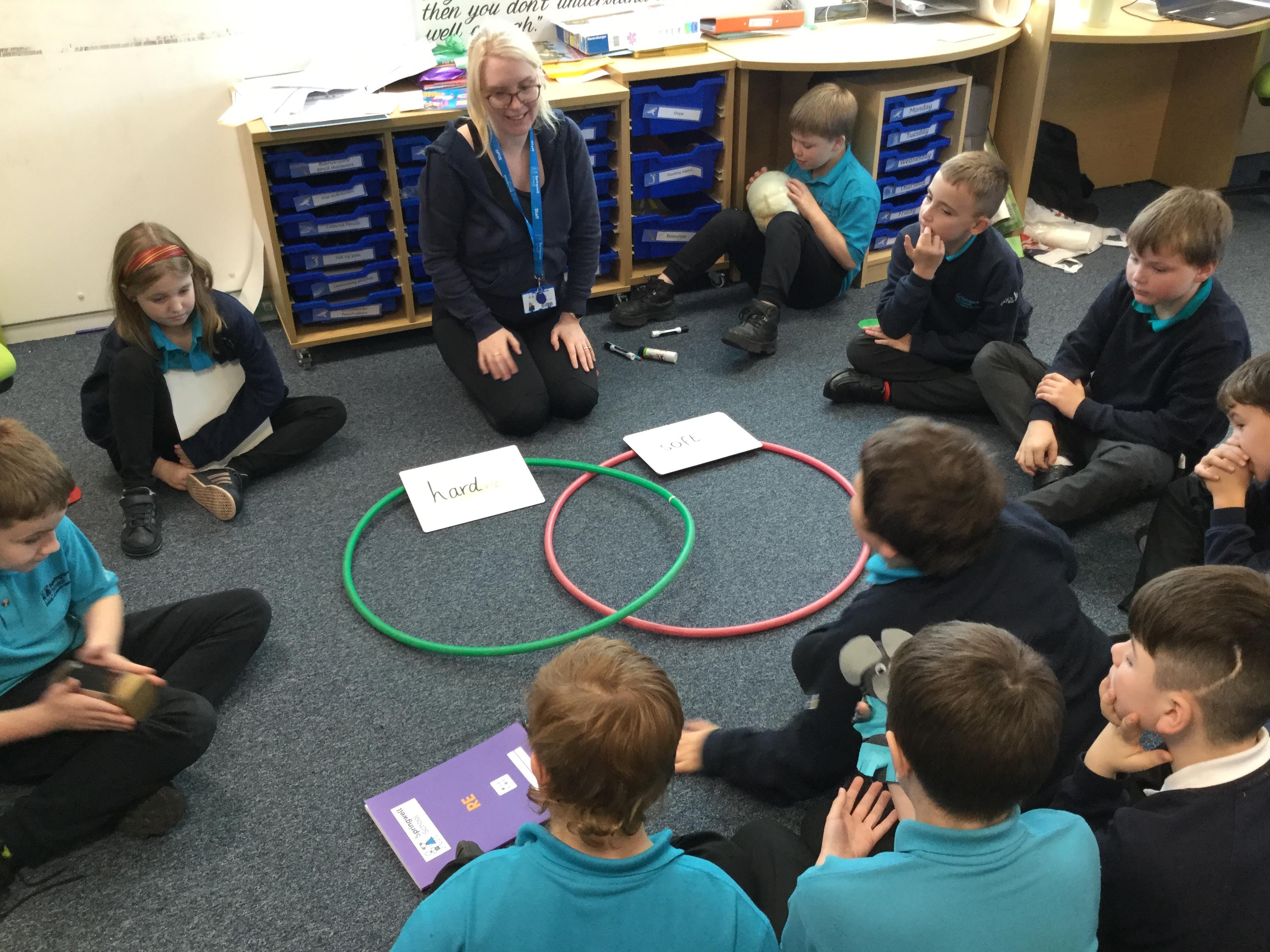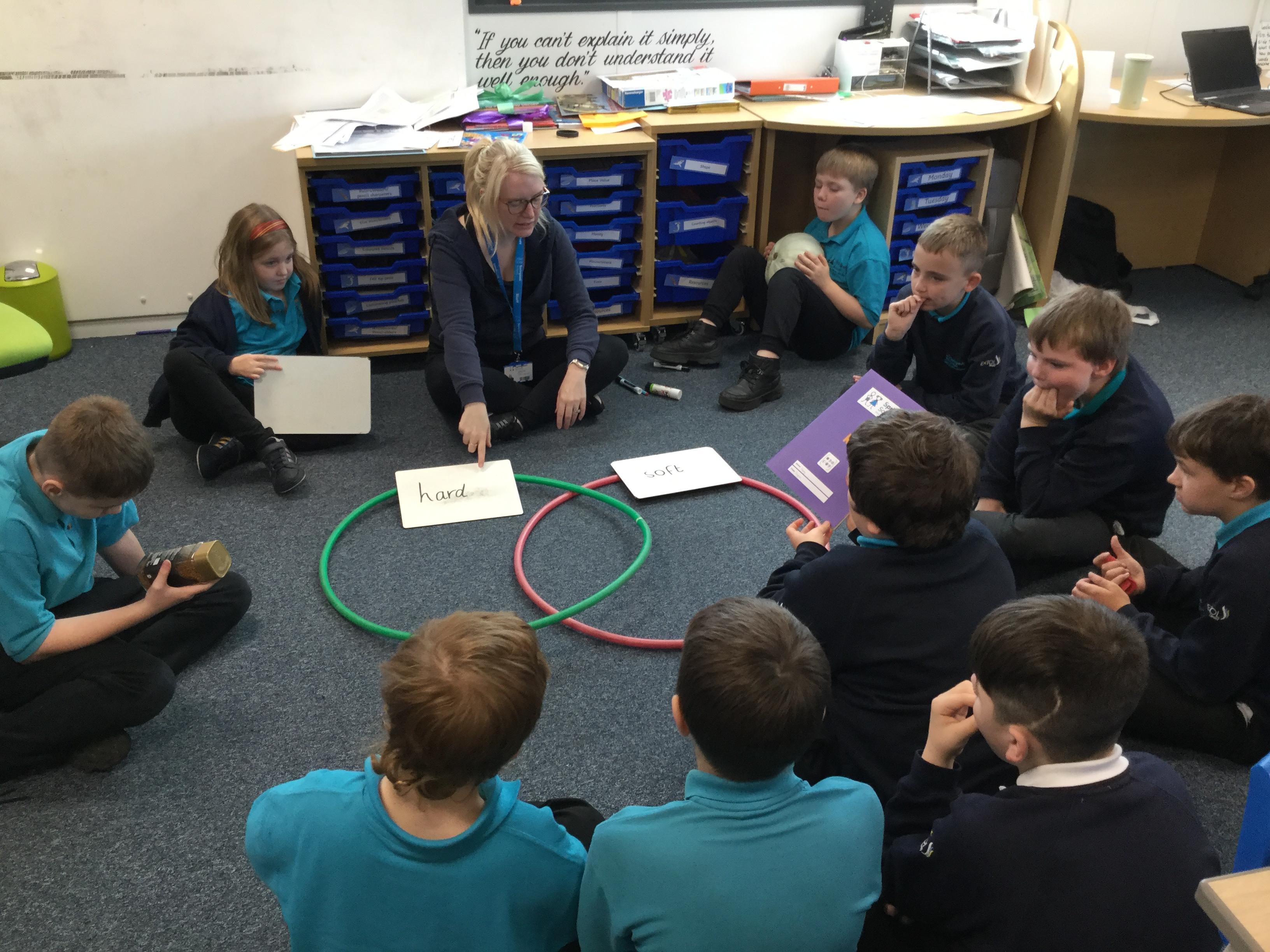 In Science, we have been comparing and sorting objects based on its material. We used a Venn diagram to sort each item and realised that sometimes an object might need to go in the center as it had both materials!