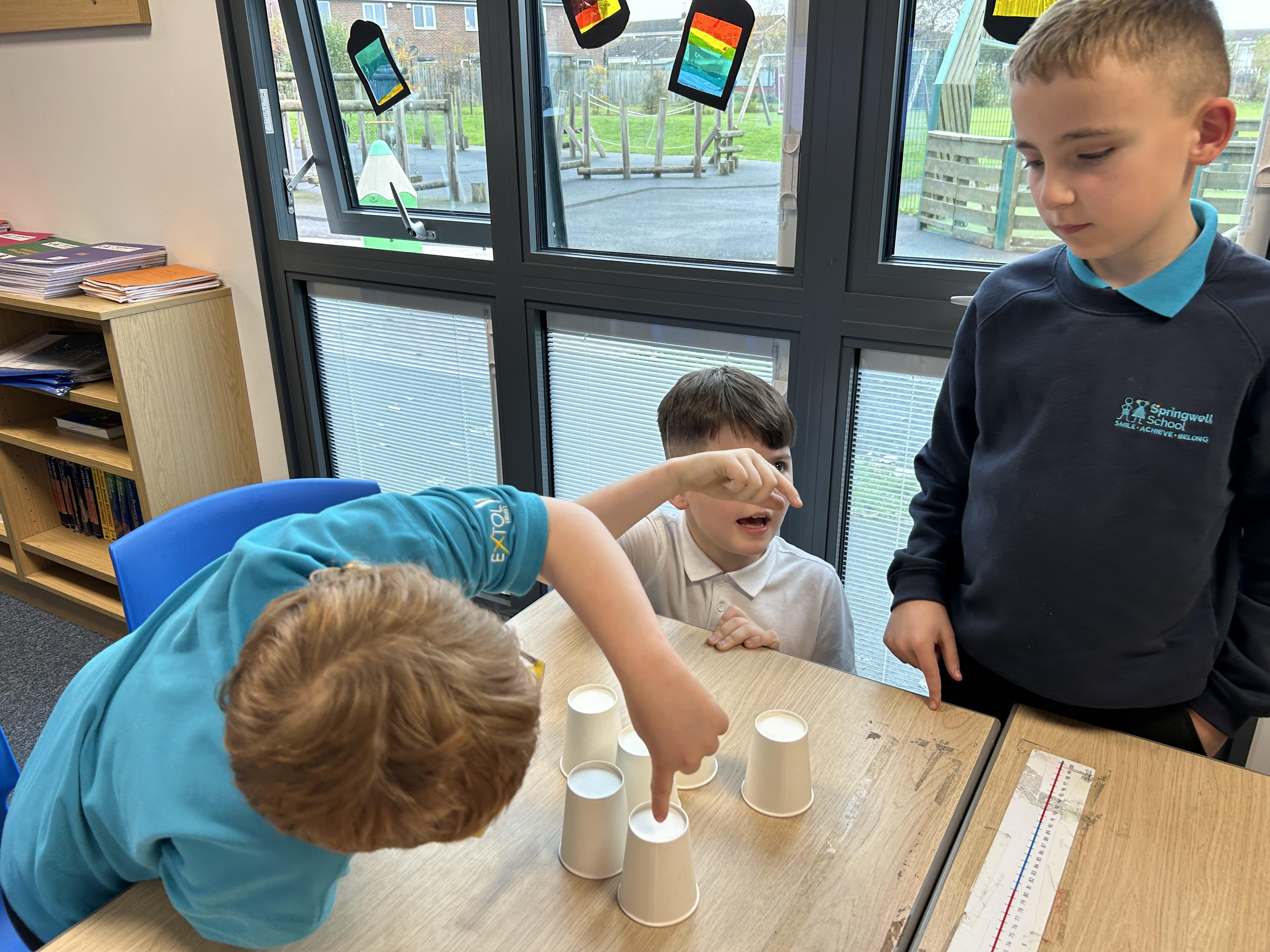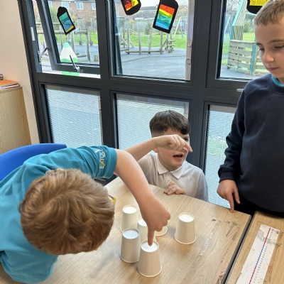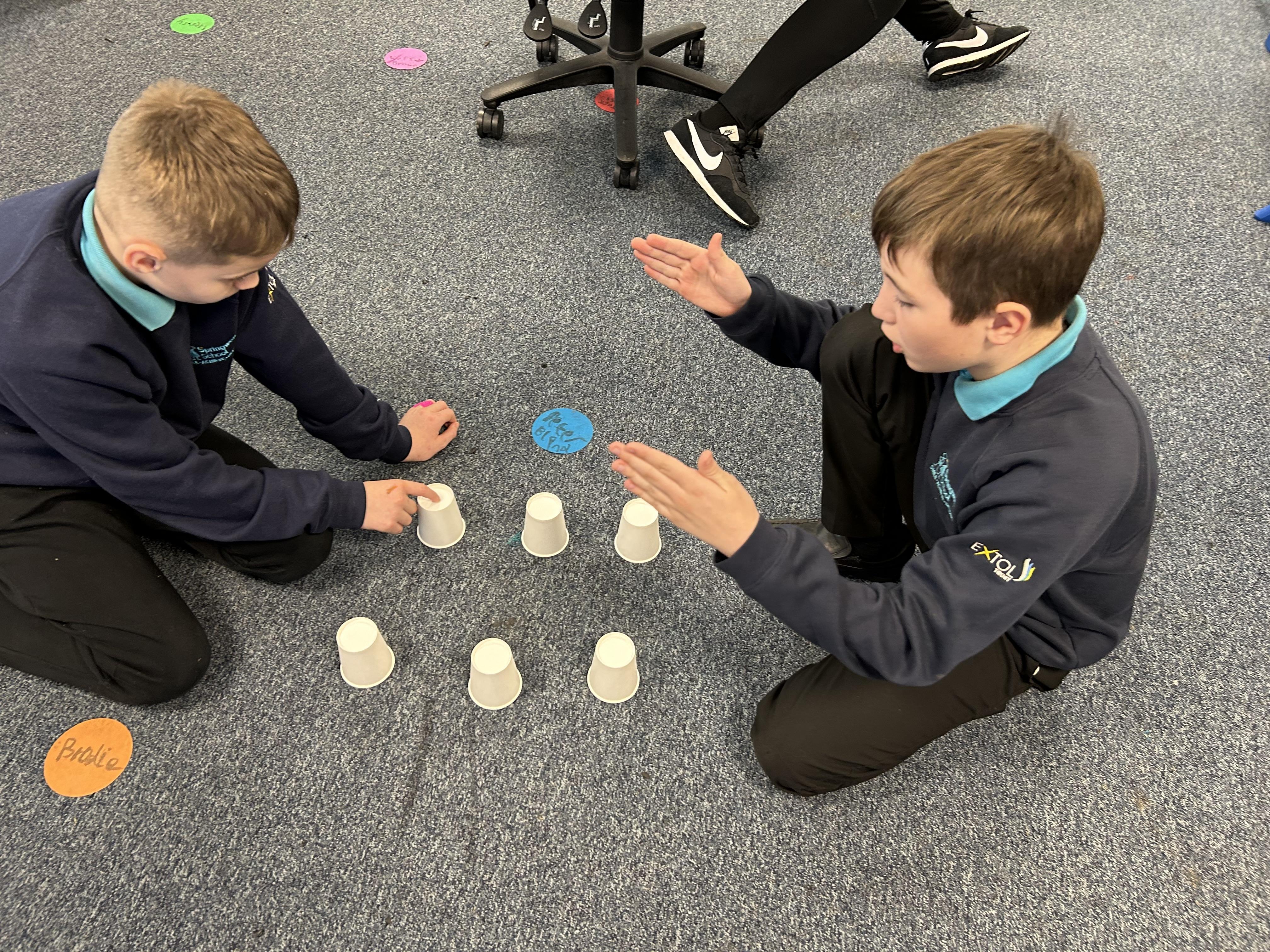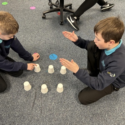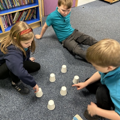 In Computing, we have been working on the basics of an algorithm. We hid an object under the cups and then gave simple, clear instructions for our "computers" to find the object. We worked out that if our instruction was not clear and concise then our computer kept doing the wrong thing!