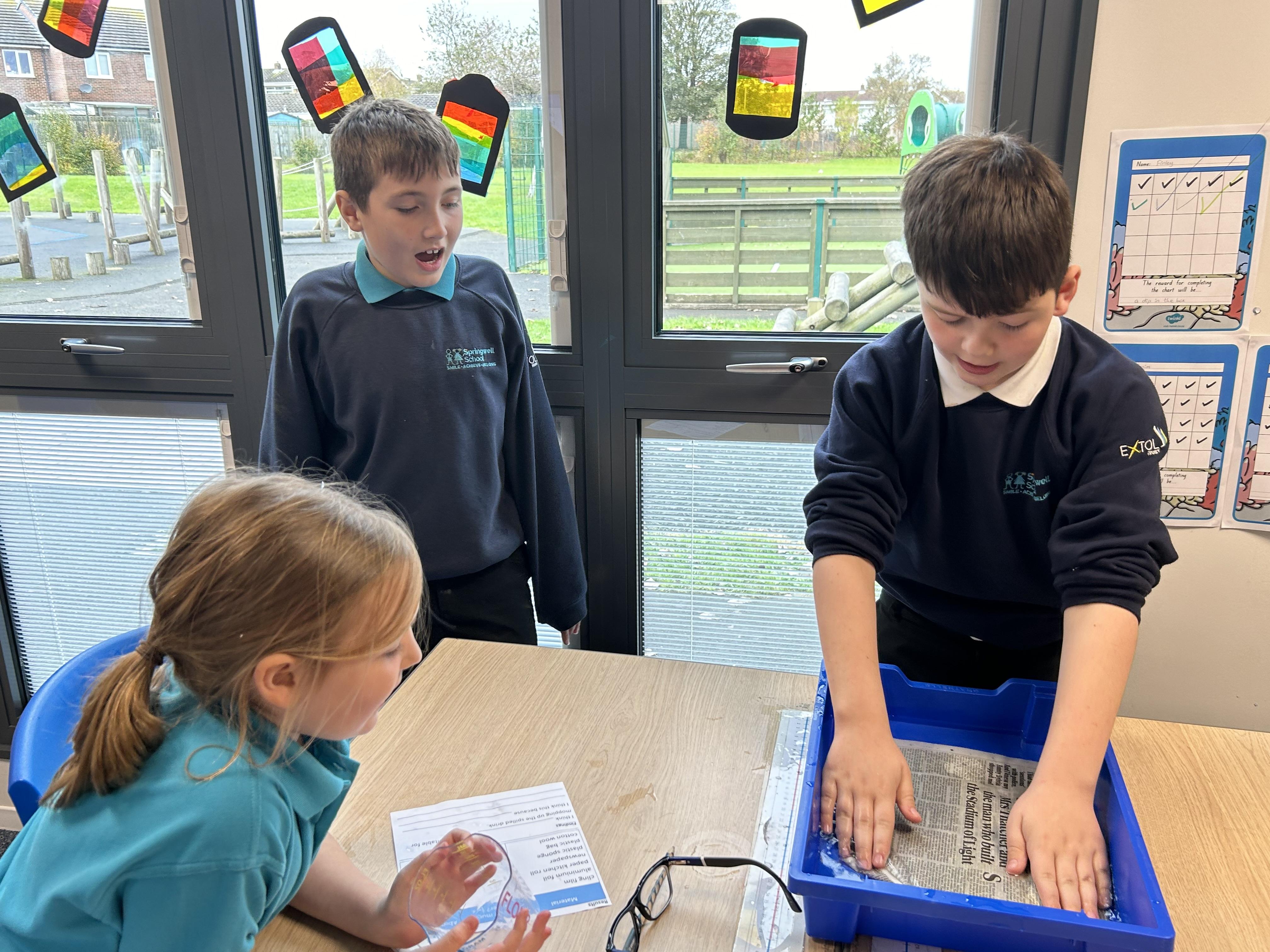 In Science, we have been exploring the question 'Are all materials absorbent?'