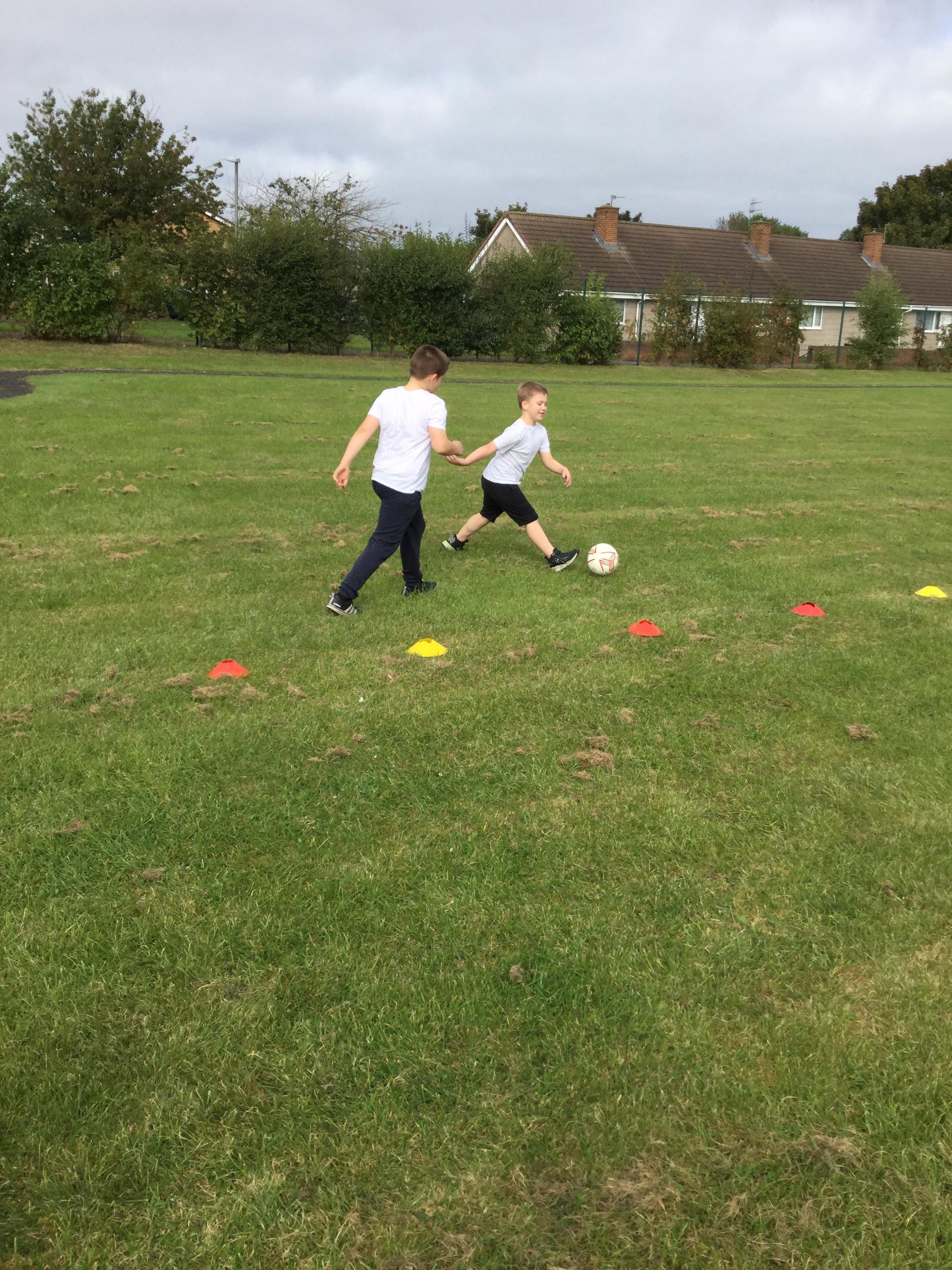 Our topic in PE this half term is Football. Last week, we focussed on the skill of dribbling. This week, we have been practising passing the ball using these dribbling skills. We really enjoyed playing the Tom and Jerry game, and also our final challenge where we had to try and get the ball to our team member on the other side of the cones.