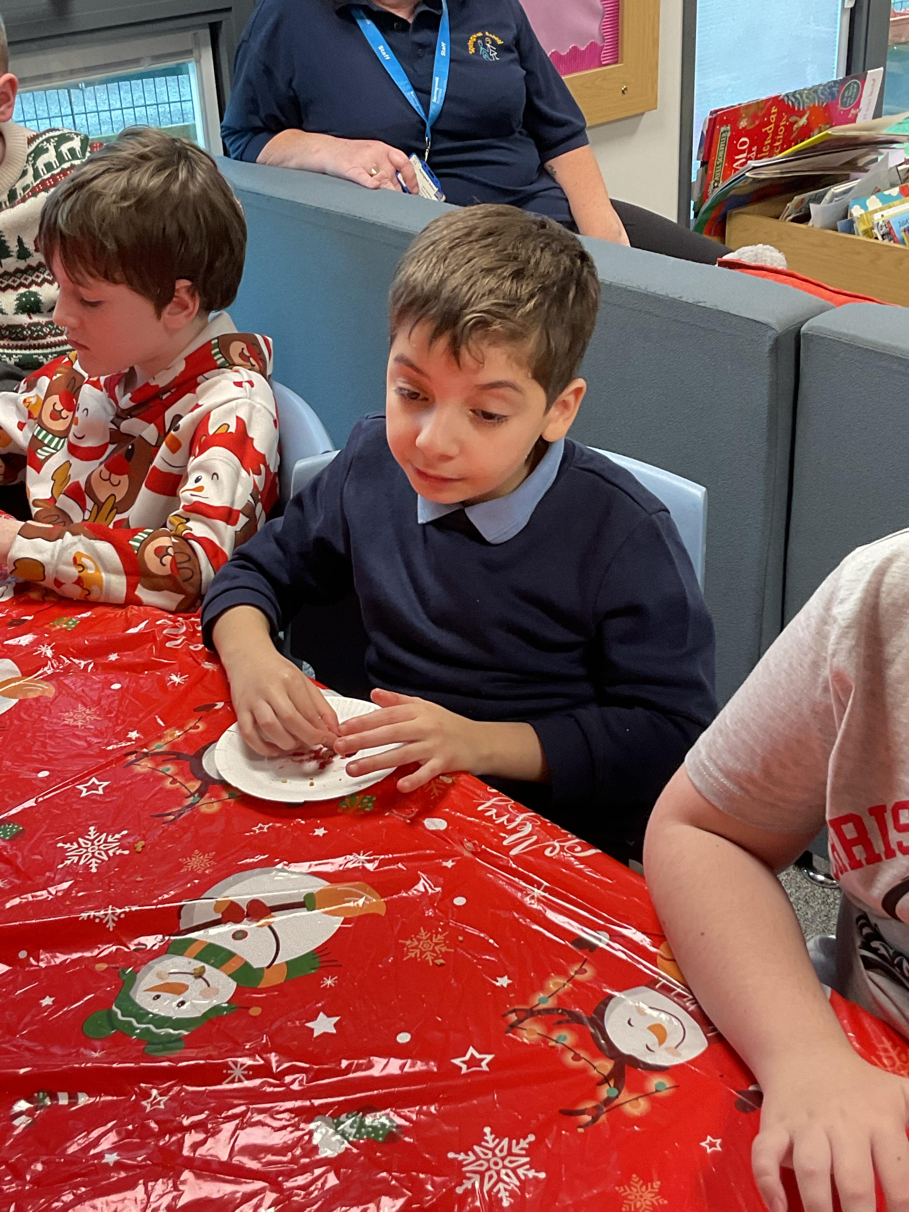 Today we have done lots of Christmas tasting. First was our Christmas dinner and then later on in the day, we took part in some Christmas food tasting as part of our History. Surprisingly, cranberry sauce and mince pies were a hit with many of us. However, Christmas pudding wasn’t a class favourite!