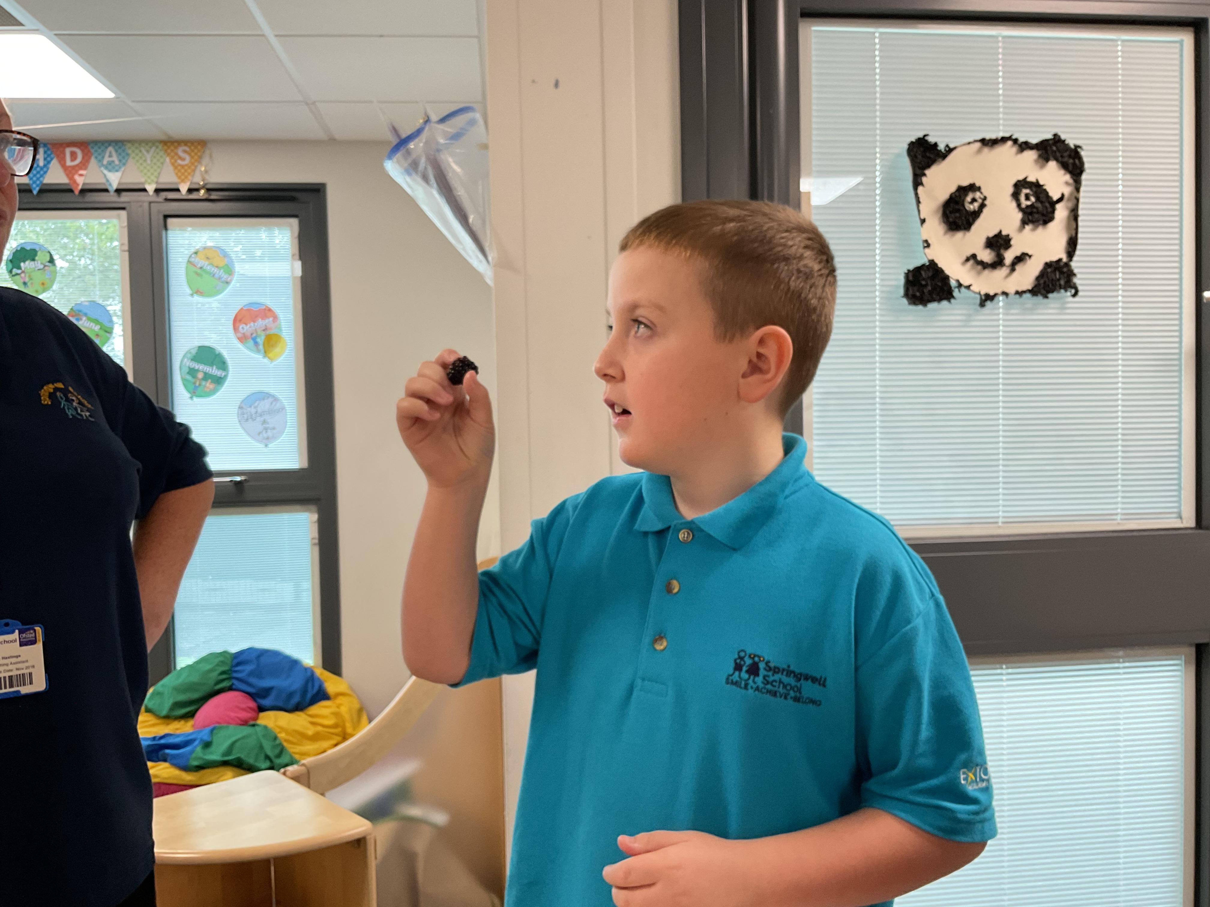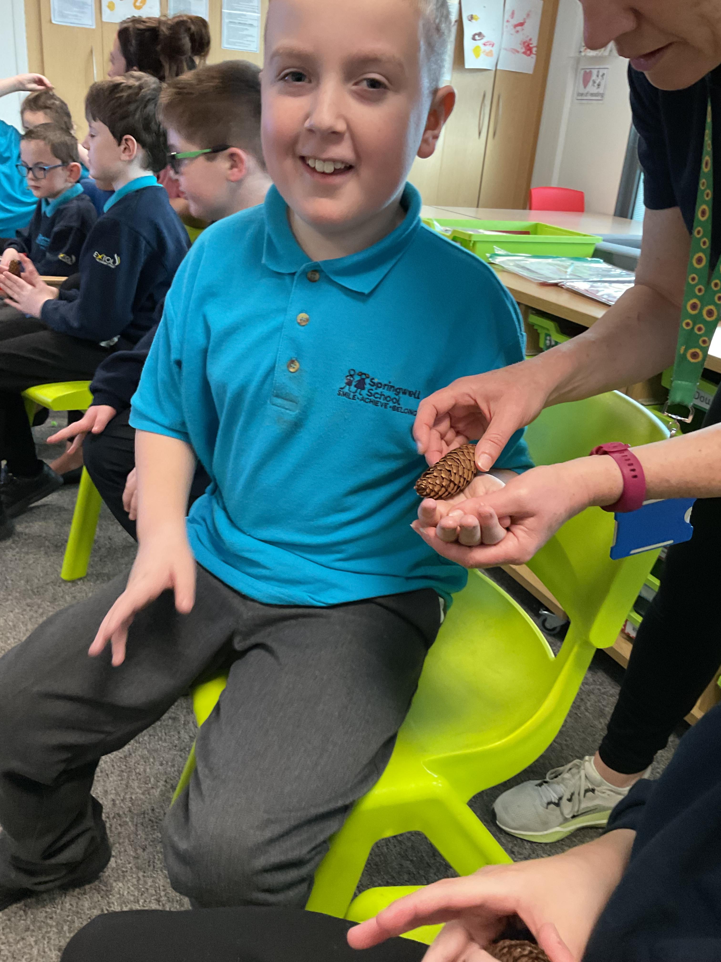 Panda class went out on the bus to the Burn Valley park to see if we could spot any signs of autumn. We collected some items to bring back to school to explore such as different coloured autumnal leaves, conkers and acorns.
